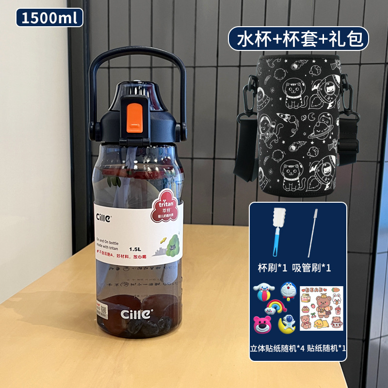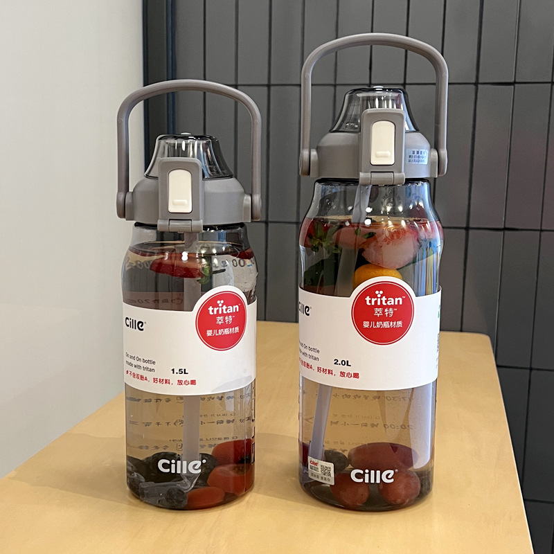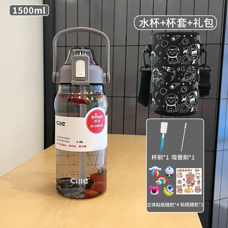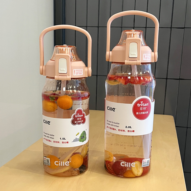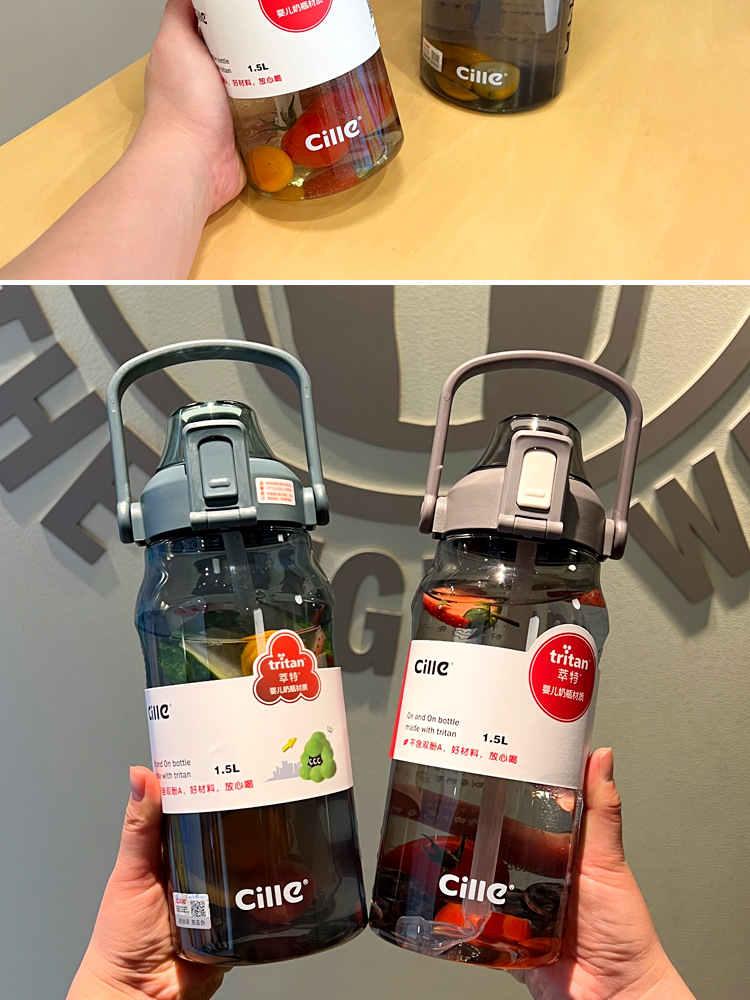 【국내제품】cille 대용량 물병 여성용 예쁜 디자인 인터넷 유명인 학생 스포츠 물병 빨대컵 스페이스 컵