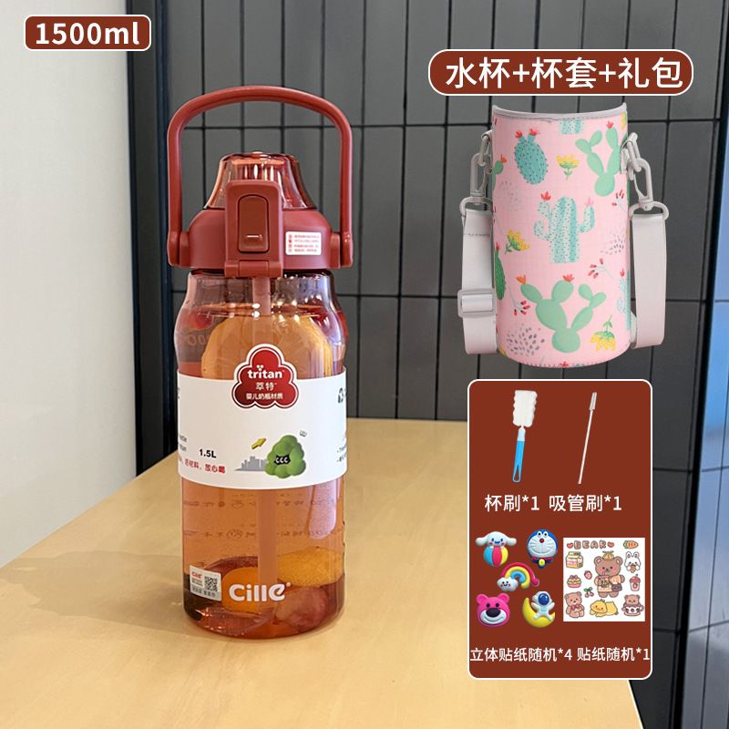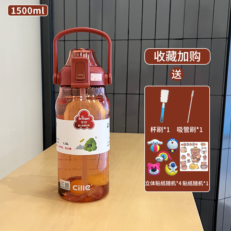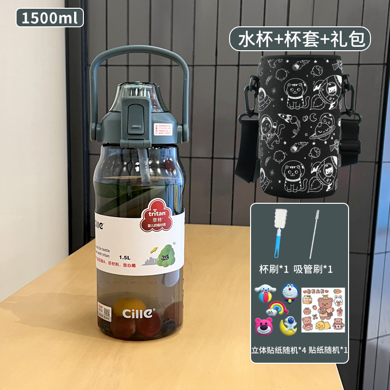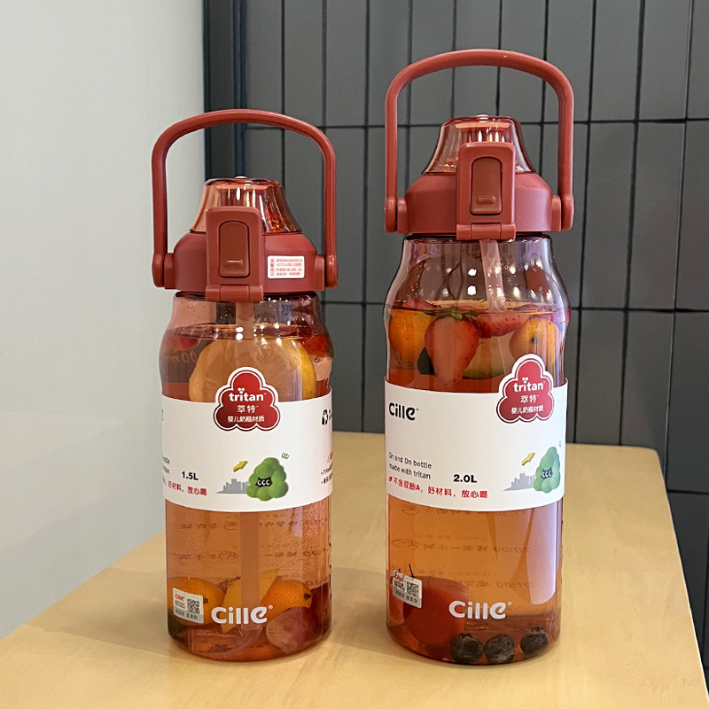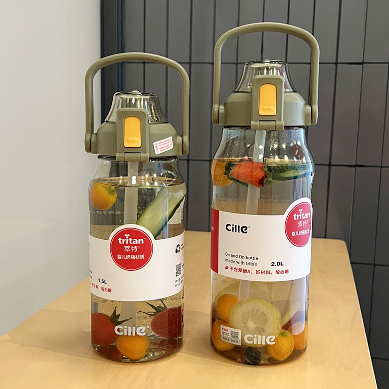 【국내제품】cille 대용량 물병 여성용 예쁜 디자인 인터넷 유명인 학생 스포츠 물병 빨대컵 스페이스 컵