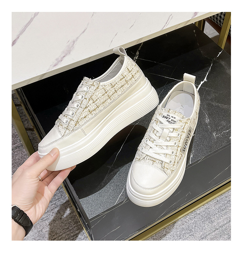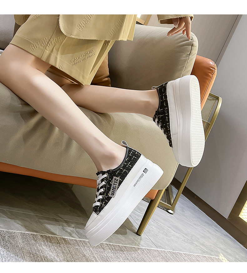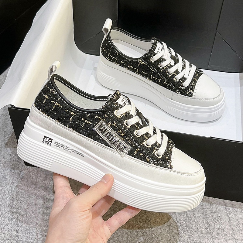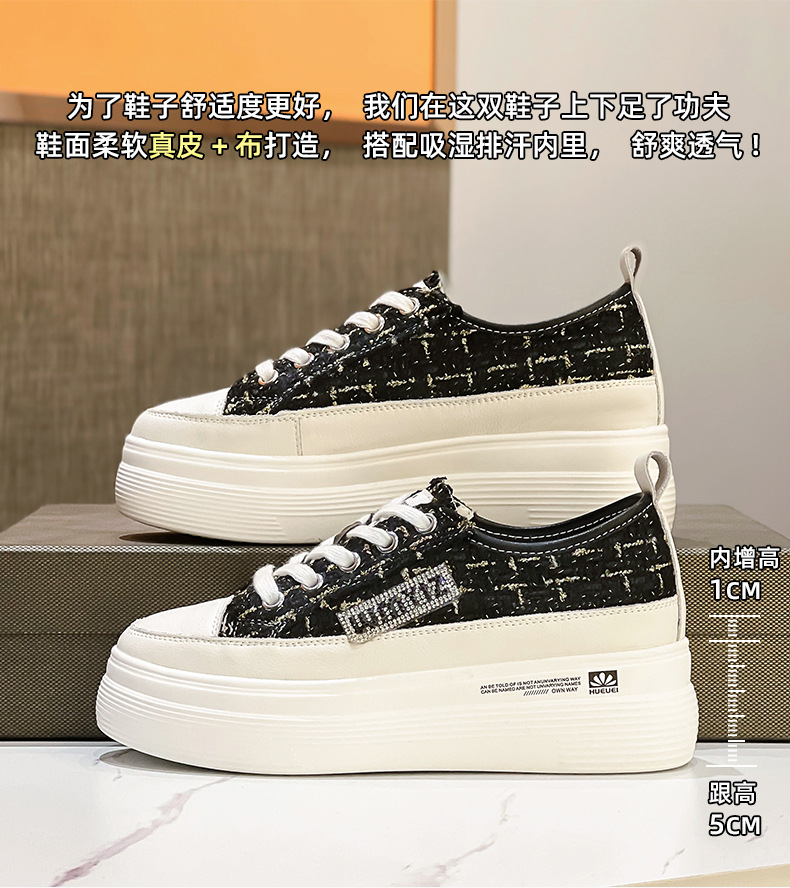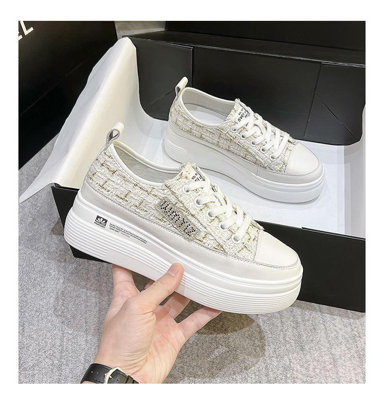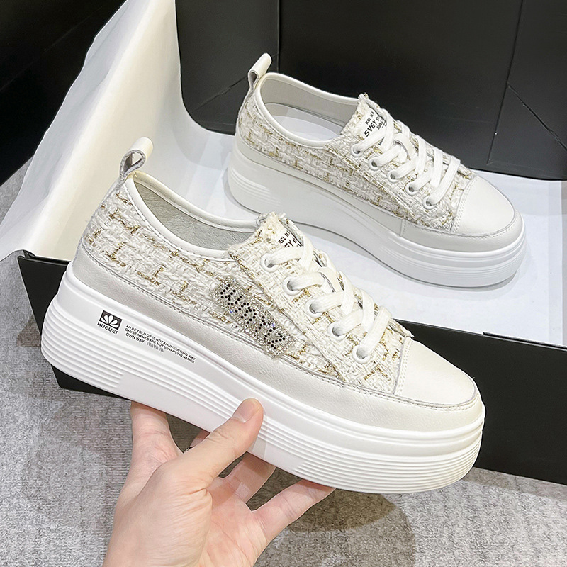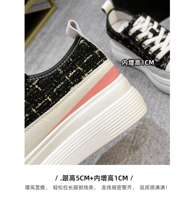 샤넬 스타일 여성 신발 2024 봄 새로운 플랫폼 플랫폼 신발 숨겨진 높이 흰색 신발 패션 캐주얼 올 매치 싱글 신발