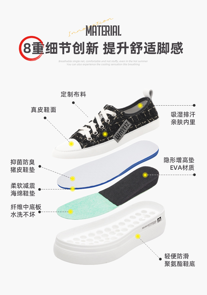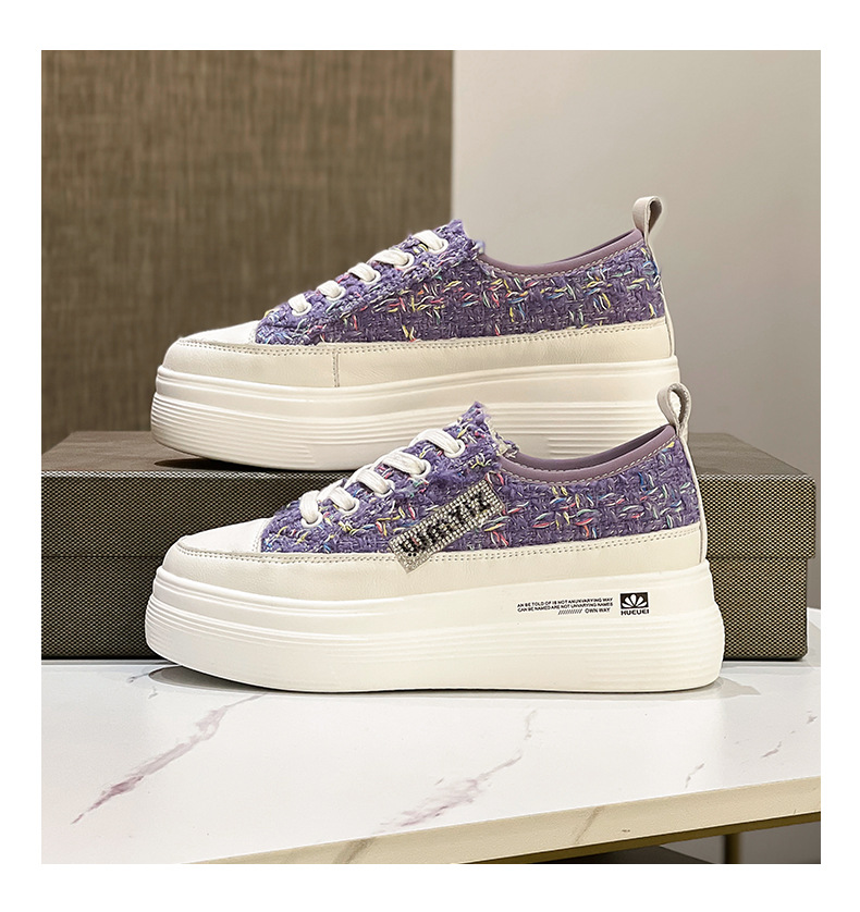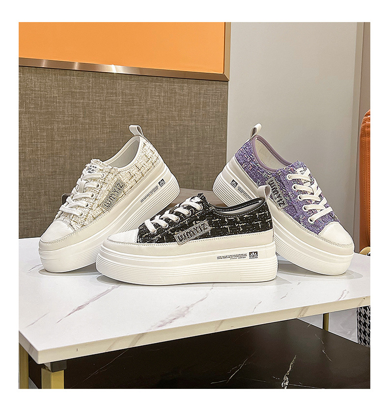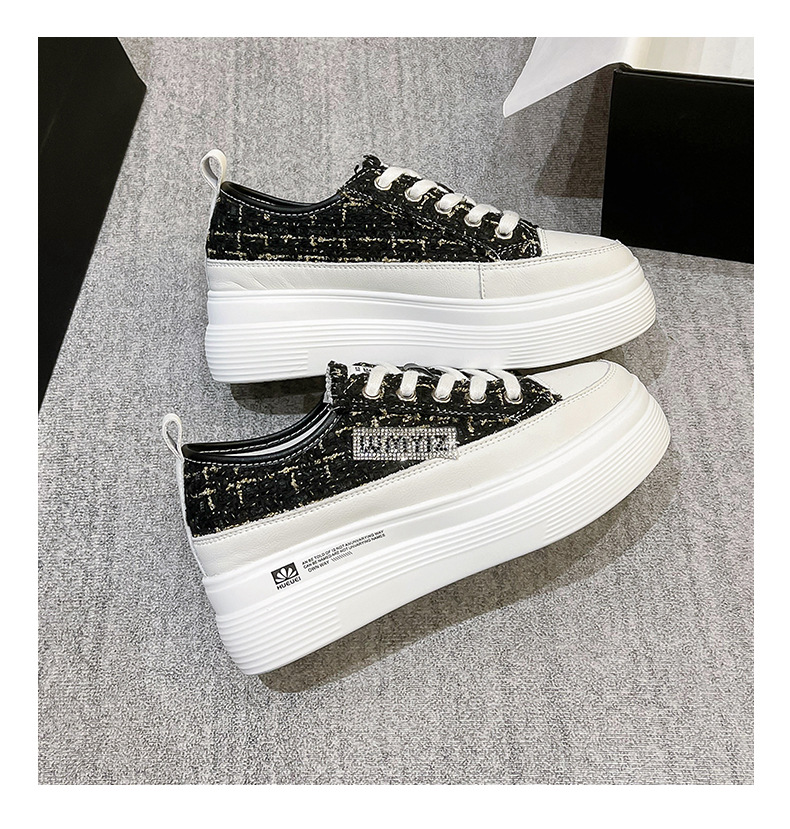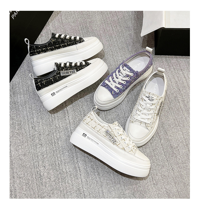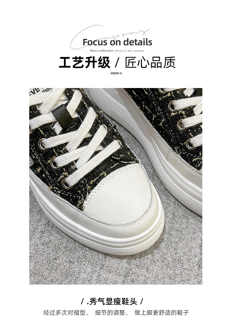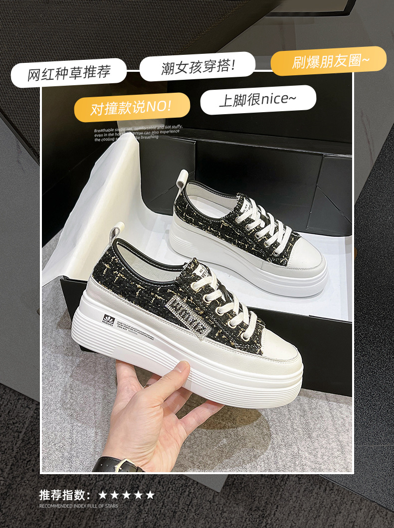 샤넬 스타일 여성 신발 2024 봄 새로운 플랫폼 플랫폼 신발 숨겨진 높이 흰색 신발 패션 캐주얼 올 매치 싱글 신발