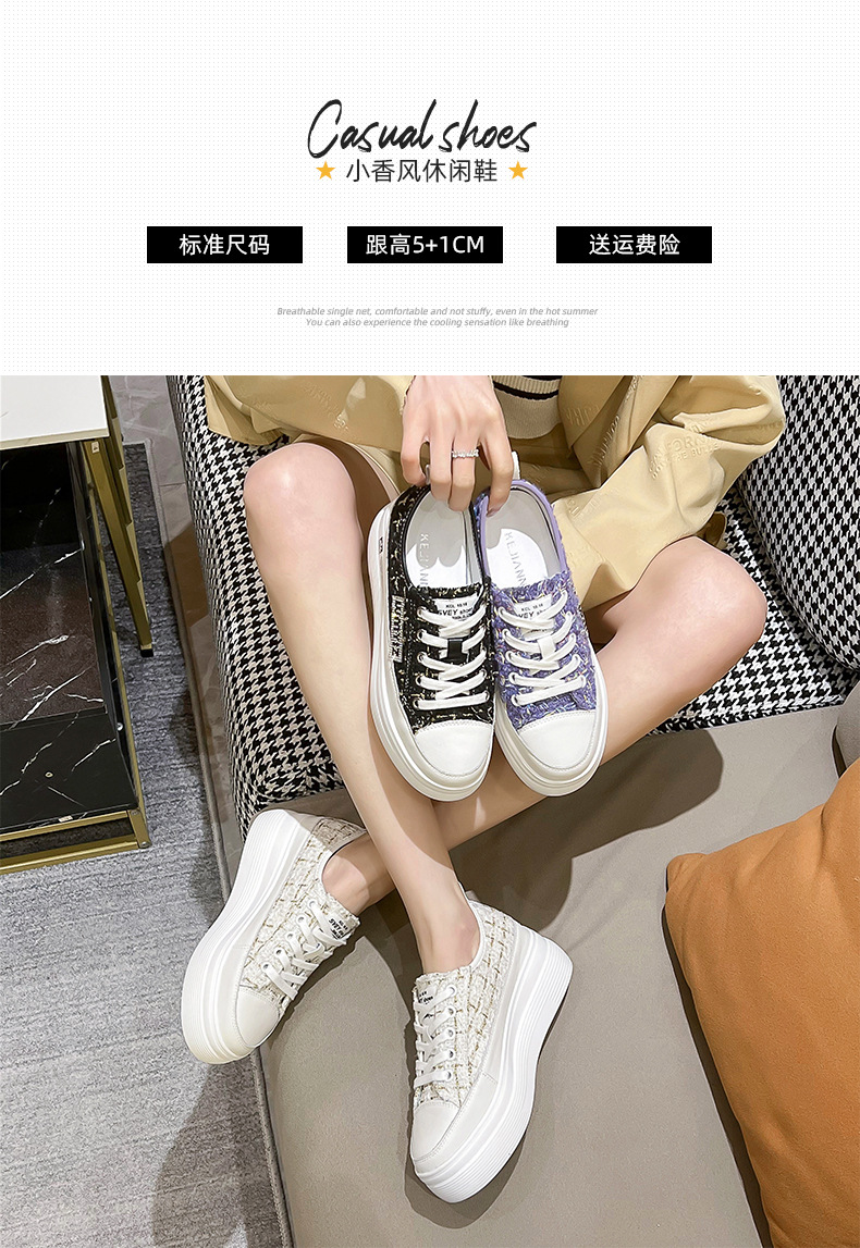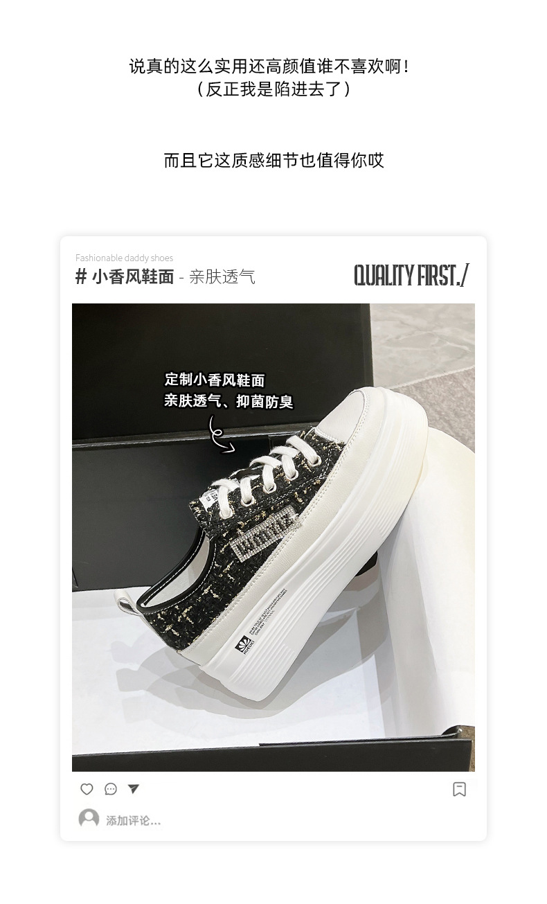 샤넬 스타일 여성 신발 2024 봄 새로운 플랫폼 플랫폼 신발 숨겨진 높이 흰색 신발 패션 캐주얼 올 매치 싱글 신발스토어 가기
