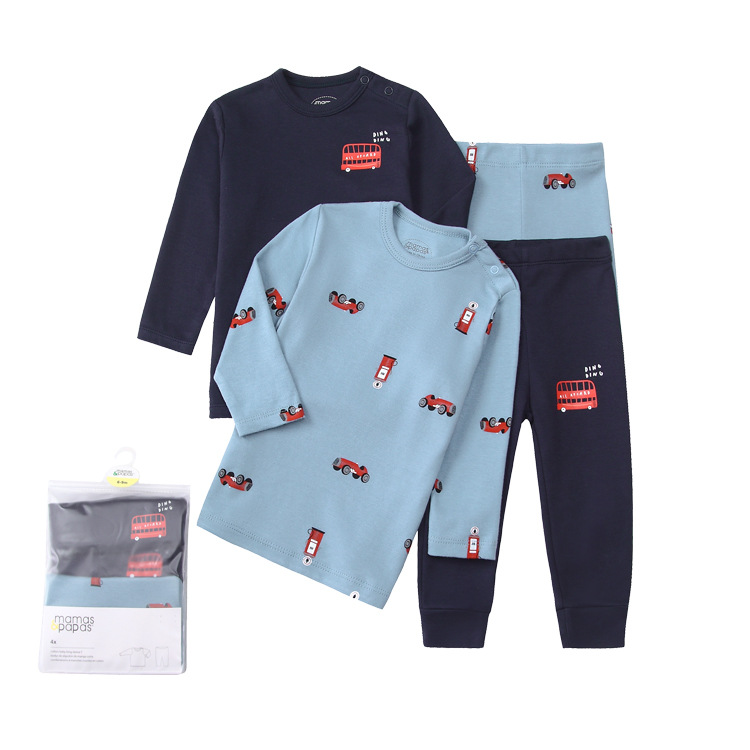 대외 무역 아동복 가을 아기 인쇄 홈 옷 혼합 색상 긴 소매 탑 티셔츠 바지 4 조각 가방 크로스 테두리 헤어