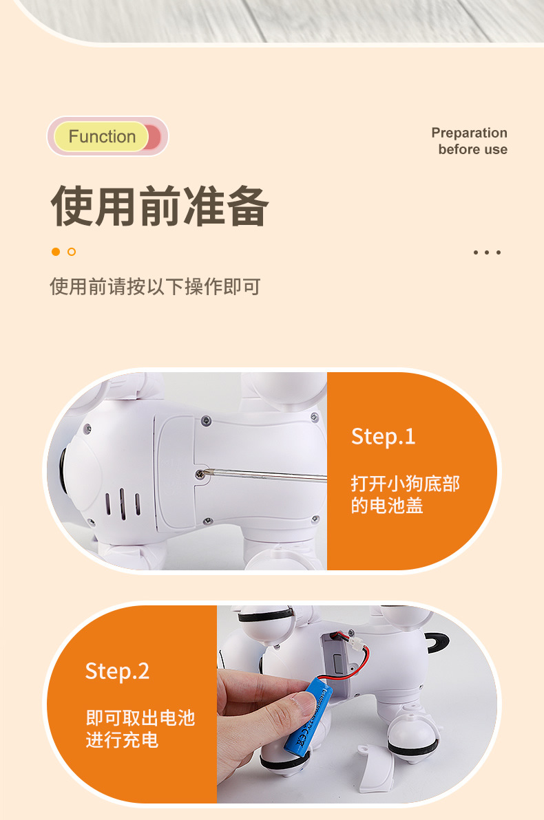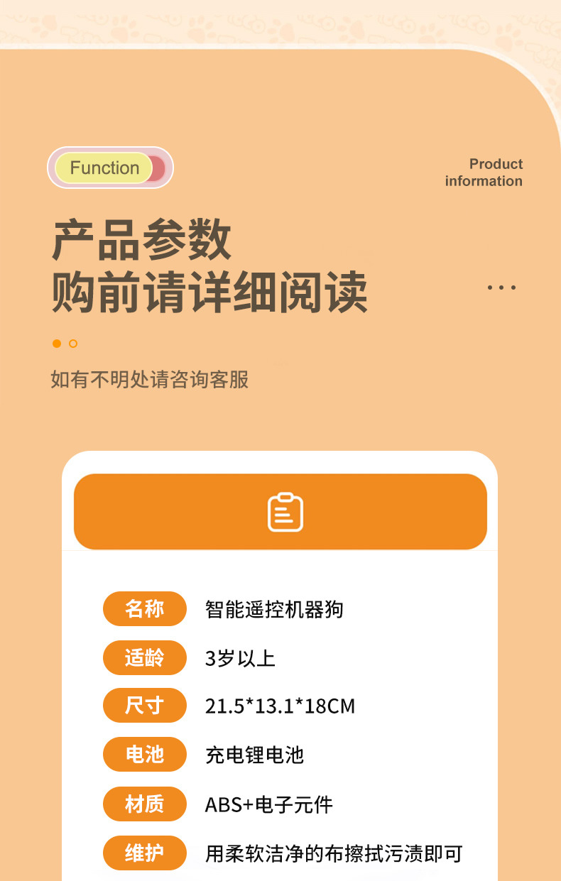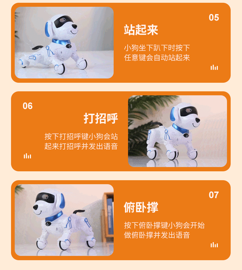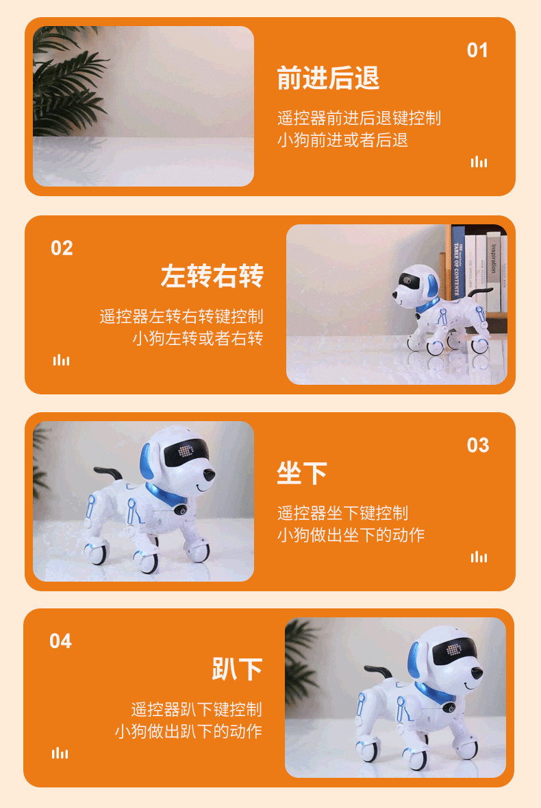 • 원격 제어 프로그래밍 스마트 애완 동물 개 오렌지