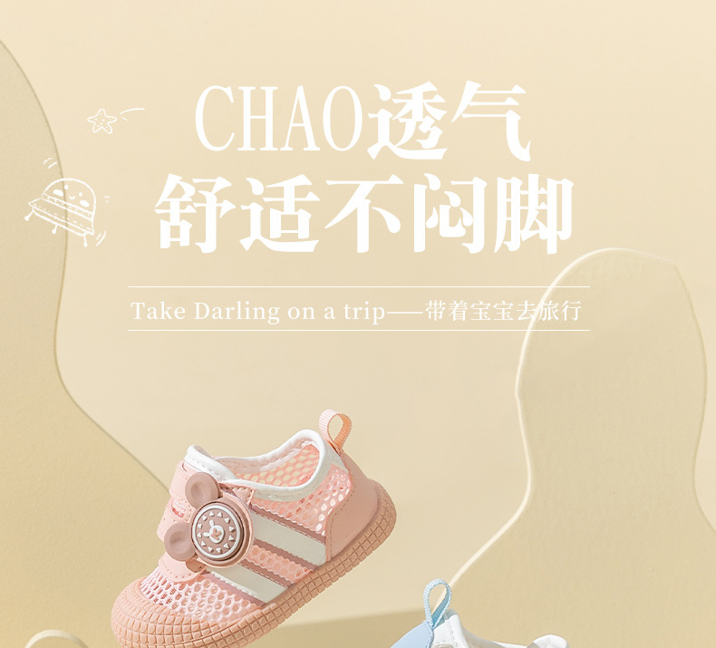 2024 봄 새로운 통기성 메쉬 신발 유아 신발 소년 부드러운 아기 신발 여성의 미끄럼 방지 아기 신발 도매스토어 가기