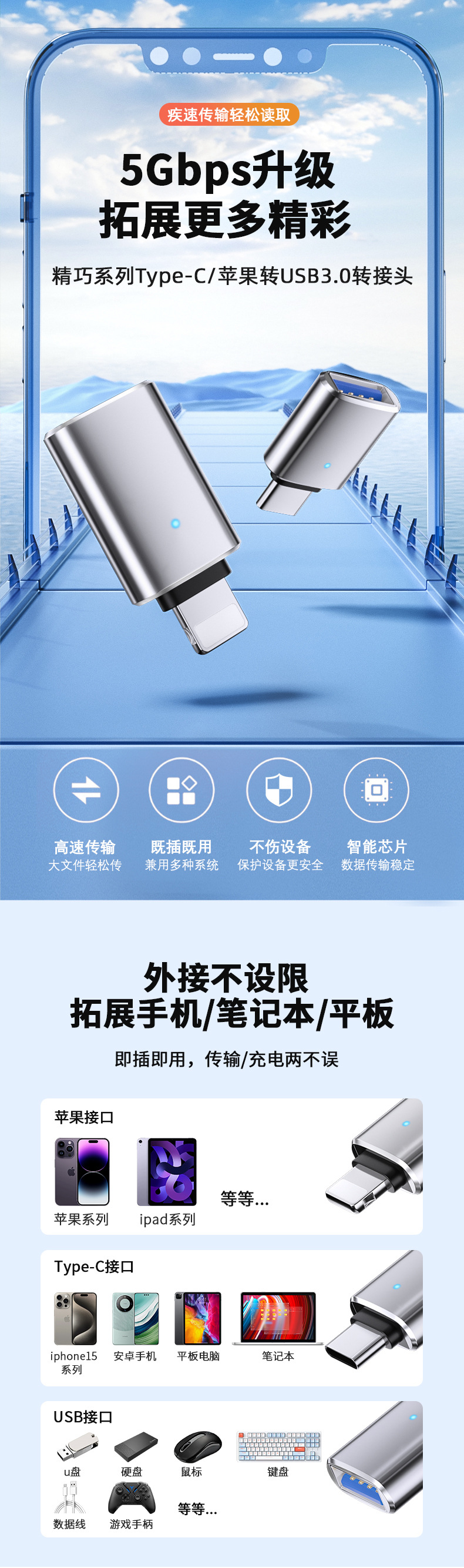 USB 플래시 드라이브 어댑터 typec 인터페이스 otg 어댑터 usb3.0 범용 어댑터를 읽는 휴대 전화에 적용 가능한 국경스토어 가기