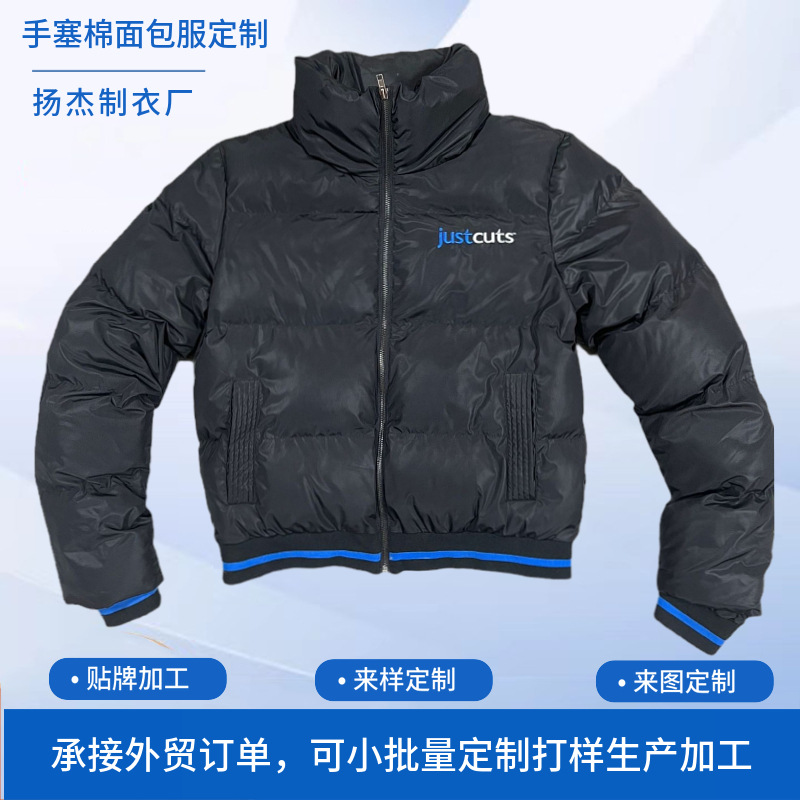 맞춤형 대외 무역 작업복, 손으로 채운 면 코트, 방풍 커프스, 스레드 밑단, 지퍼 스탠드 칼라, 빵 코트스토어 가기
