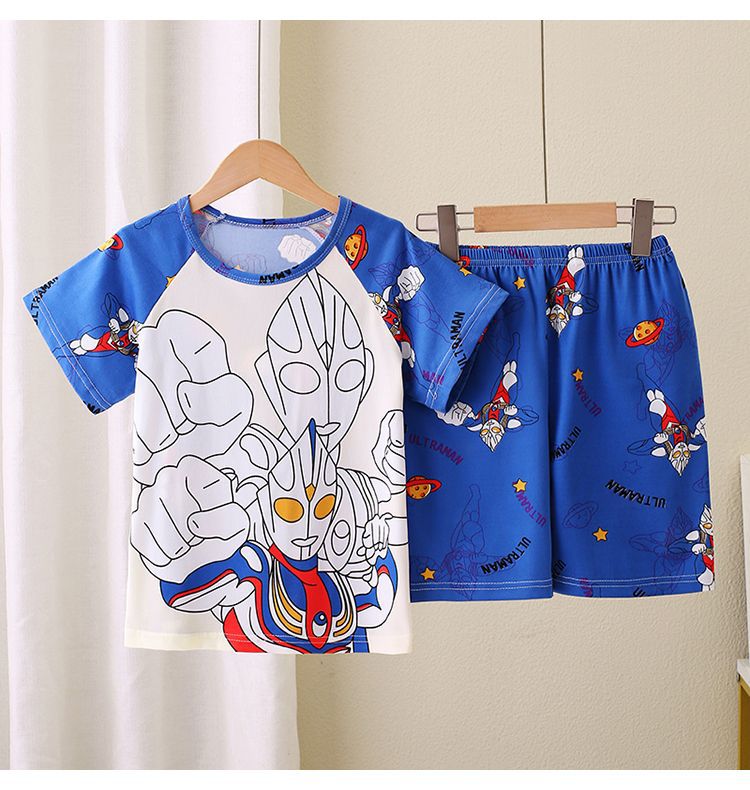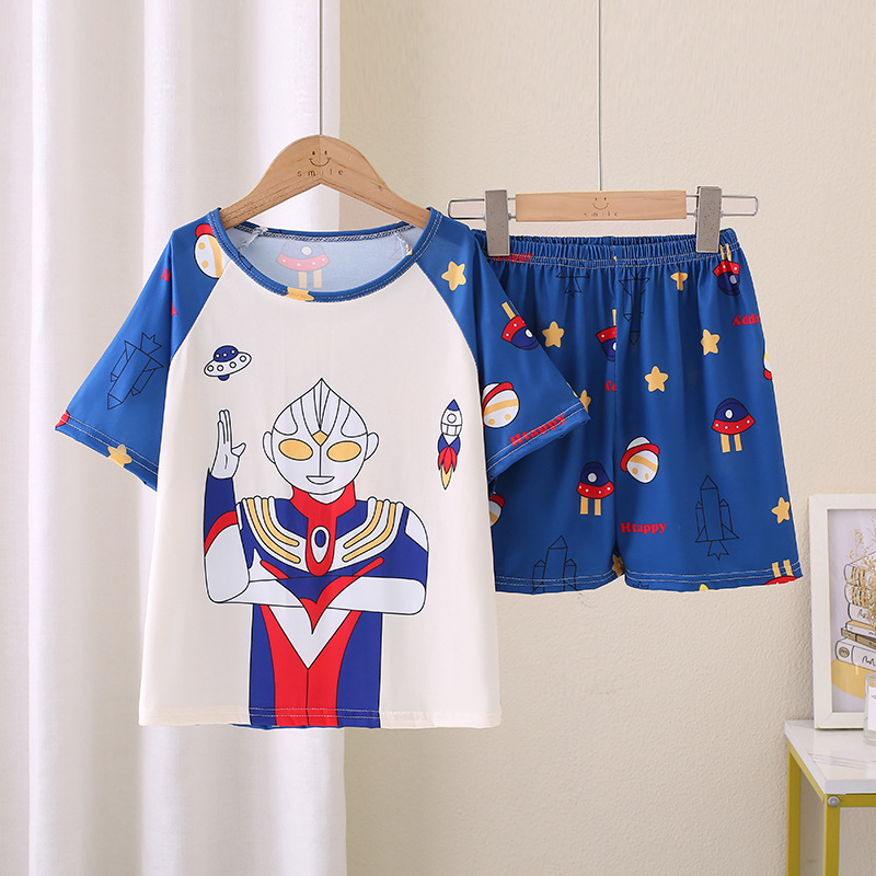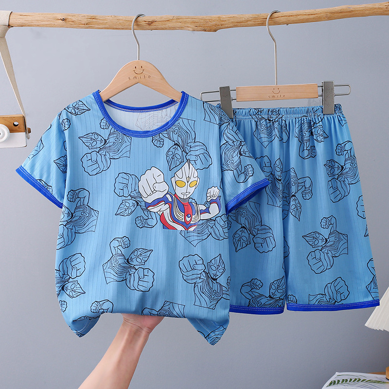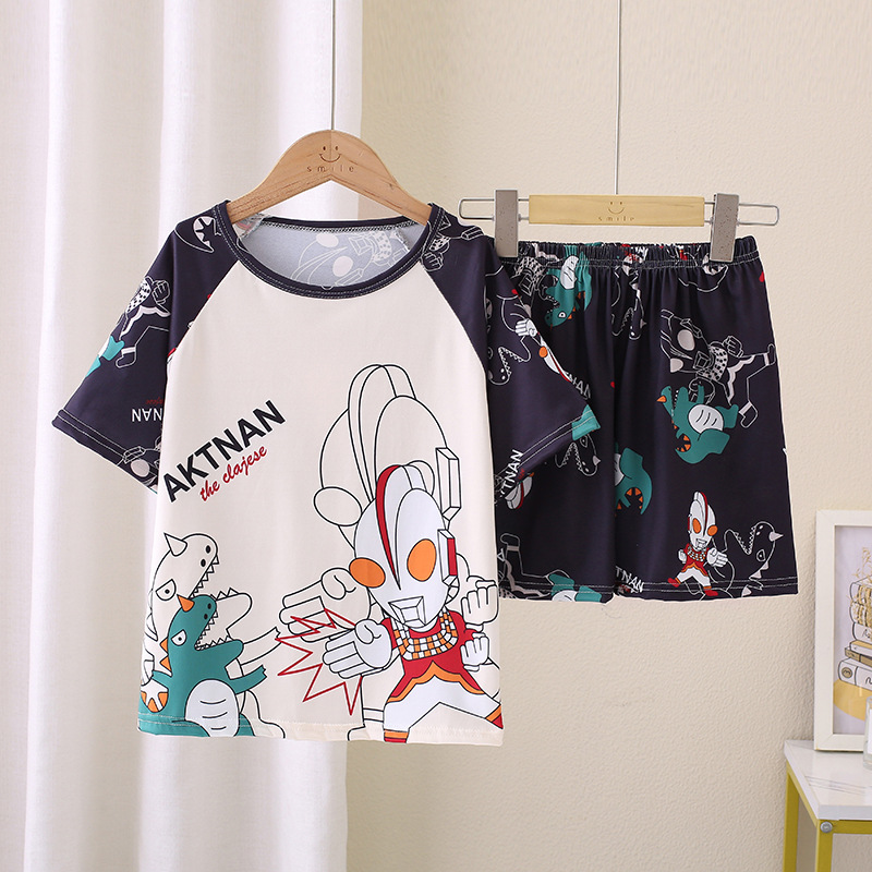대외 무역 소녀 잠옷 여름 얇은 짧은 소매 중형 및 큰 아이들 소년 여름 만화 에어컨 홈 세트