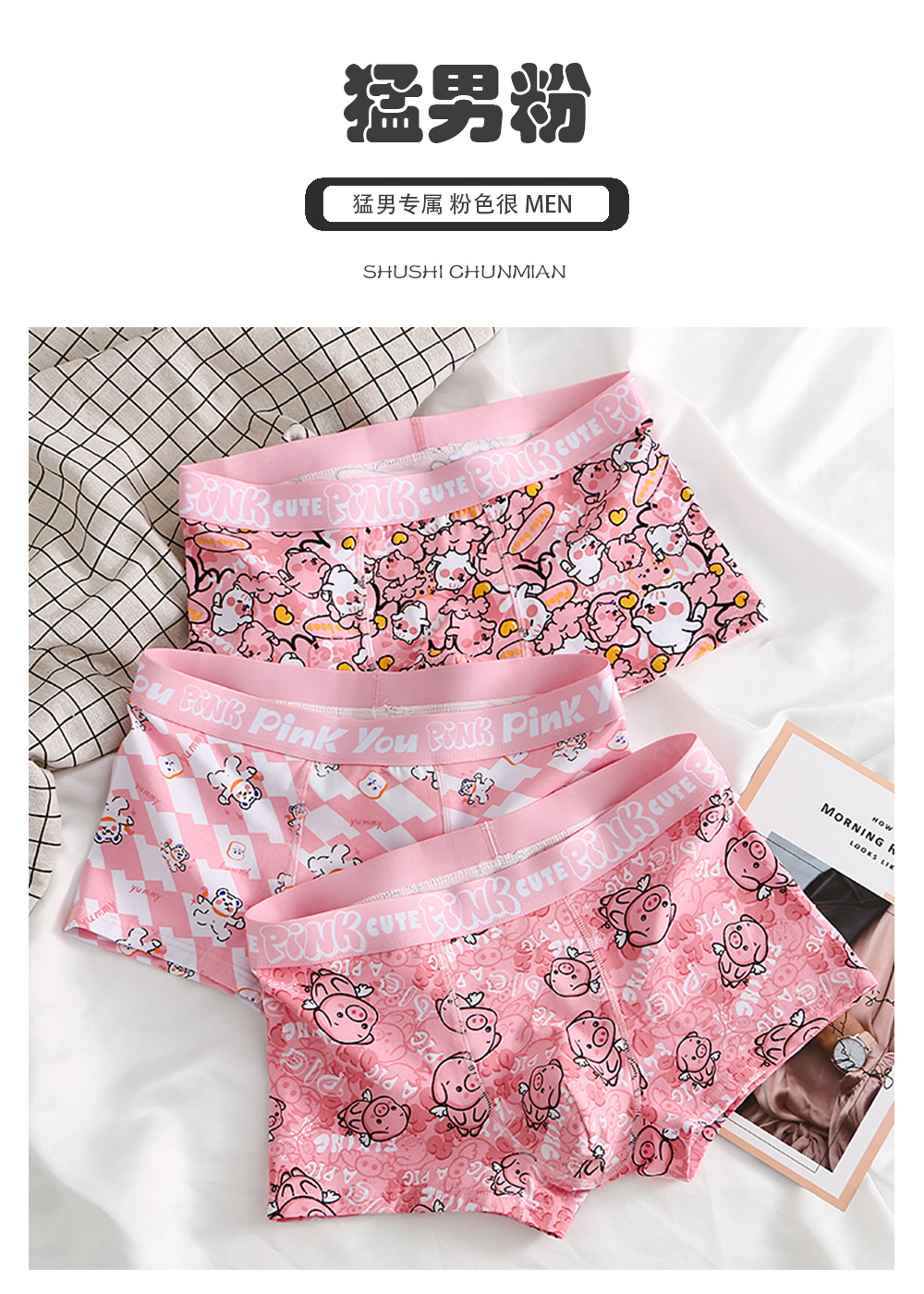 남성용 핑크색 바지, 순면 사각팬티, 귀여운 돼지 사각팬티, 섹시한 반바지, 남자친구를 위한 선물스토어 가기
