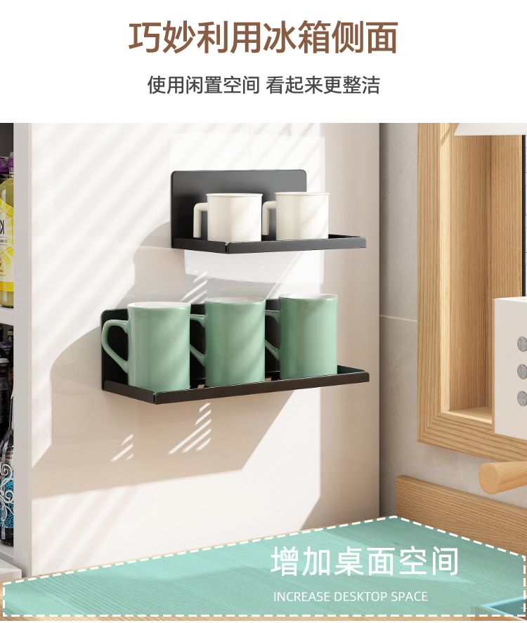 냉장고 마그네틱 스토리지 랙 사이드 스토리지 랙 펀치 프리 유리 컵 주방 다기능 벽 교수형 저장 유물