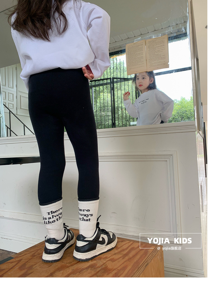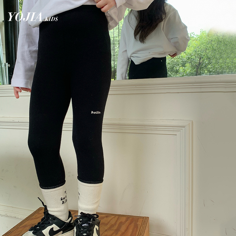 소녀 레깅스 봄과 가을 2023 새로운 세련된 세련된 니트 아기 바비 바지 외부 착용 얇은 어린이 바지스토어 가기