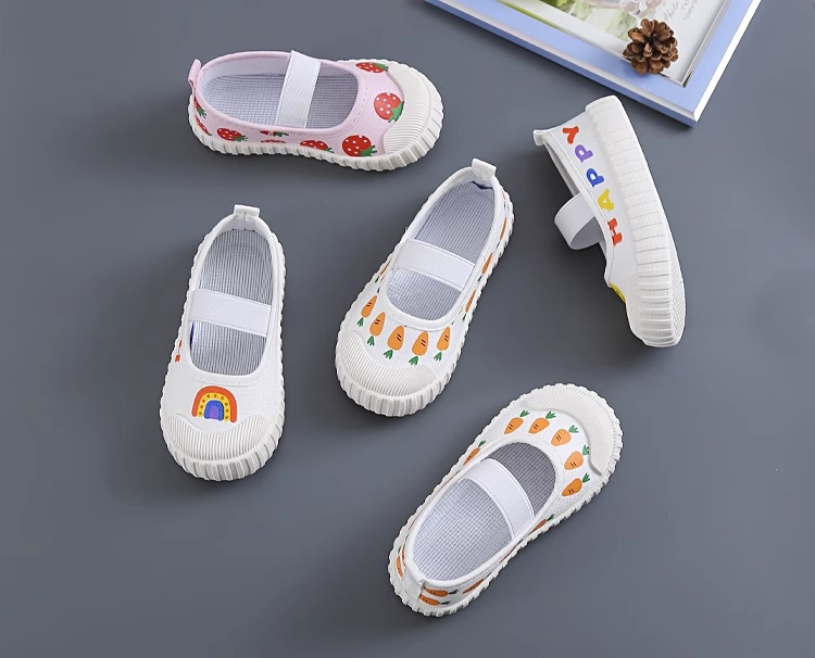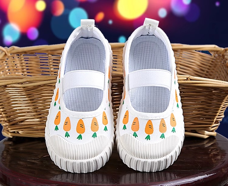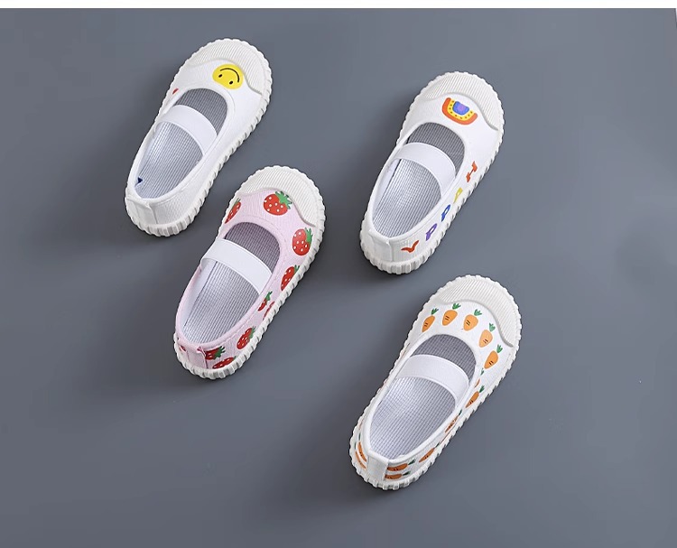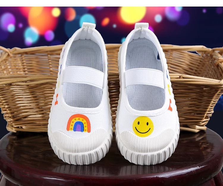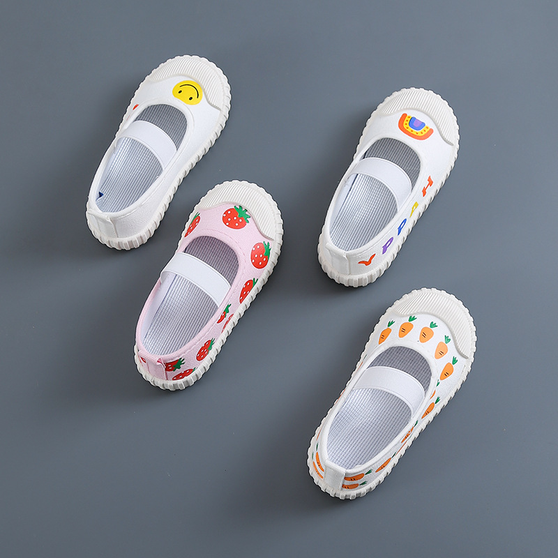 어린이 캔버스 신발 소년 소녀 캐주얼 신발 유치원 실내 신발 봄과 가을 슬립-미끄럼 방지 아기 흰색 신발