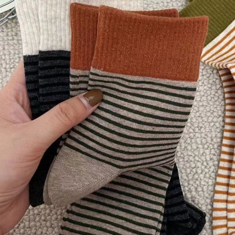 더미 양말 여성의 중간 송아지 줄무늬 양말 한국 가을과 겨울 Maillard, 트렌디 한 스포츠 대비 색상 다재다능한 캐주얼 양말스토어 가기