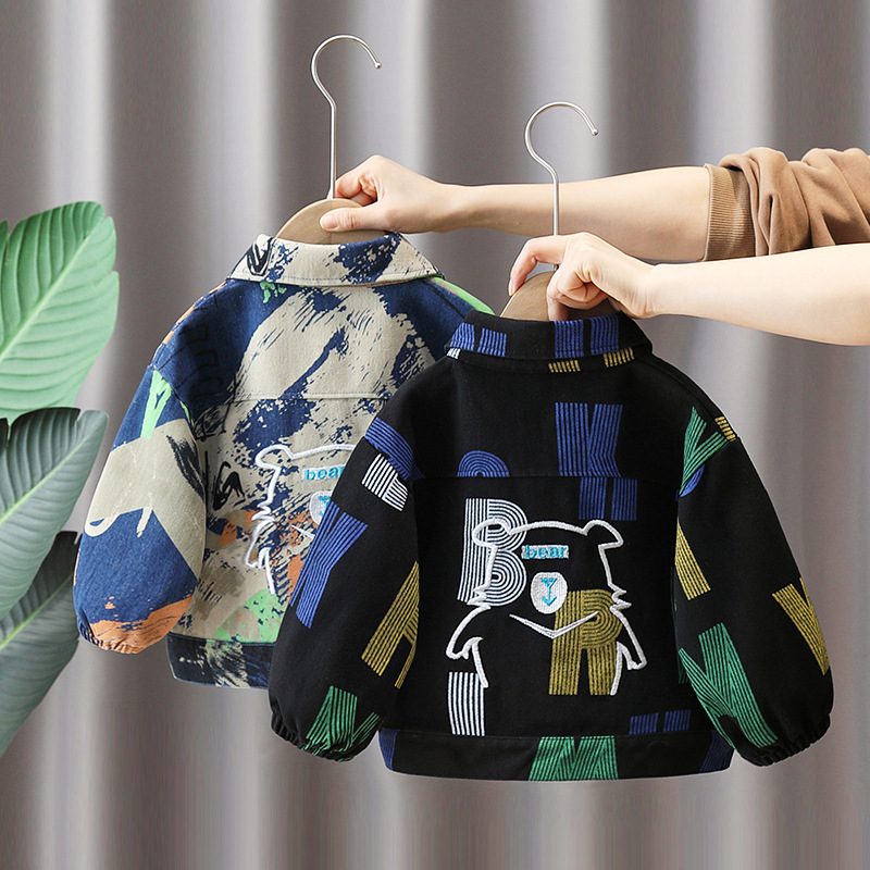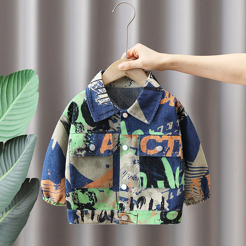 소년 데님 자켓 봄과 가을 코트 새로운 어린이 유행 유행 봄 옷 어린이 코트 아기 튀긴 거리 옷스토어 가기