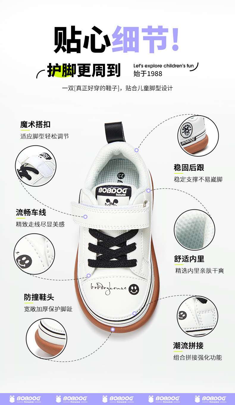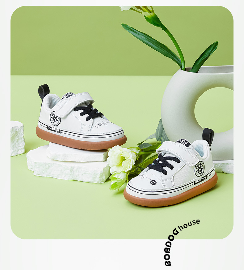 Babdou 어린이 신발 봄과 가을 가죽 흰색 신발 아기 유아 신발 부드러운 바닥 경량 아기 소녀 신발 소년 보드 신발