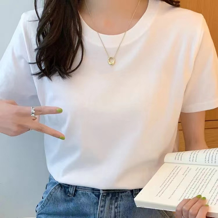 2026년 여름 신상 여성복 루즈핏 라운드넥 순면 반팔 티셔츠 캐주얼 상의 베이직 티셔츠 도매스토어 가기