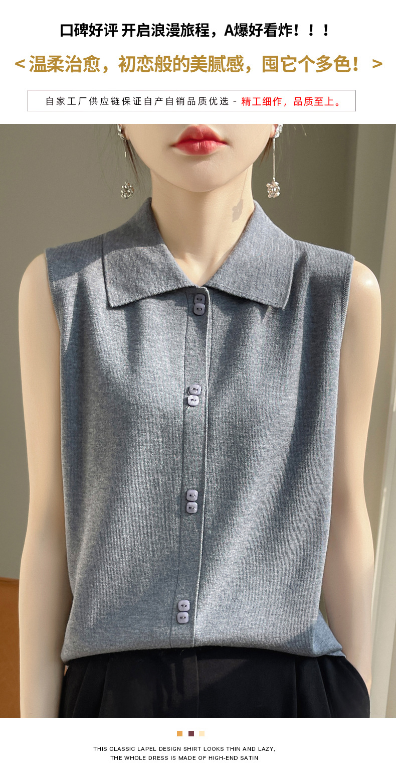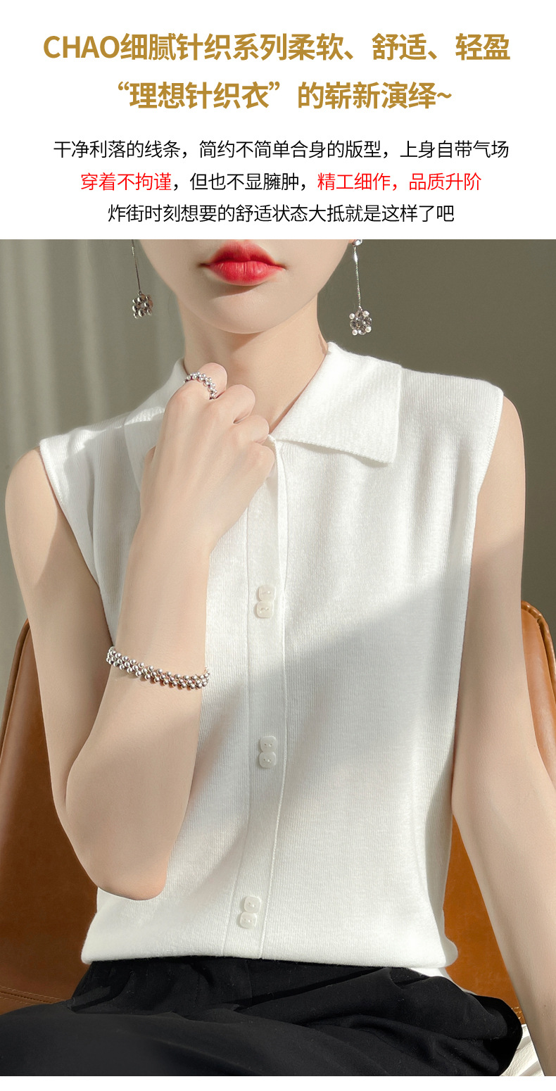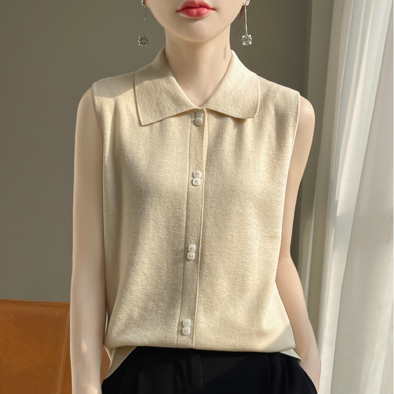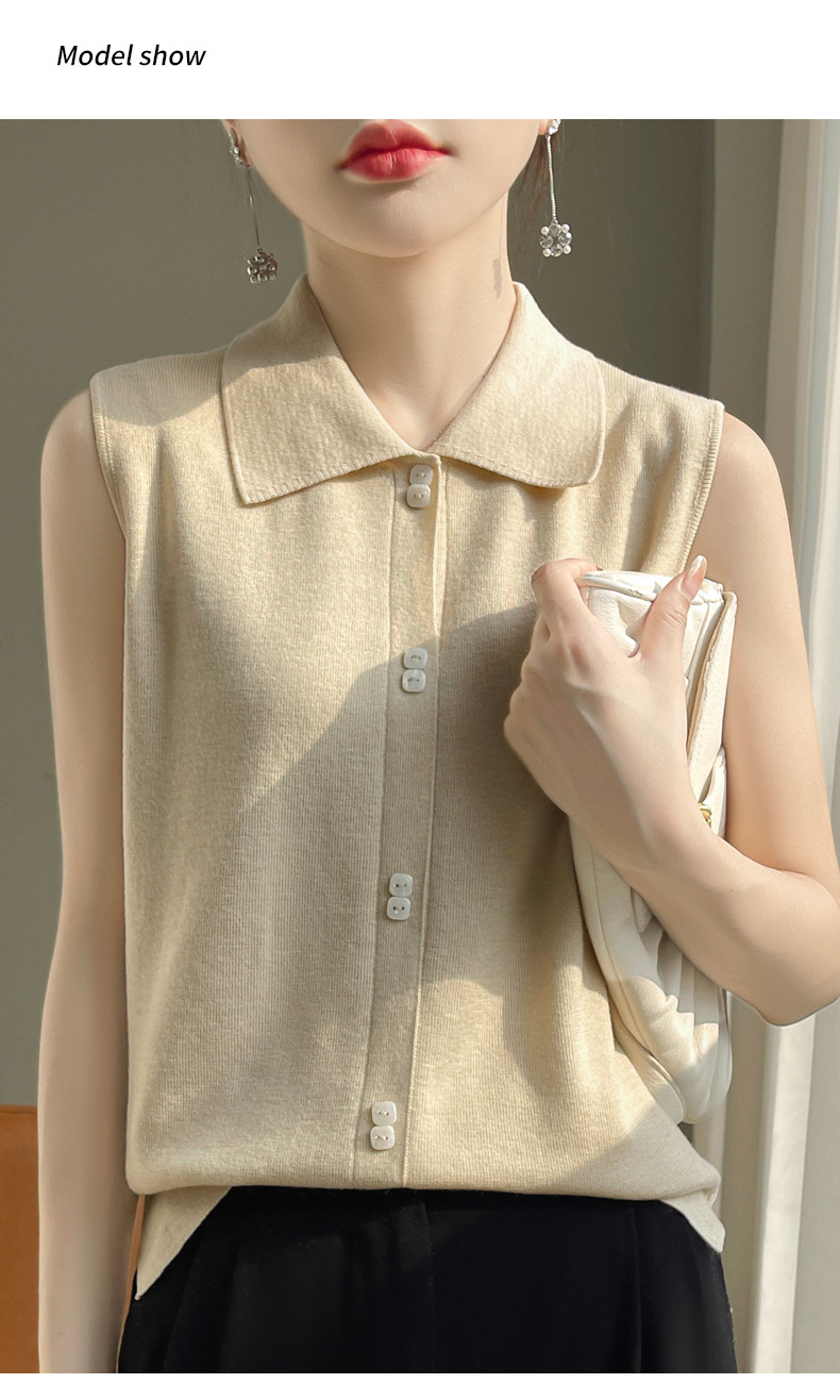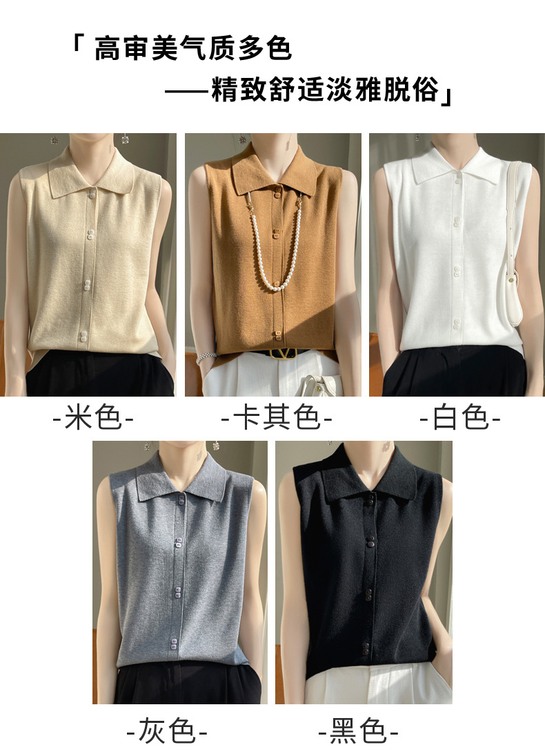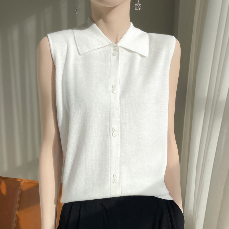 봄 2024 셔츠 칼라 민소매 니트 조끼 여성의 단색 짧은 내부 스웨터스토어 가기