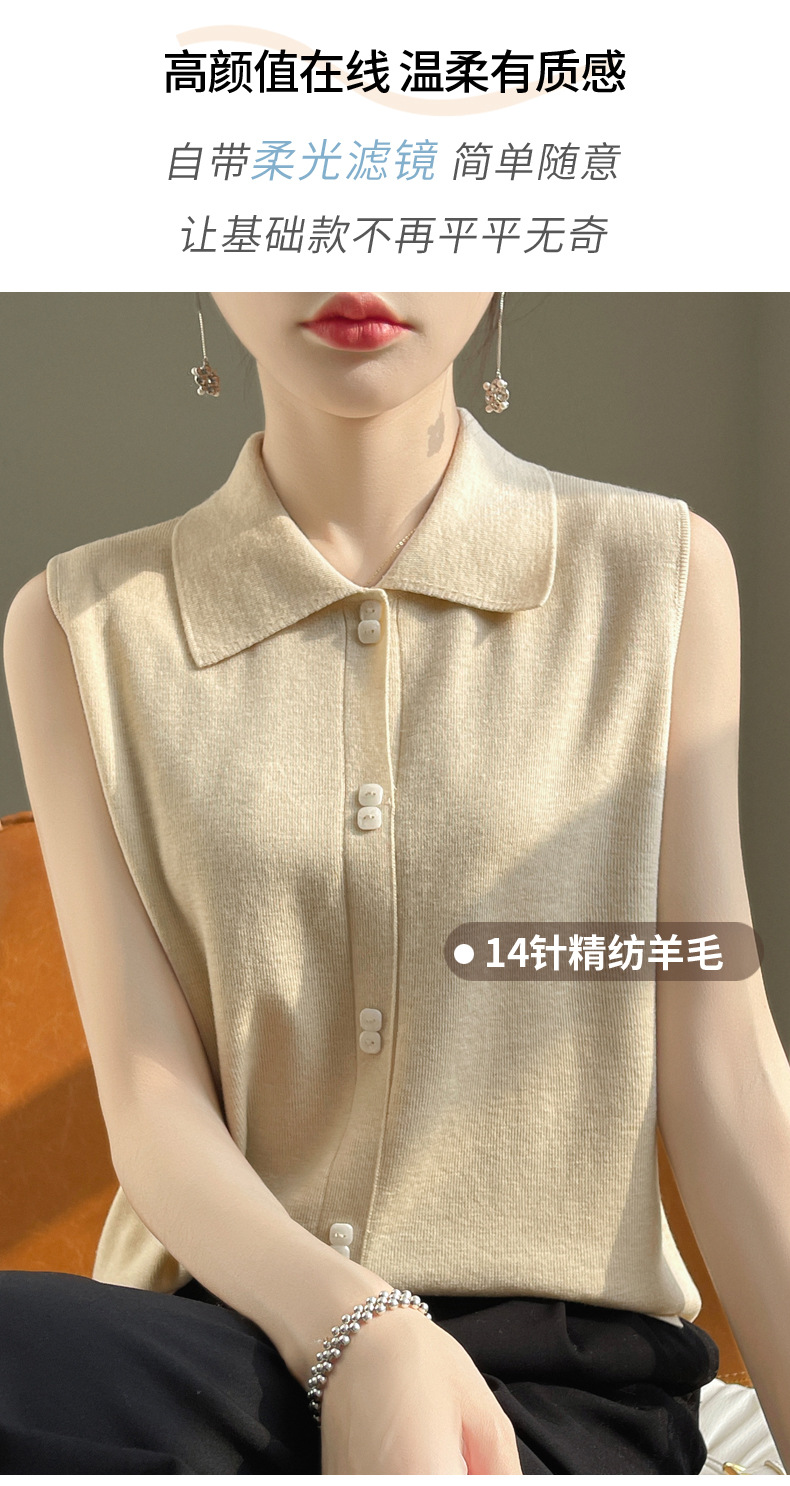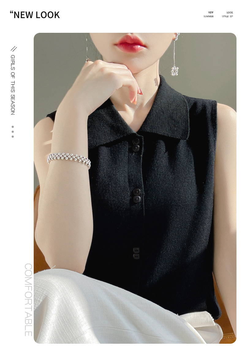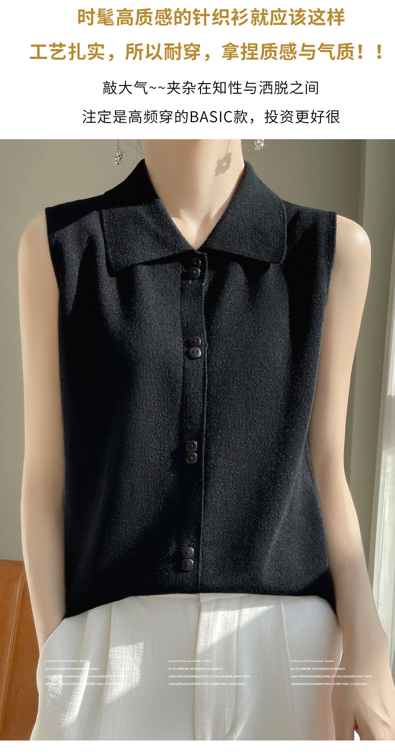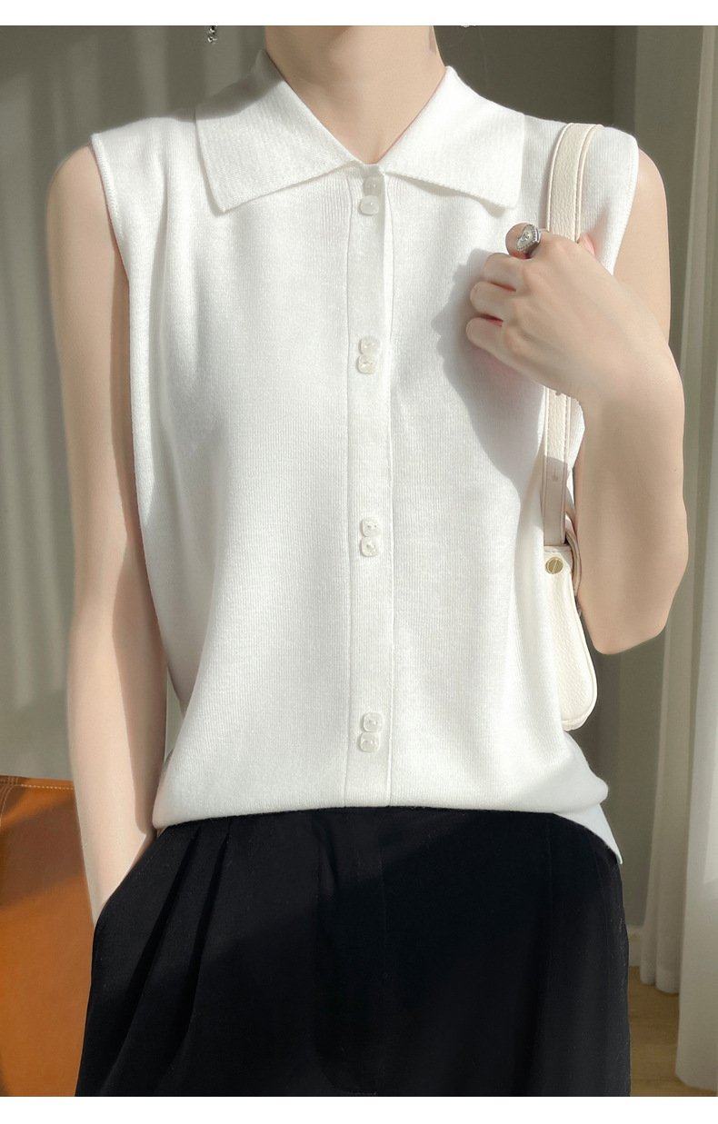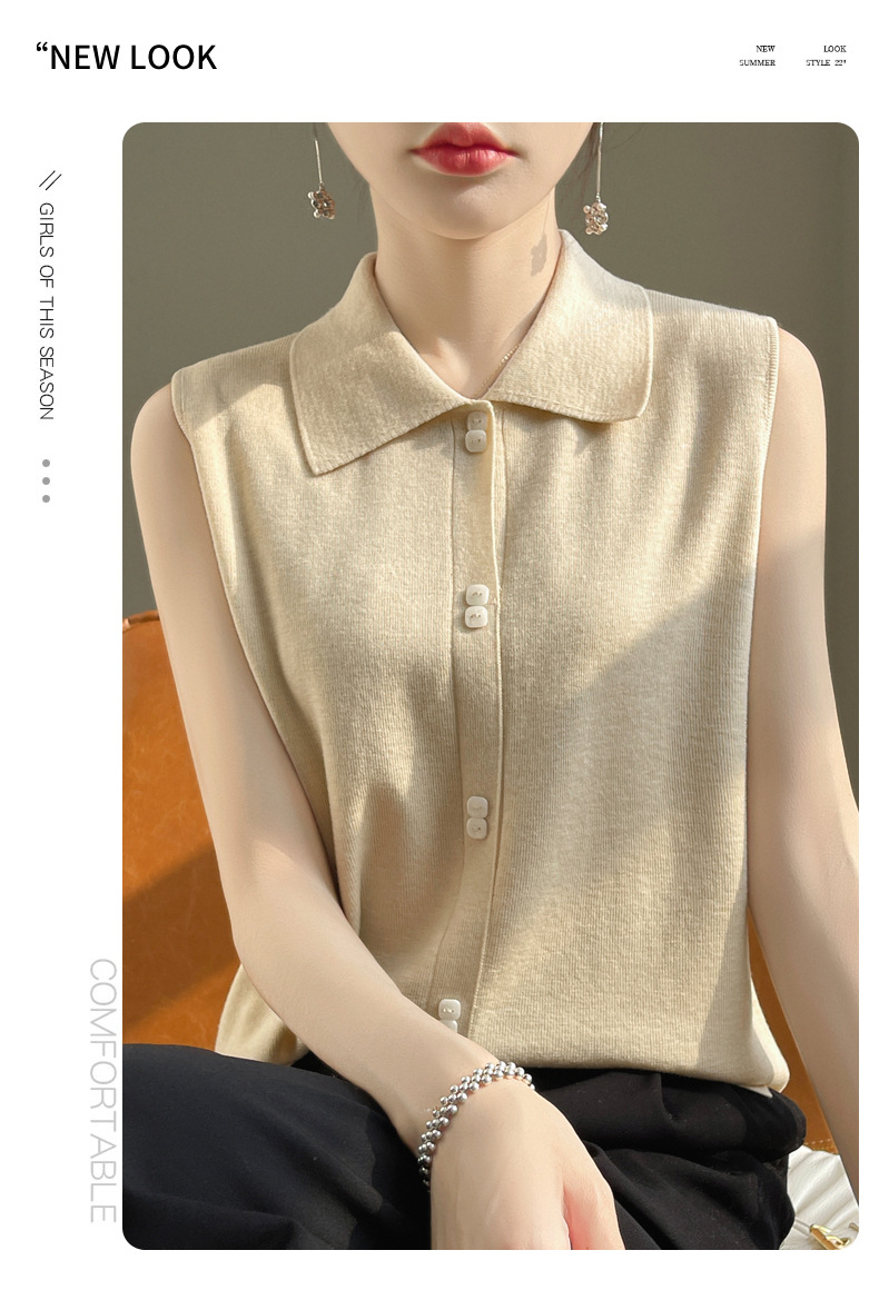 봄 2024 셔츠 칼라 민소매 니트 조끼 여성의 단색 짧은 내부 스웨터스토어 가기