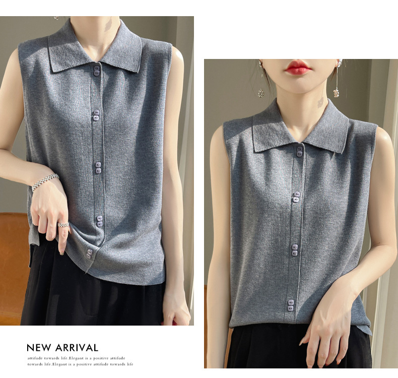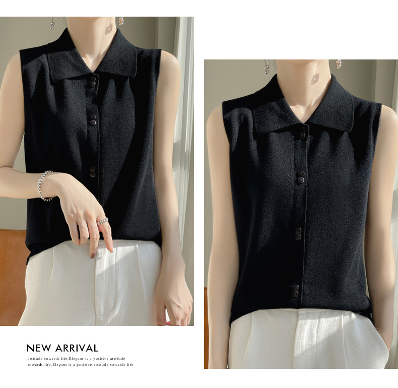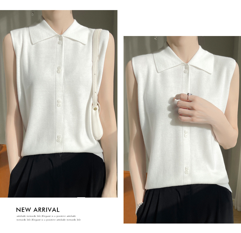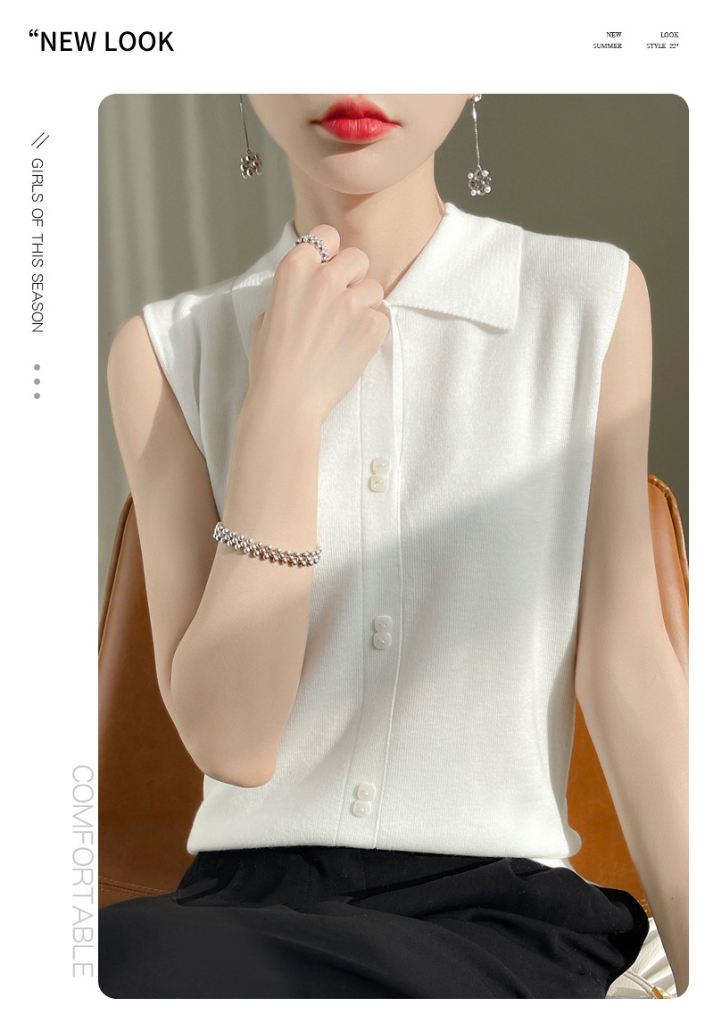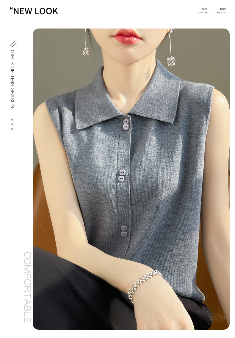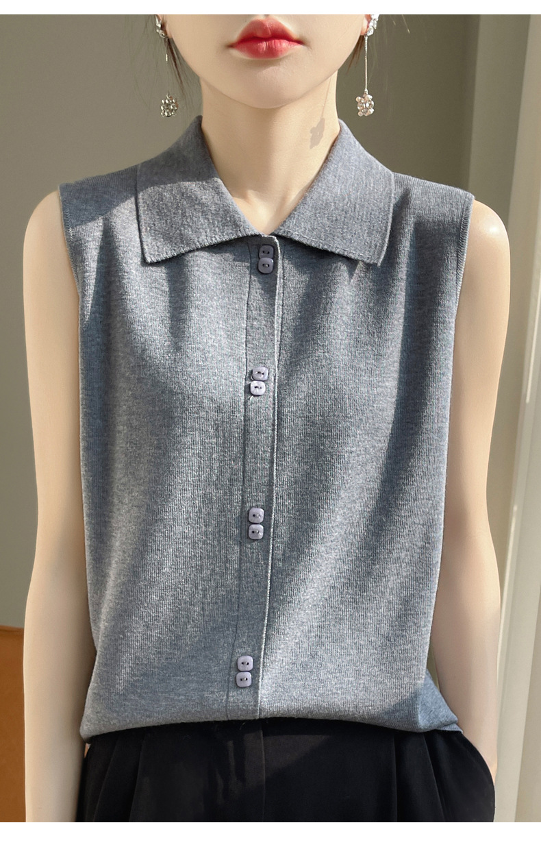 봄 2024 셔츠 칼라 민소매 니트 조끼 여성의 단색 짧은 내부 스웨터스토어 가기