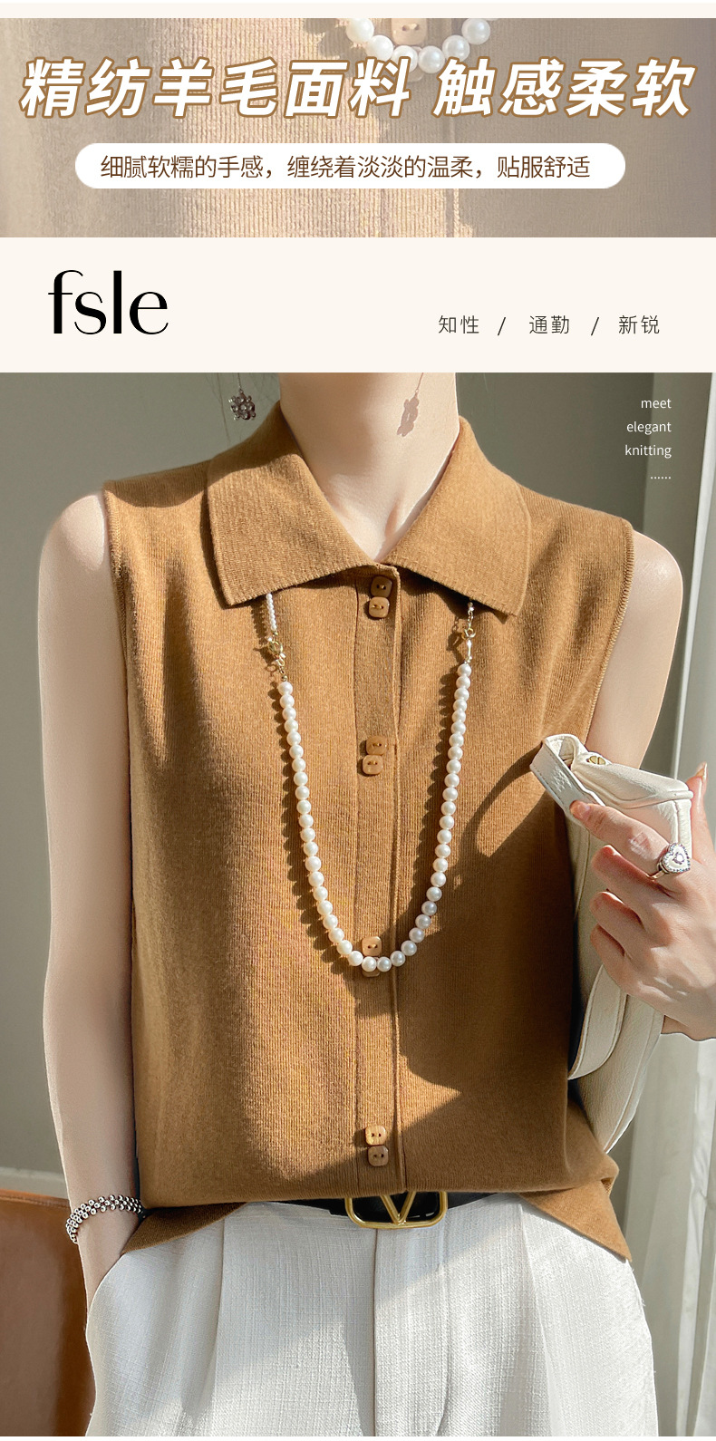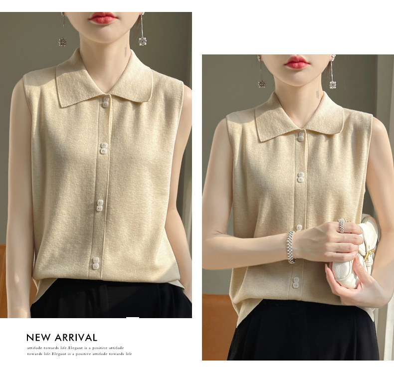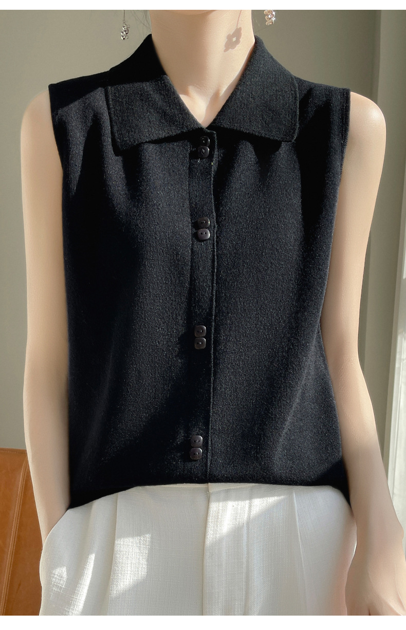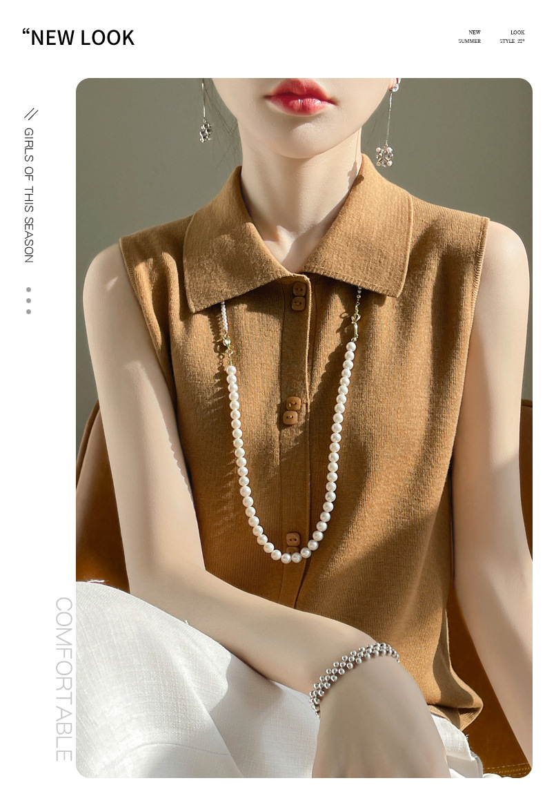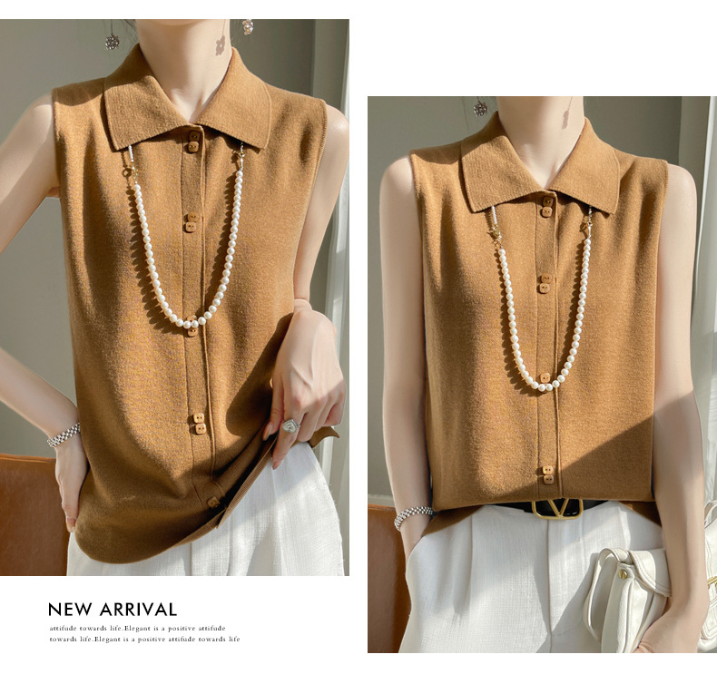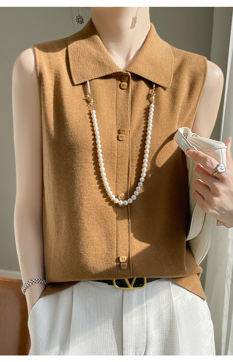 봄 2024 셔츠 칼라 민소매 니트 조끼 여성의 단색 짧은 내부 스웨터스토어 가기