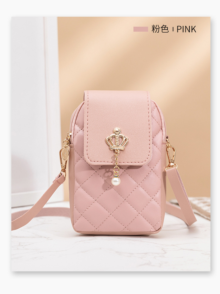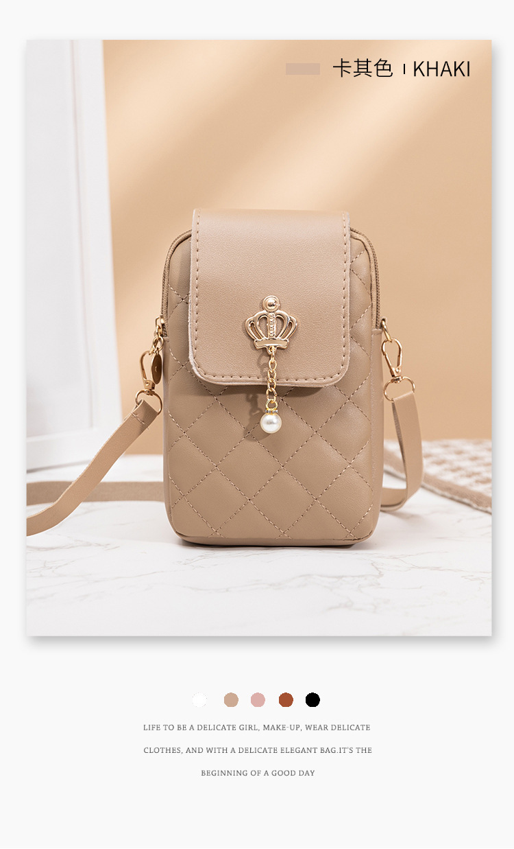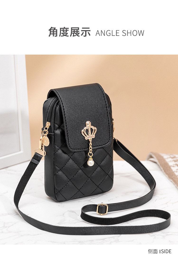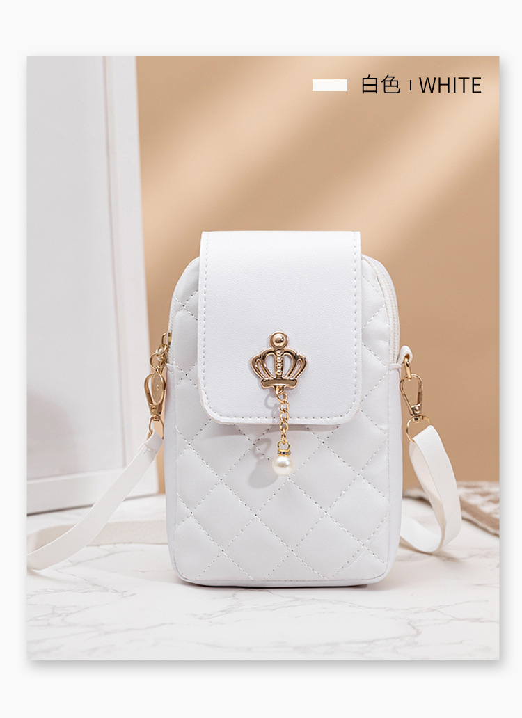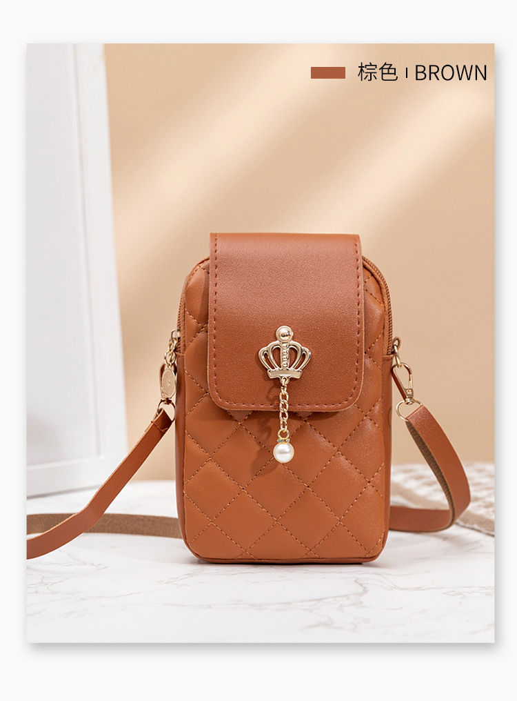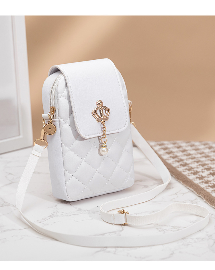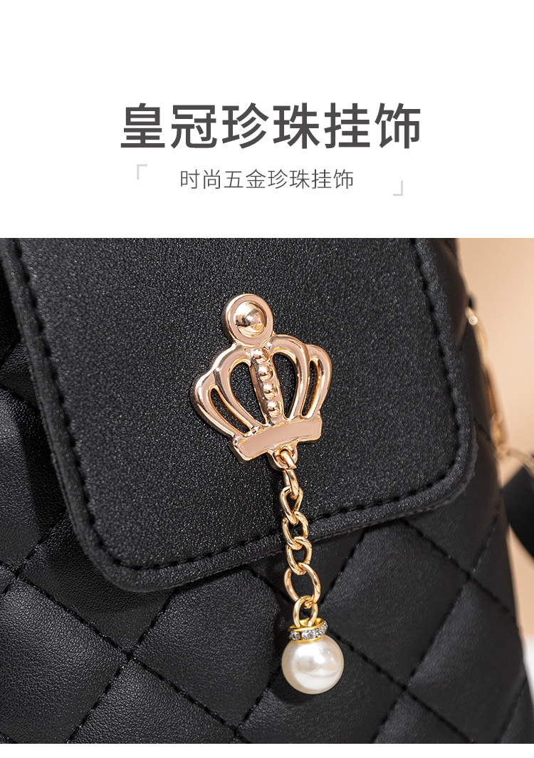크라운 진주 펜던트 장식 수직 휴대 전화 가방 2024 새로운 패션 트렌디 한 마름모 자수 단색 크로스 바디 가방