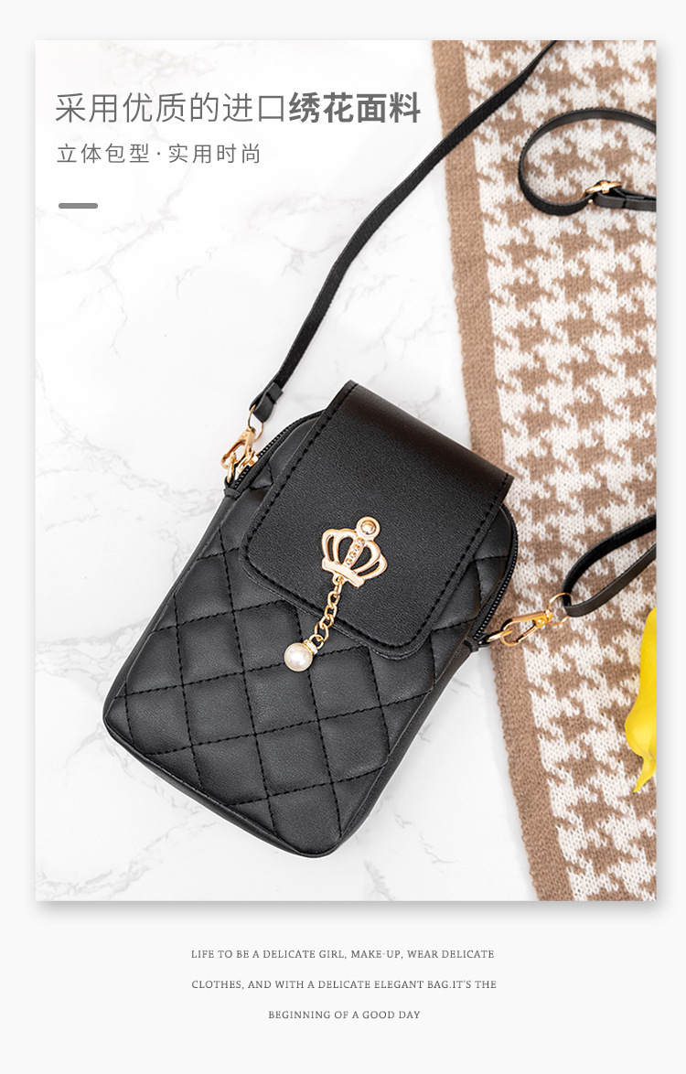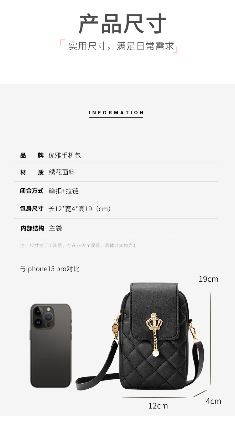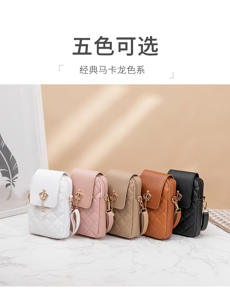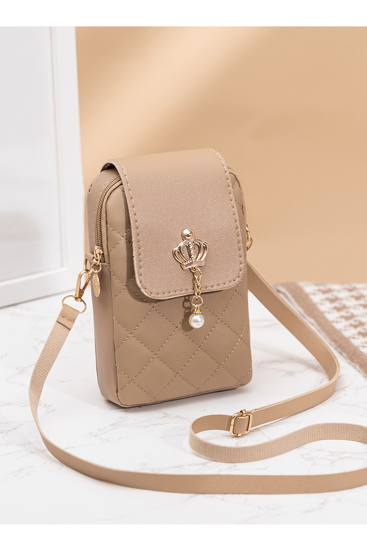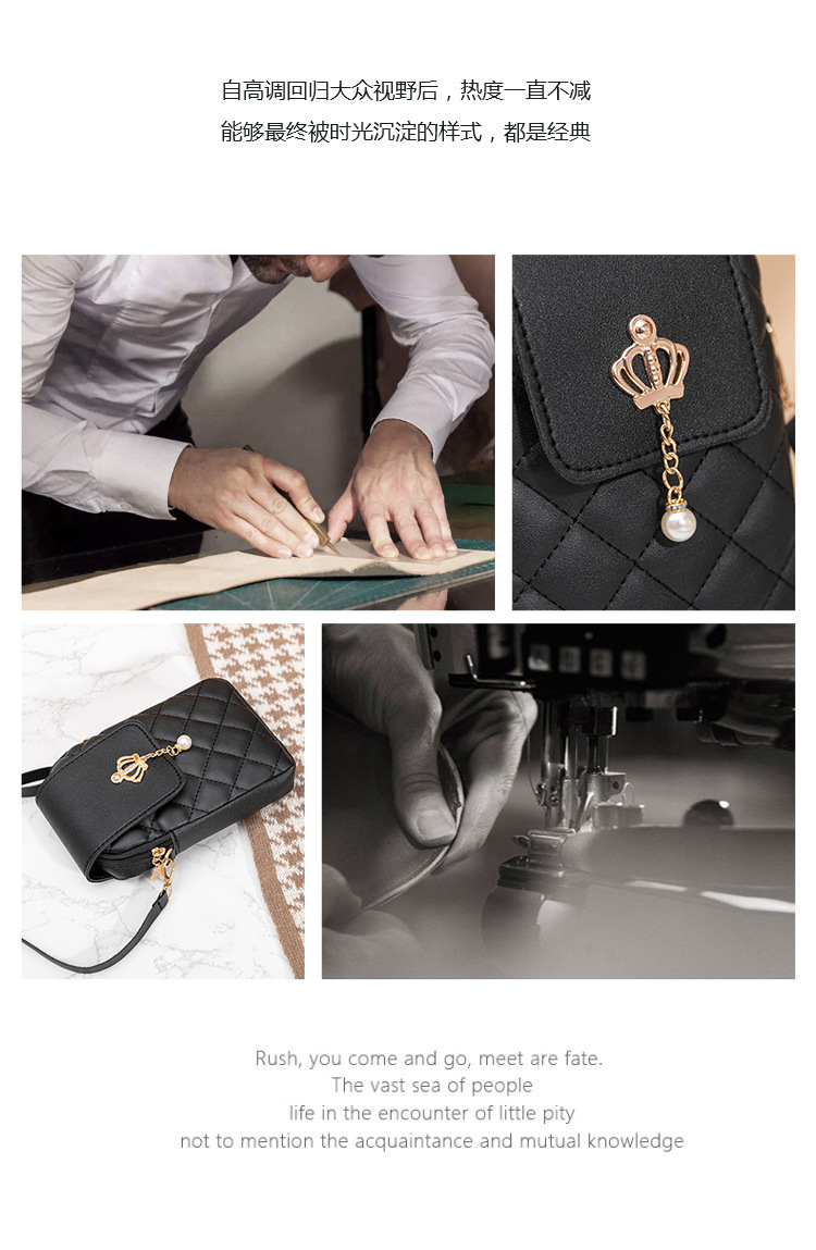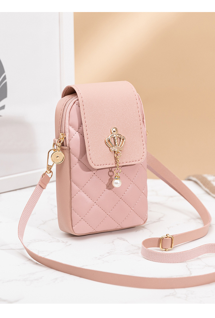 크라운 진주 펜던트 장식 수직 휴대 전화 가방 2024 새로운 패션 트렌디 한 마름모 자수 단색 크로스 바디 가방