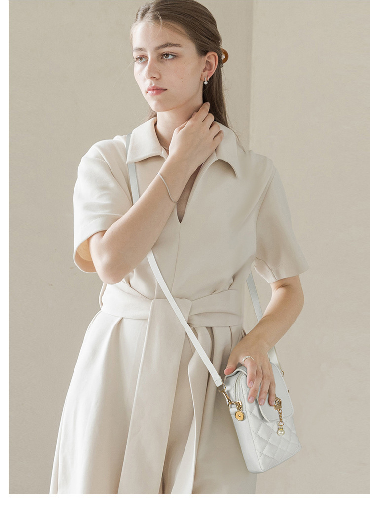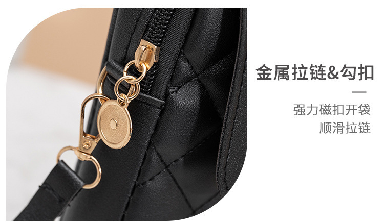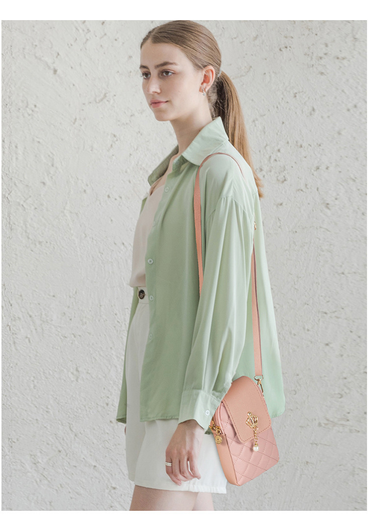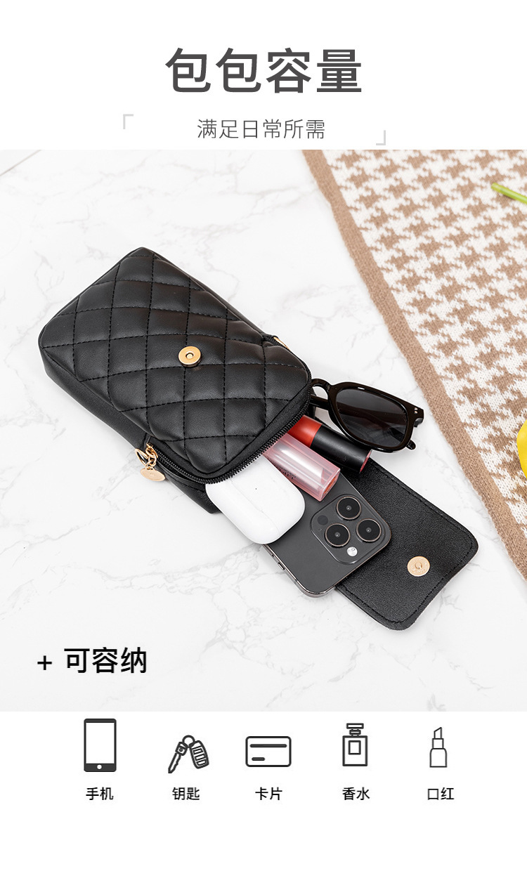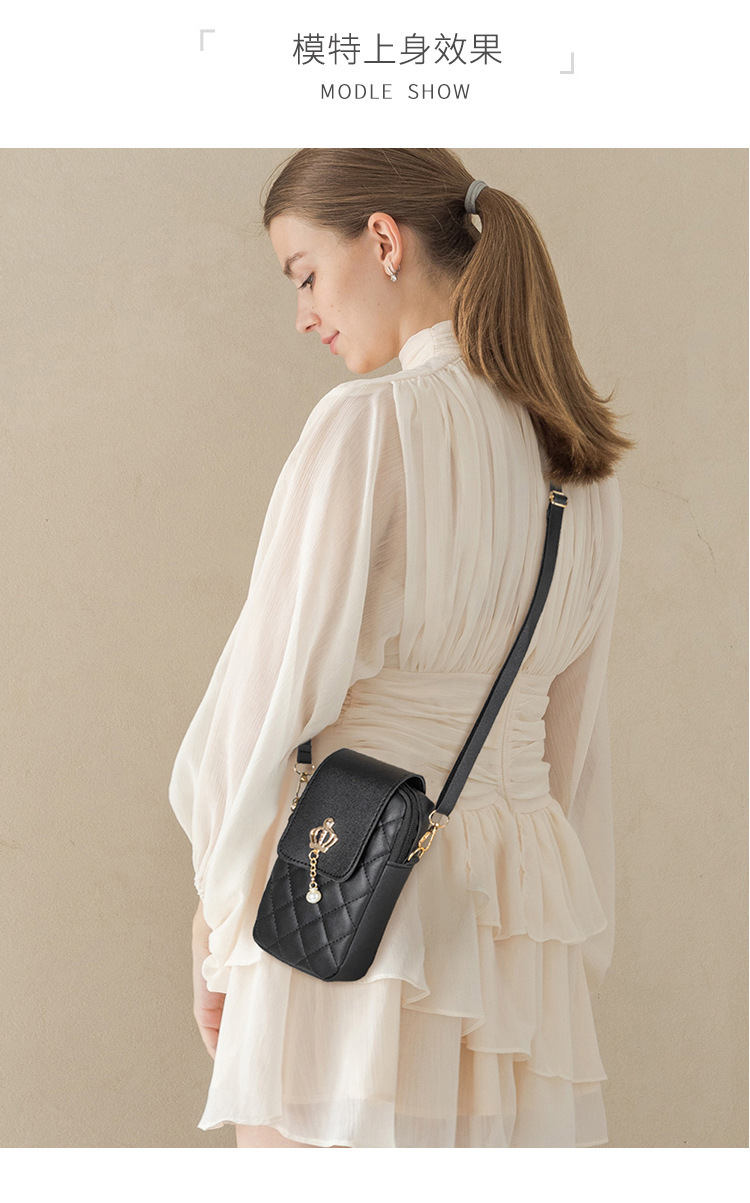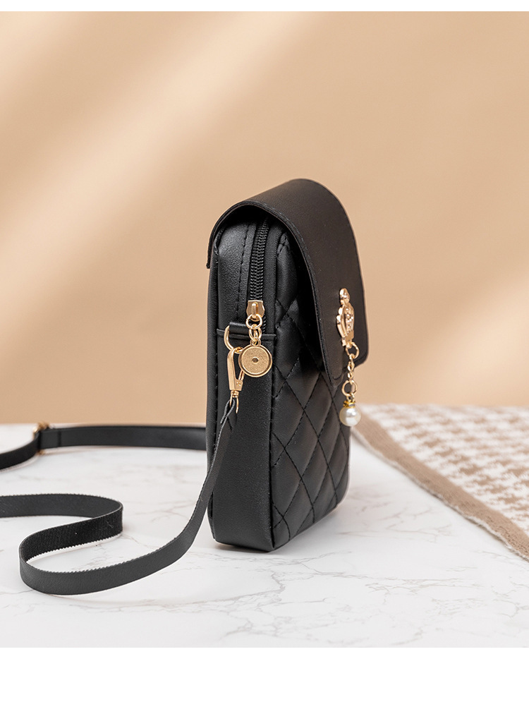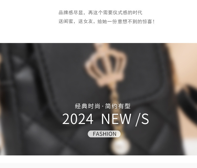 크라운 진주 펜던트 장식 수직 휴대 전화 가방 2024 새로운 패션 트렌디 한 마름모 자수 단색 크로스 바디 가방