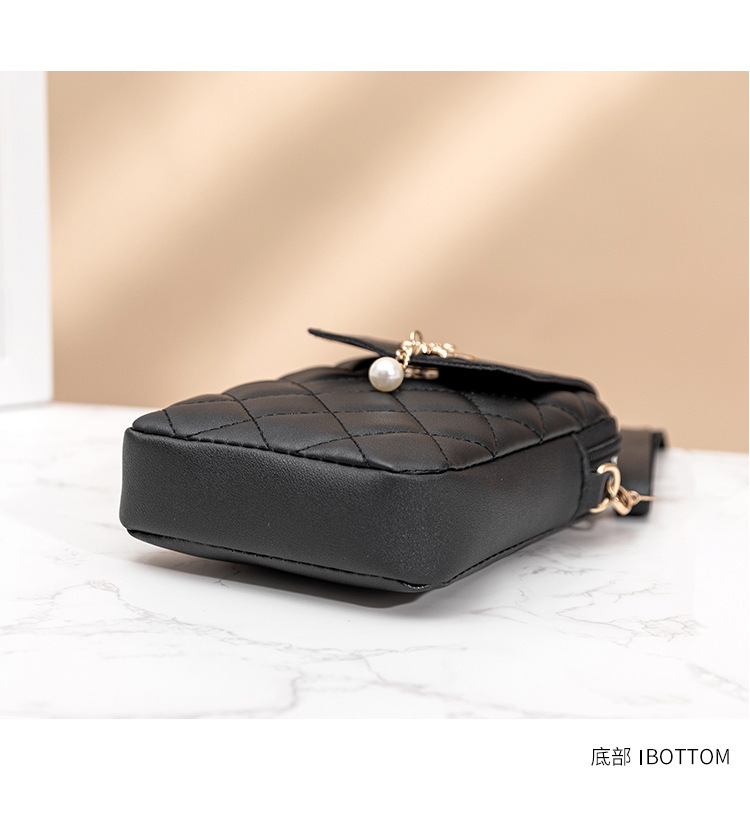 크라운 진주 펜던트 장식 수직 휴대 전화 가방 2024 새로운 패션 트렌디 한 마름모 자수 단색 크로스 바디 가방스토어 가기