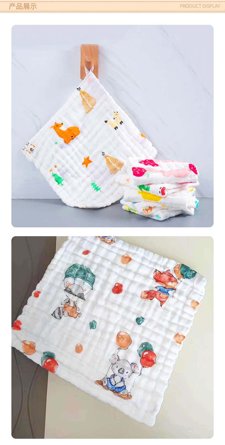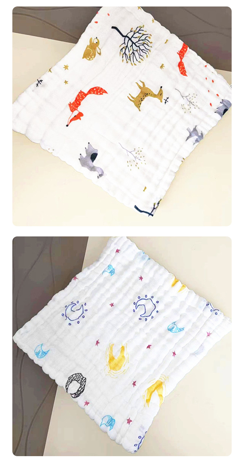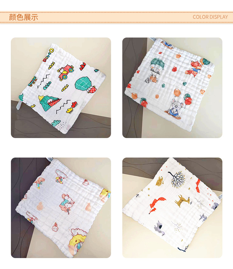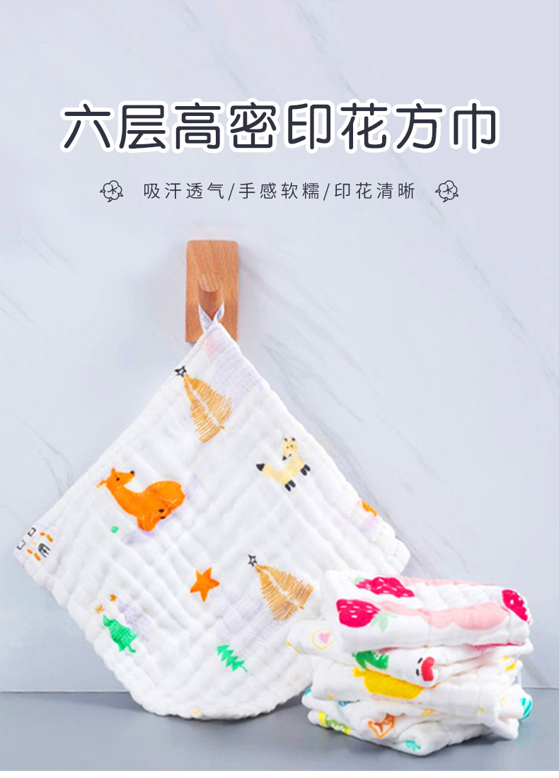 6겹 거즈 유아용 침수건 아기 세안용 작은 사각 수건 주름진 거즈 작은 수건 고밀도 6겹스토어 가기