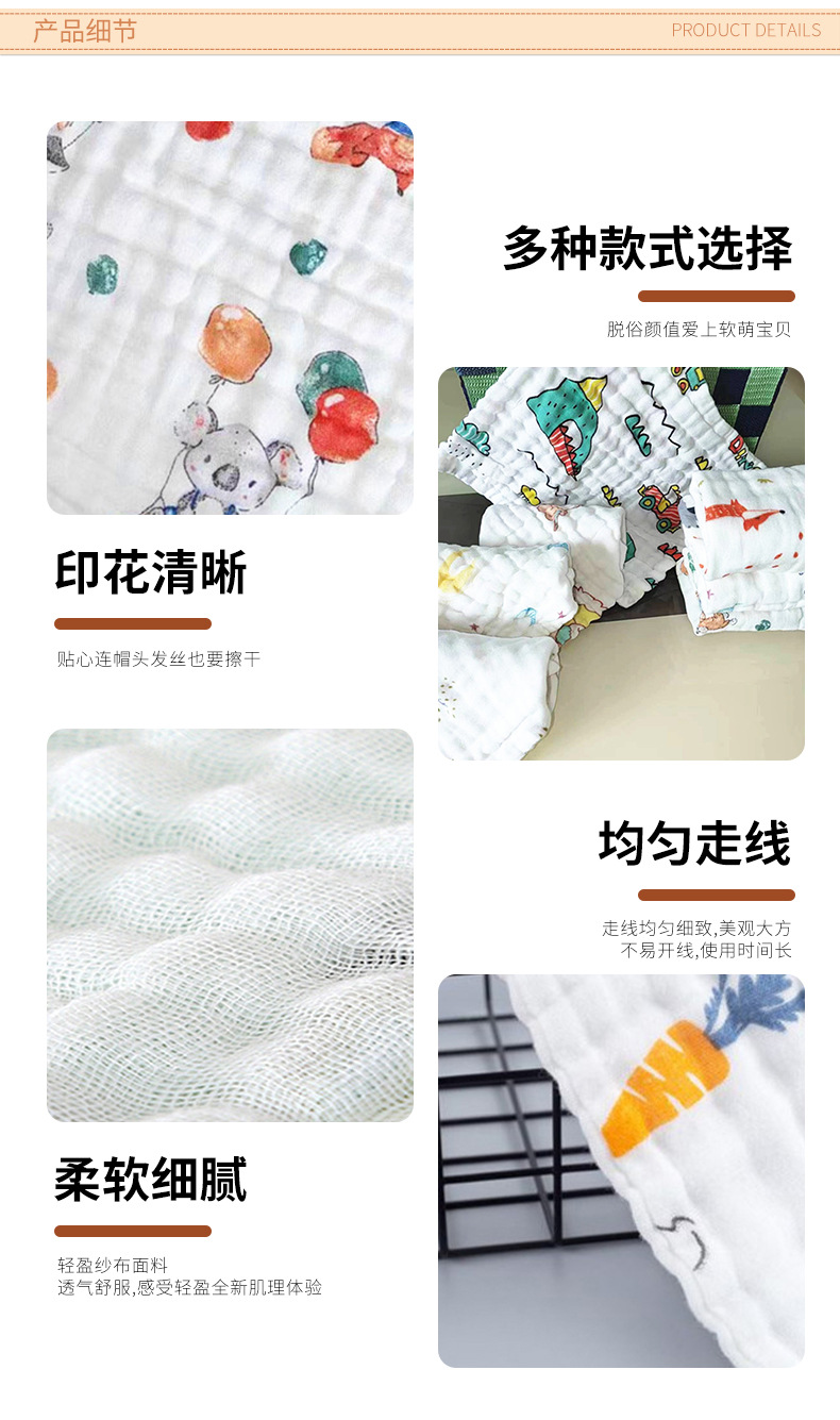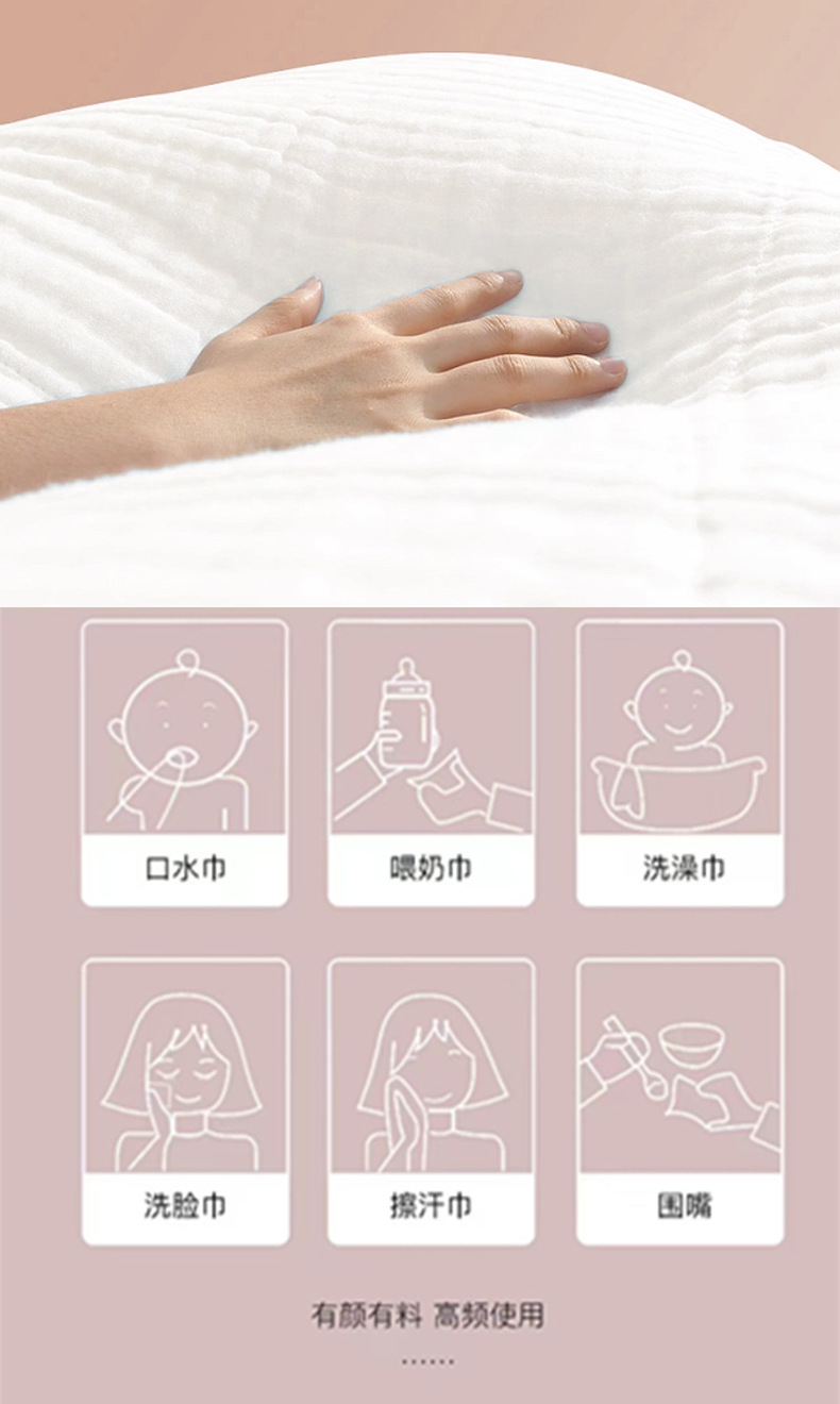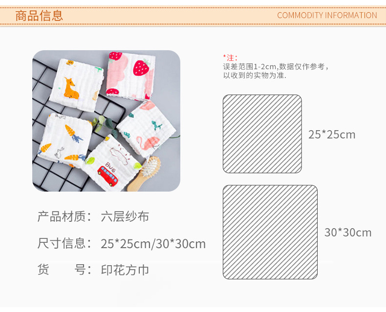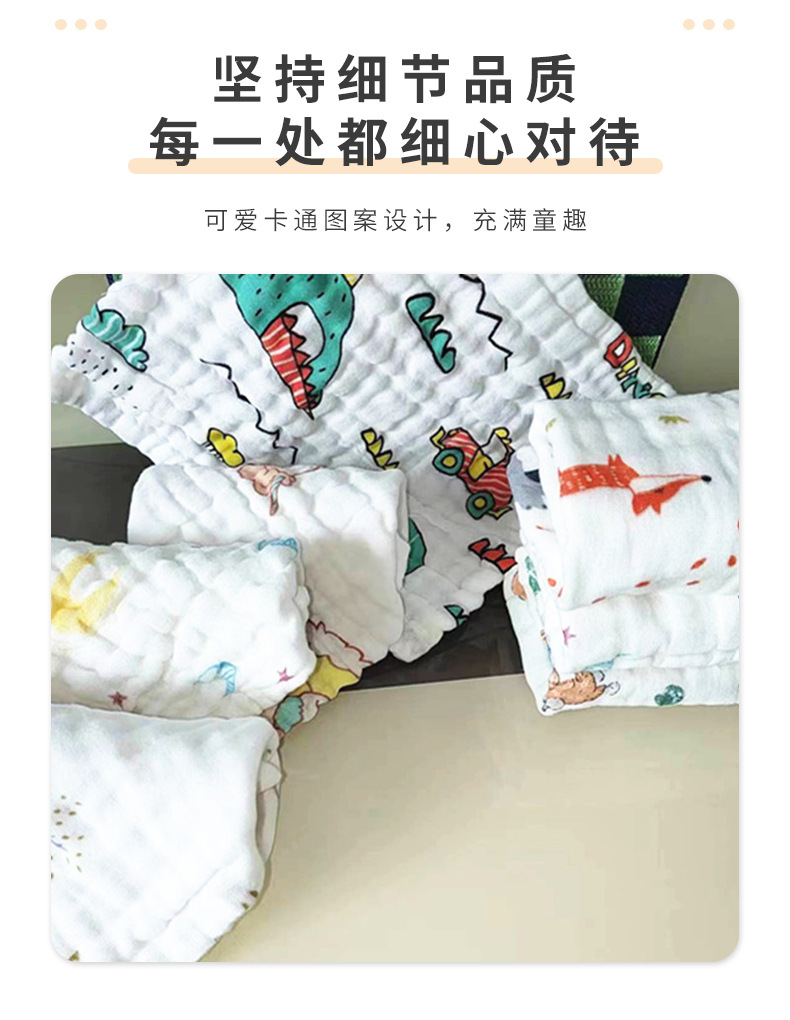 6겹 거즈 유아용 침수건 아기 세안용 작은 사각 수건 주름진 거즈 작은 수건 고밀도 6겹스토어 가기