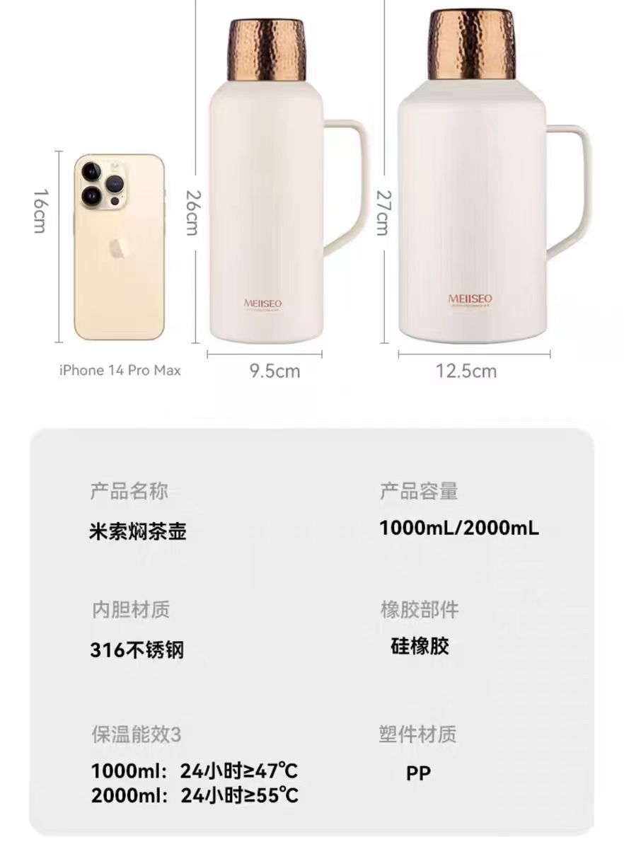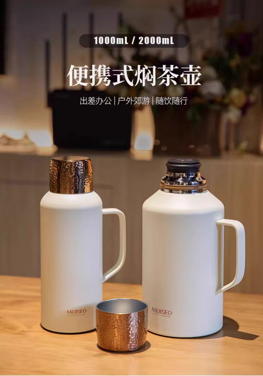 Misuo 작은 강철 대포 찐 주전자 새로운 휴대용 대용량 절연 냄비 오래된 흰색 차 답답한 주전자 사무실 주전자
