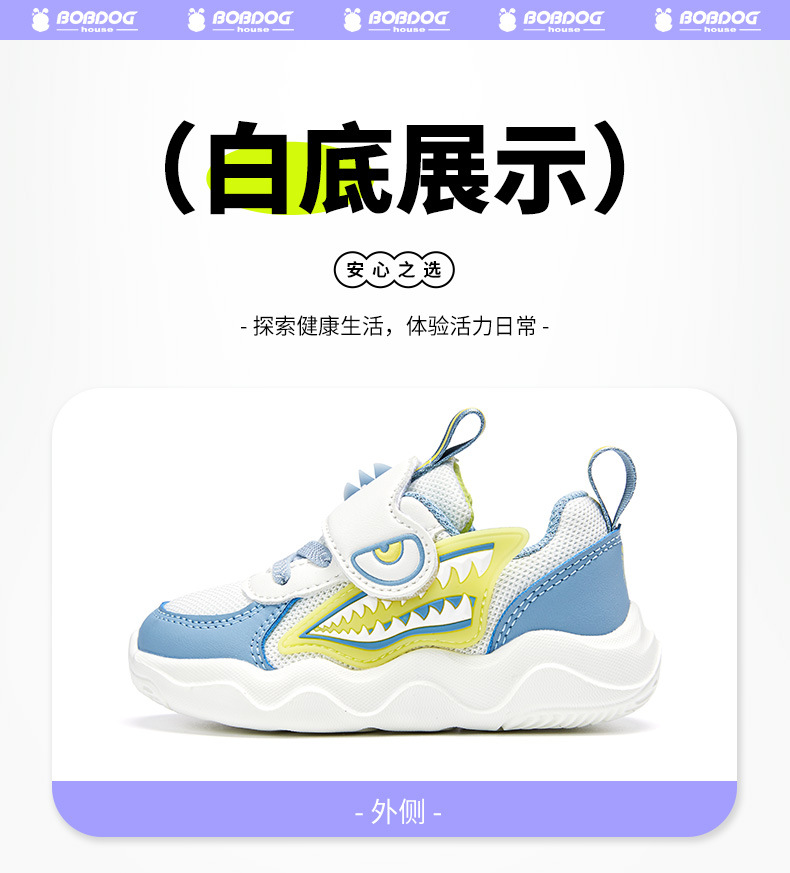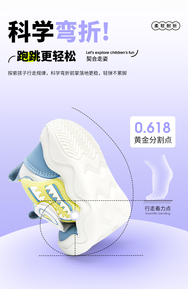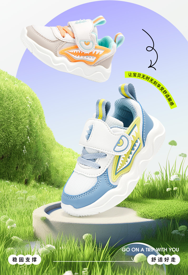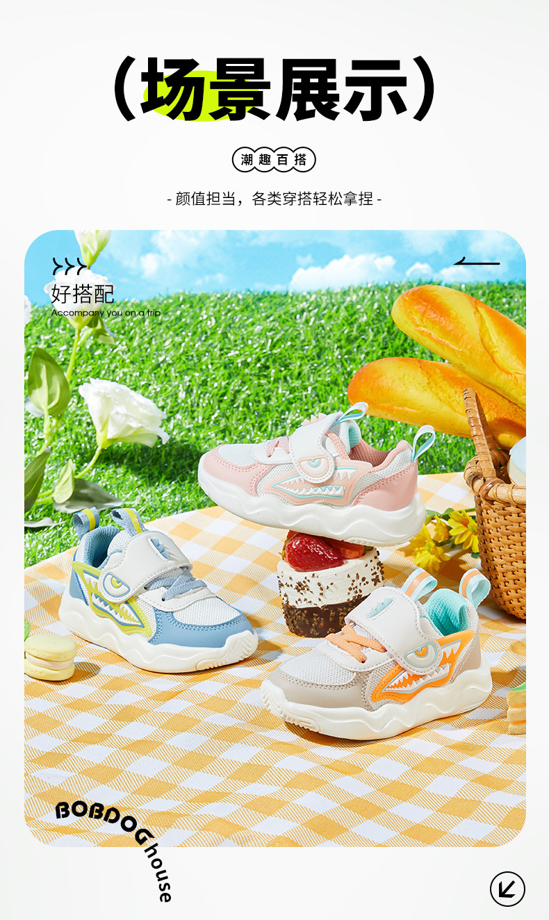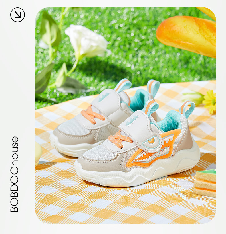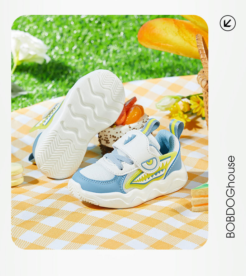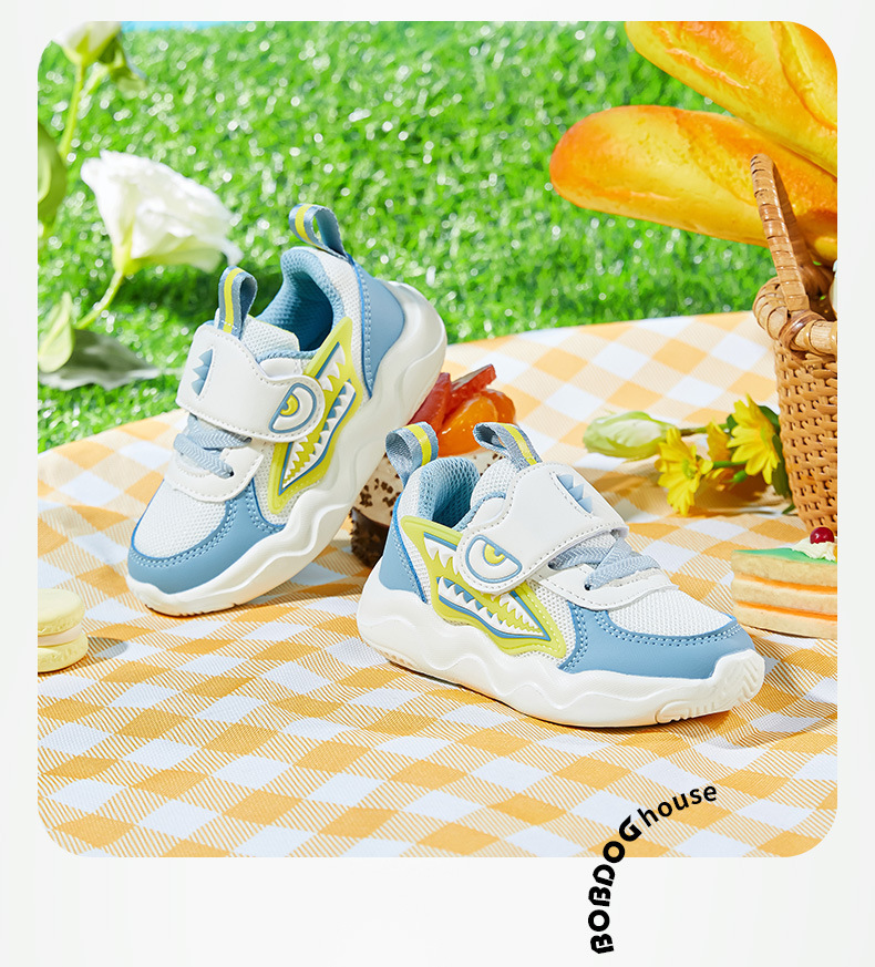 Babdou 어린이 신발 2024 봄과 가을 어린이 작은 공룡 기능 신발 소년과 소녀 메쉬 통기성 귀여운 운동화