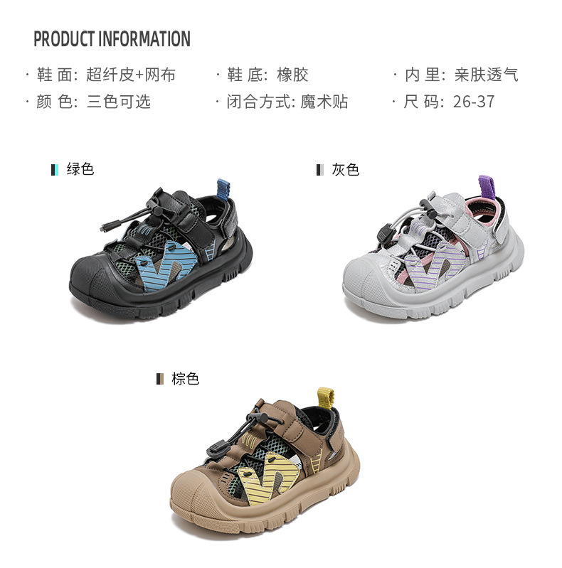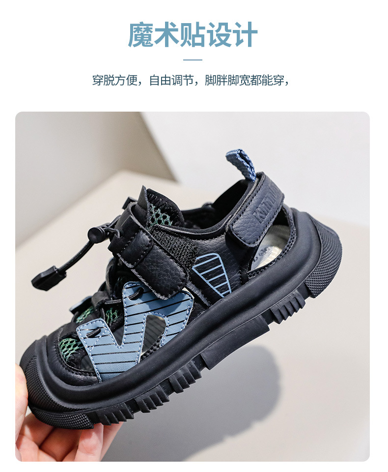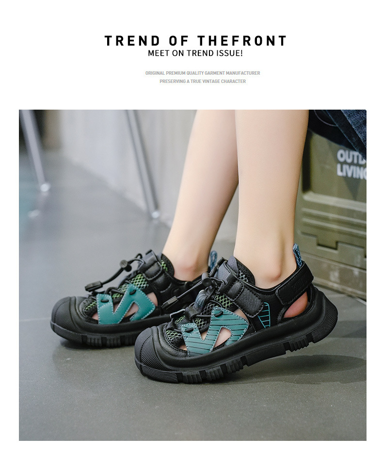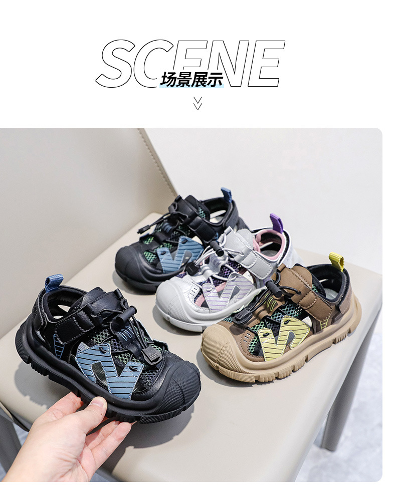 소년 샌들 2024 여름 새 어린이 닫힌 발가락 운동화 여름 메쉬 통기성 부드러운 바닥 캐주얼 비치 슈즈