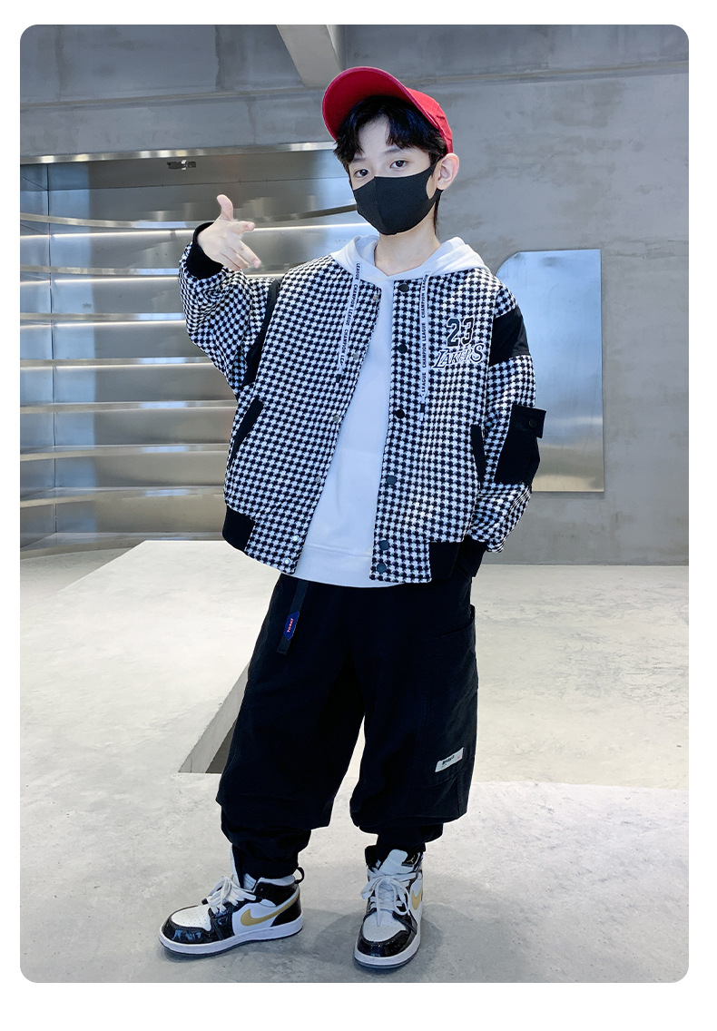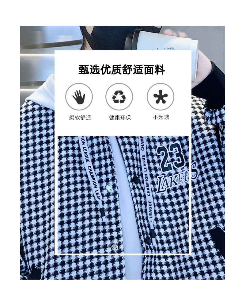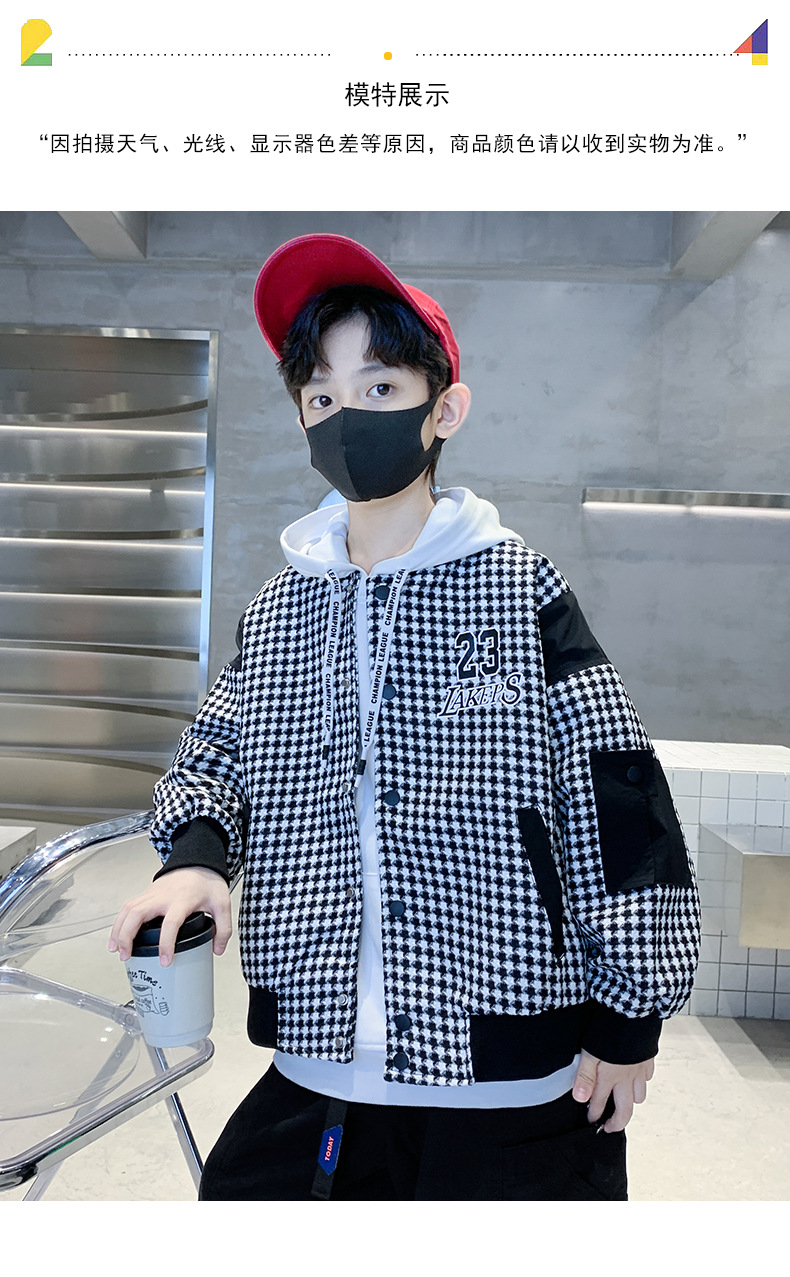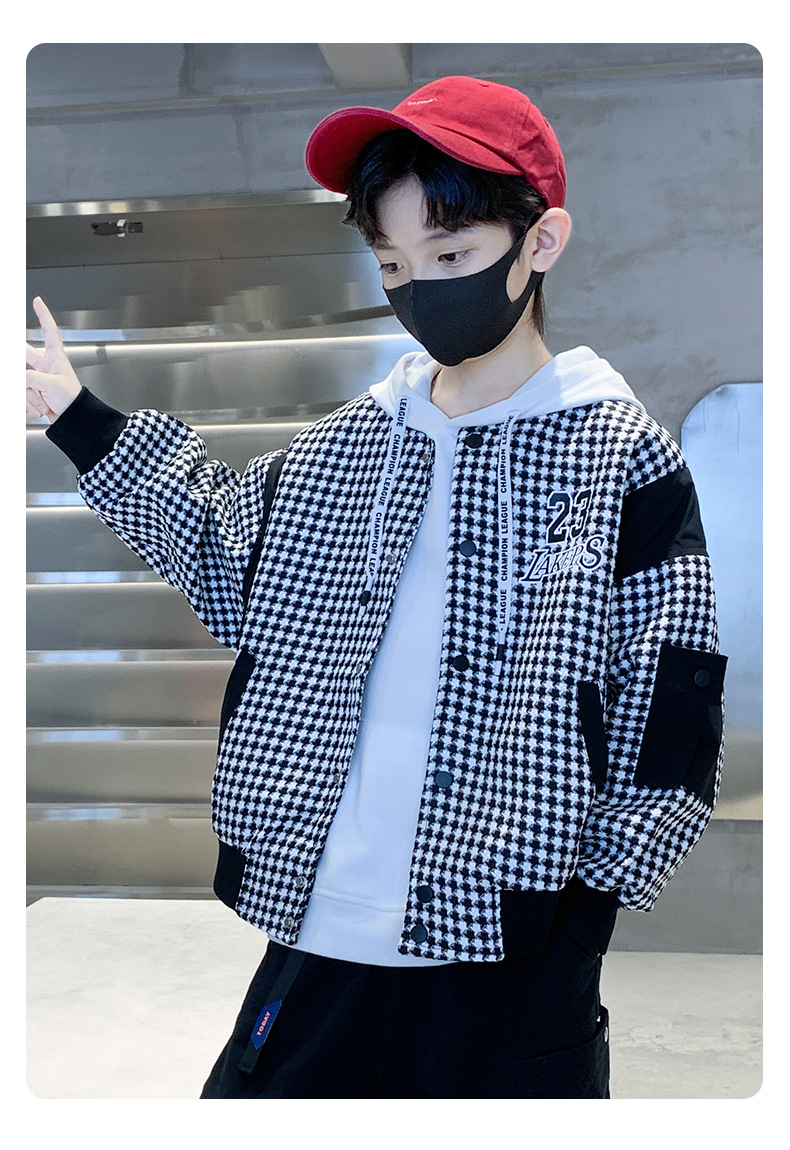 소년 자켓 봄과 가을 2024 뉴 Ruan Shuai houndstooth 어린이 야구 유니폼 중형 및 대형 어린이 봄 패션 재킷스토어 가기