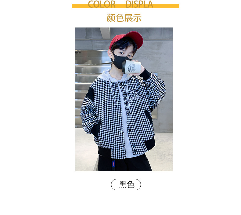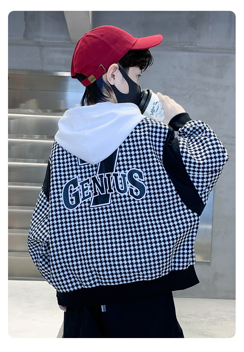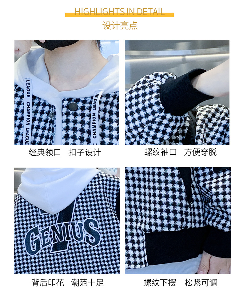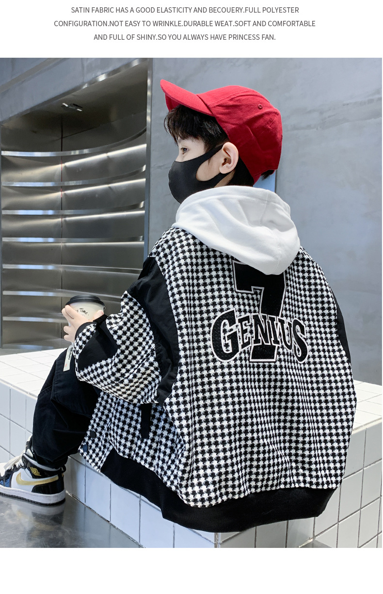 소년 자켓 봄과 가을 2024 뉴 Ruan Shuai houndstooth 어린이 야구 유니폼 중형 및 대형 어린이 봄 패션 재킷스토어 가기