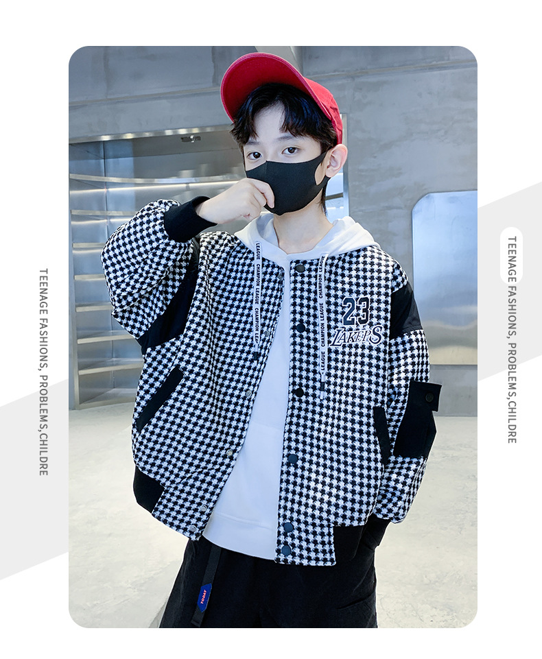 소년 자켓 봄과 가을 2024 뉴 Ruan Shuai houndstooth 어린이 야구 유니폼 중형 및 대형 어린이 봄 패션 재킷
