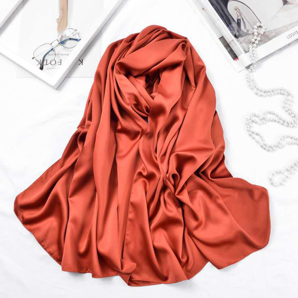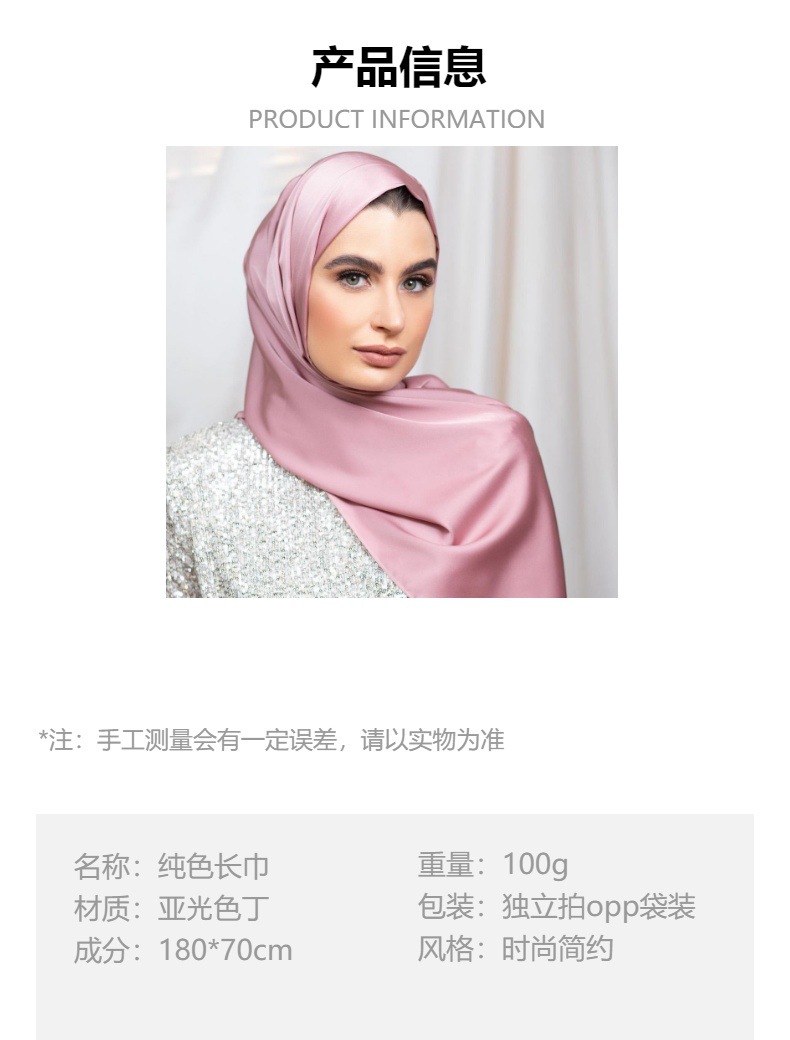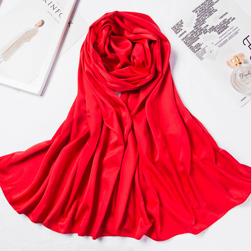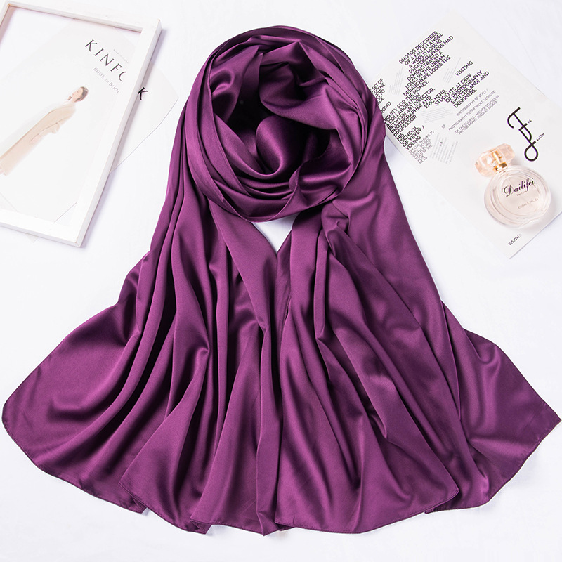180*70cm 단색 큰 사각형 스카프 매트 새틴 스카프 여성의 세련된 간단한 단색 인공 실크 스카프 목도리