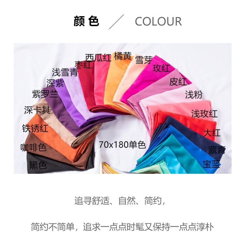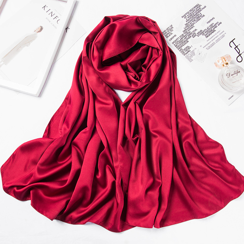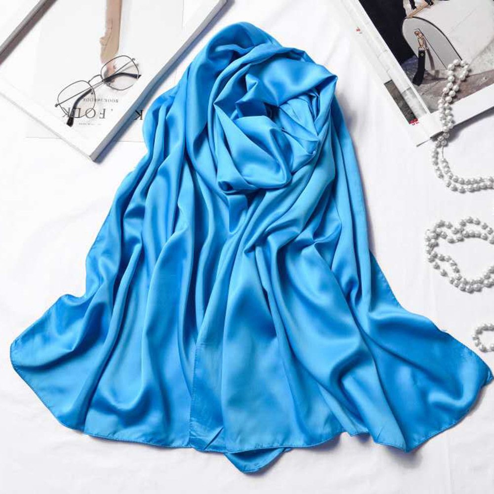 180*70cm 단색 큰 사각형 스카프 매트 새틴 스카프 여성의 세련된 간단한 단색 인공 실크 스카프 목도리스토어 가기