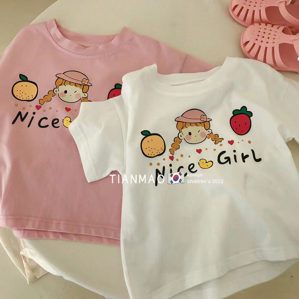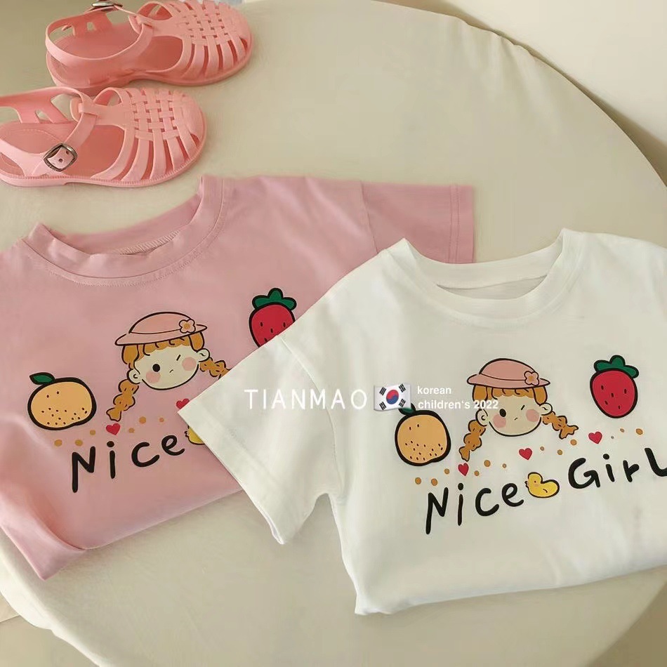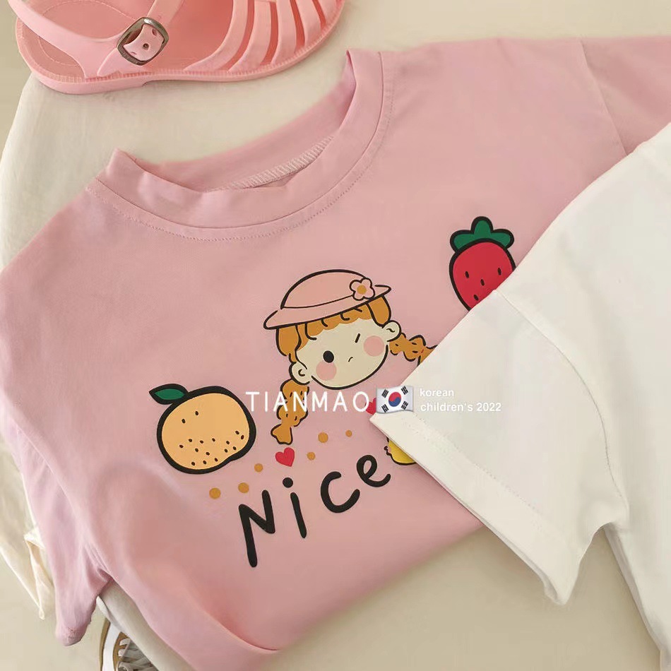 100% 코튼 소녀의 긴팔 티셔츠 바닥 셔츠 봄과 가을 2024 새로운 어린이 만화 바느질 둥근 목 꼭대기스토어 가기