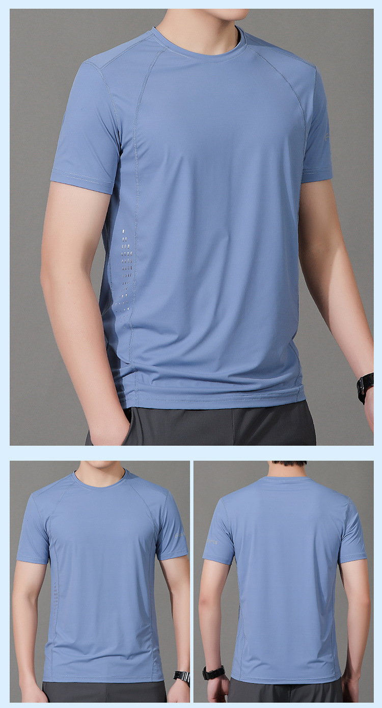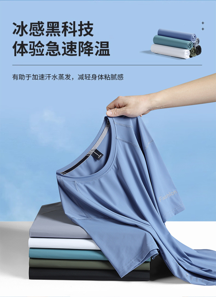 여름 새로운 스포츠 및 레저 얼음 실크 반팔 남성 티셔츠 대형 속건성 얼음 느낌 탄성 통기성 루즈 탑
