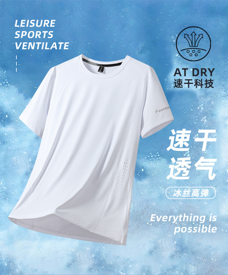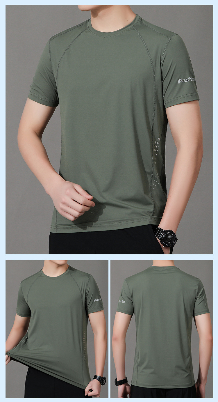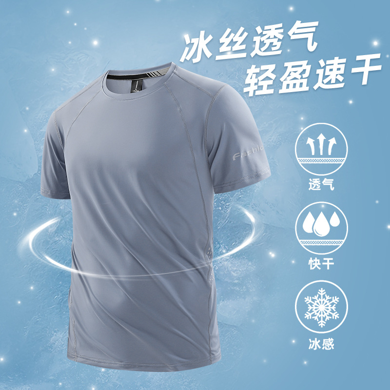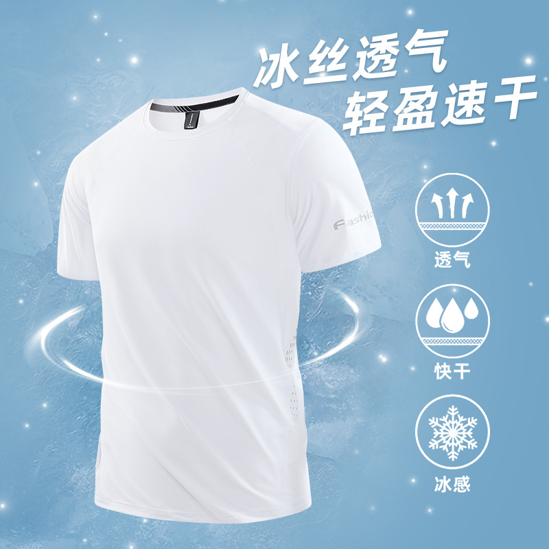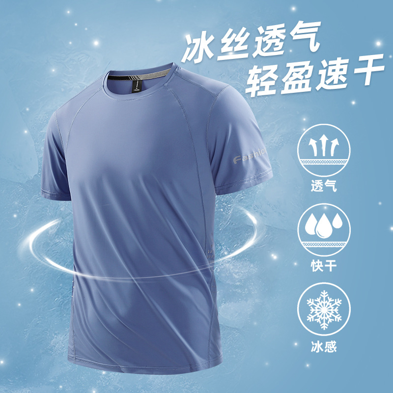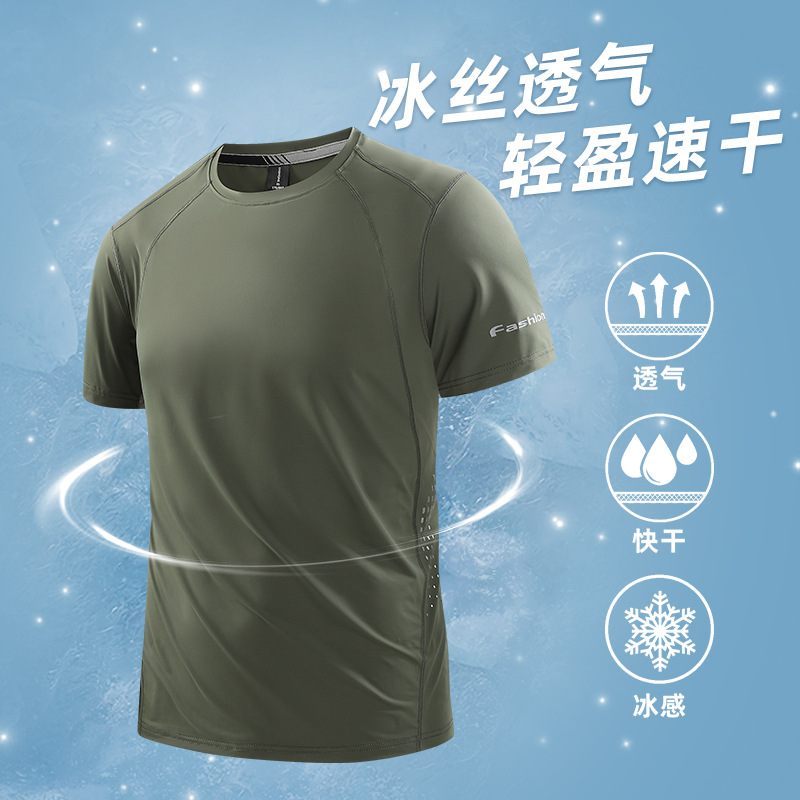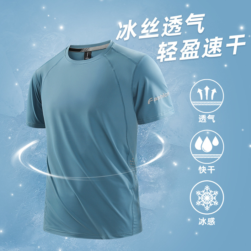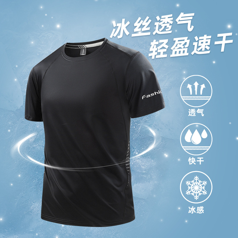 여름 새로운 스포츠 및 레저 얼음 실크 반팔 남성 티셔츠 대형 속건성 얼음 느낌 탄성 통기성 루즈 탑스토어 가기