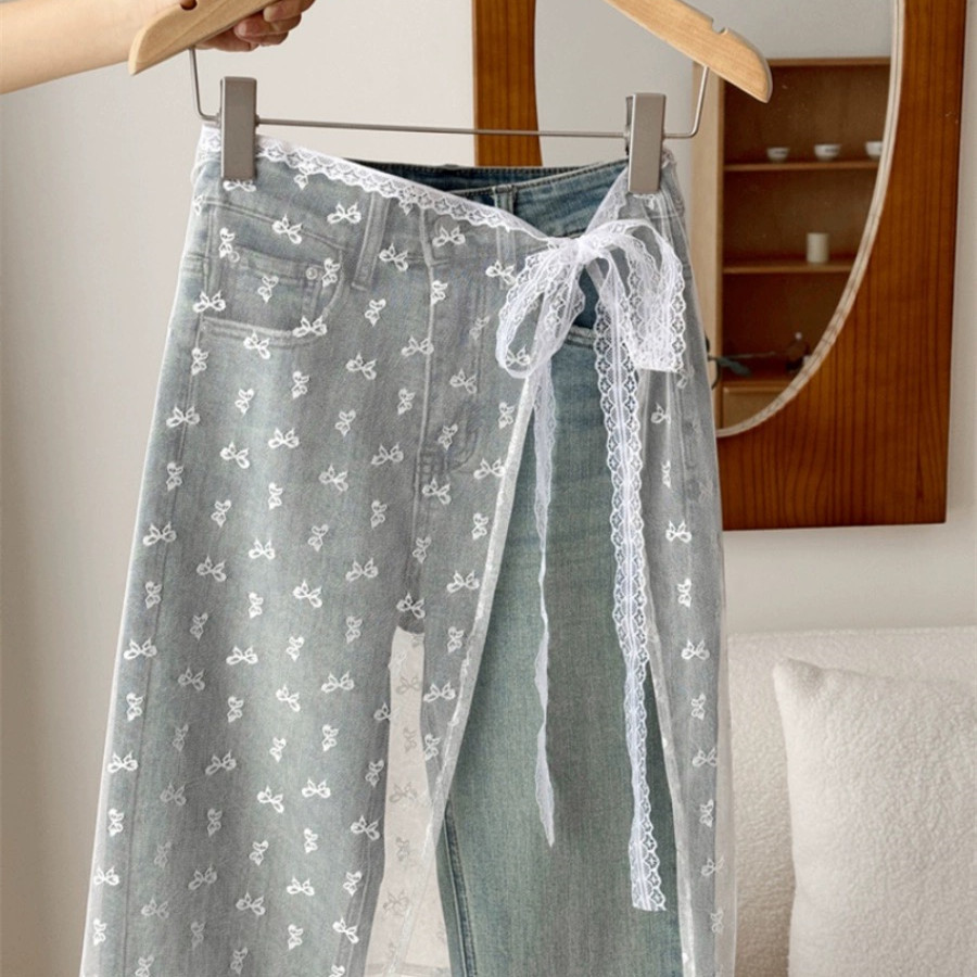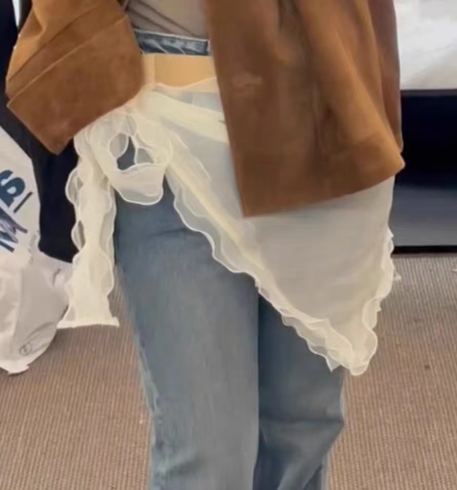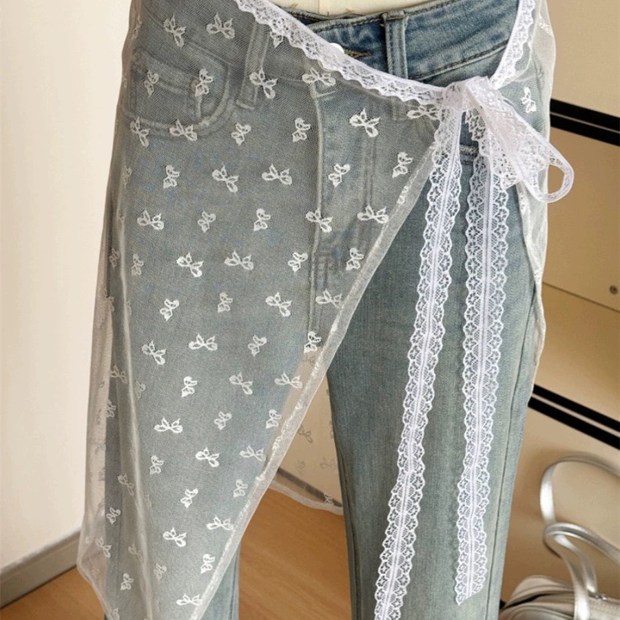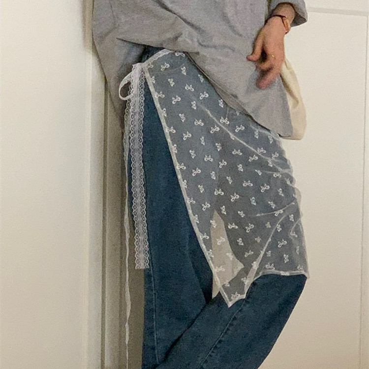 한국 넷 레드 블로거 같은 스타일 레이스 방귀 커튼 쌓인 앞치마 활 거즈 스커트 레이스 섹시한 스커트스토어 가기
