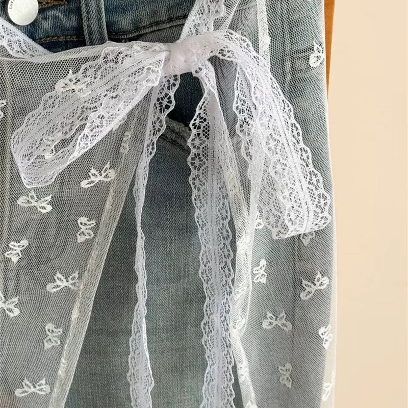한국 넷 레드 블로거 같은 스타일 레이스 방귀 커튼 쌓인 앞치마 활 거즈 스커트 레이스 섹시한 스커트