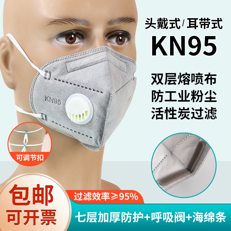 귀에 장착 된 KN95 먼지 마스크 산업 방진 성인 활성탄 마스크 독립 포장 마스크스토어 가기