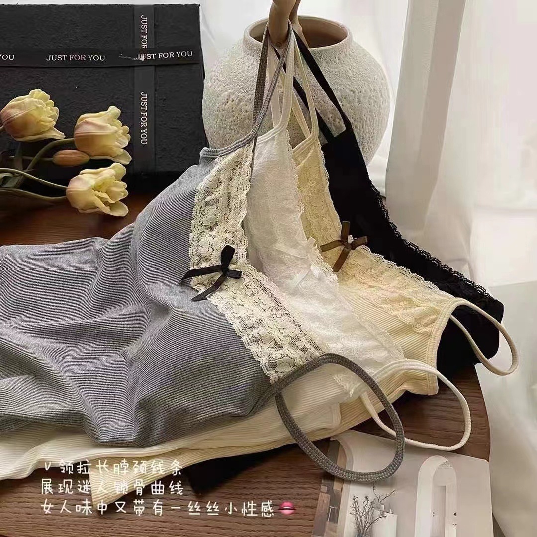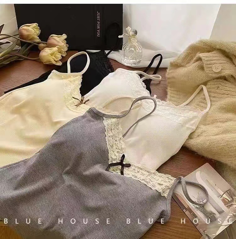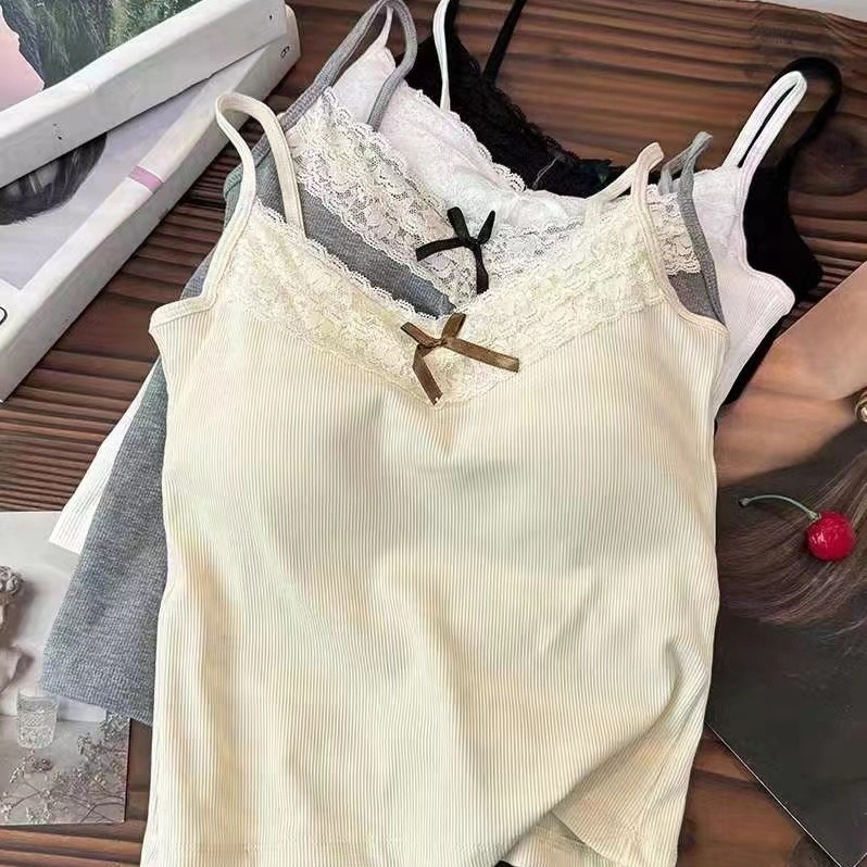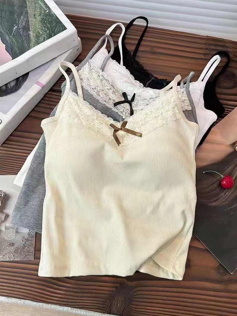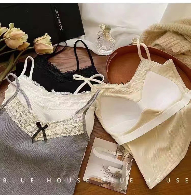가슴 패드 활 짧은 슬림 레이스 디자인 민소매 상단과 뜨거운 소녀 순수한 욕망 캐미솔베이스스토어 가기