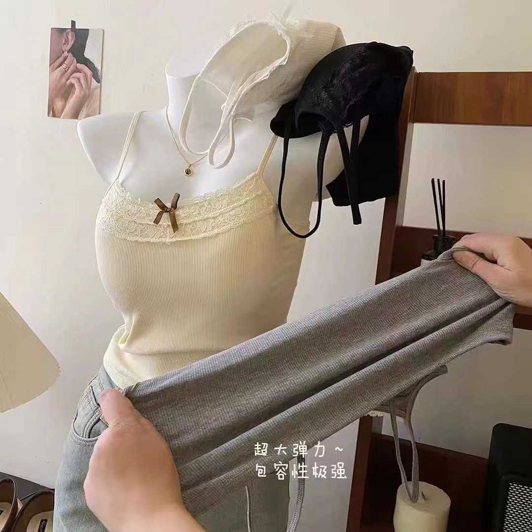 가슴 패드 활 짧은 슬림 레이스 디자인 민소매 상단과 뜨거운 소녀 순수한 욕망 캐미솔베이스