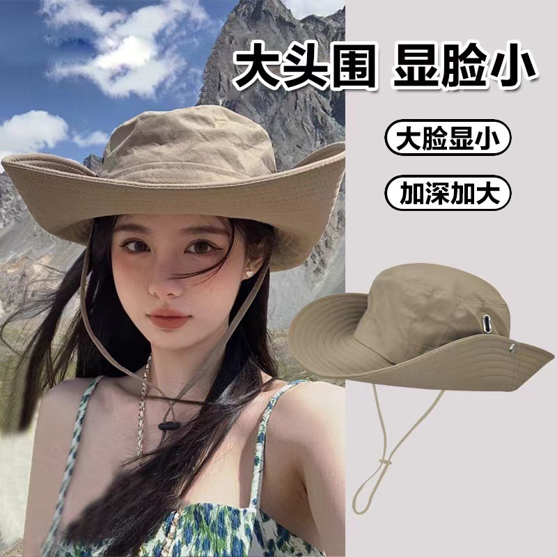 새로운 서양 카우보이 모자 일본식 올 매치 드로우 스트링 어부 모자 야외 태양 방지 빅 브림 등산 낚시 모자 남녀 여름스토어 가기