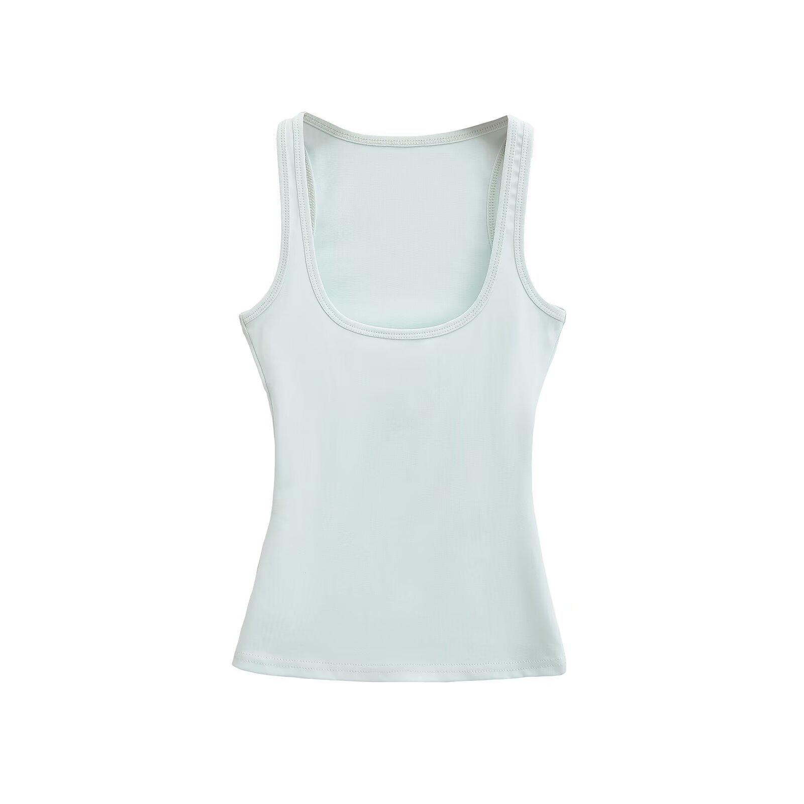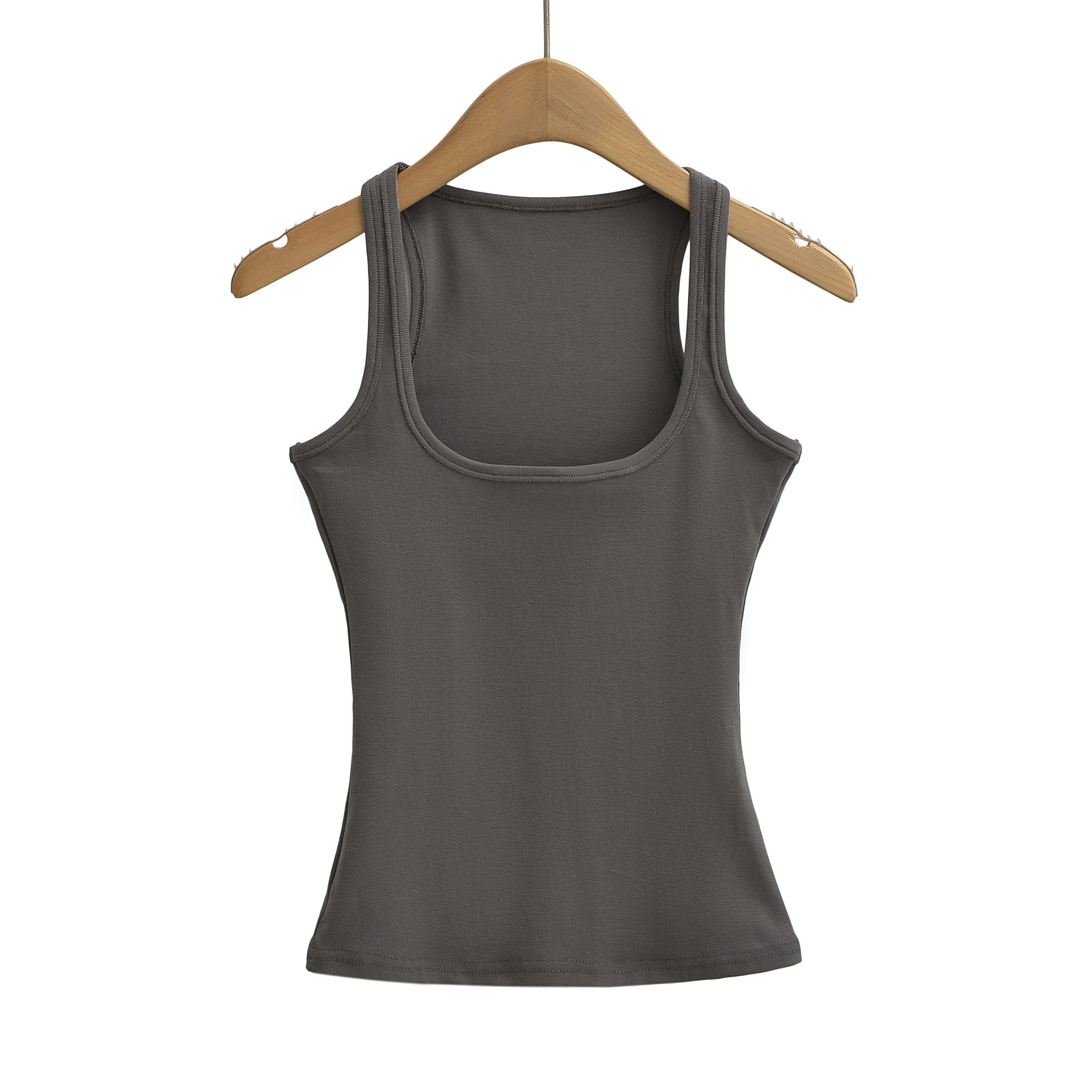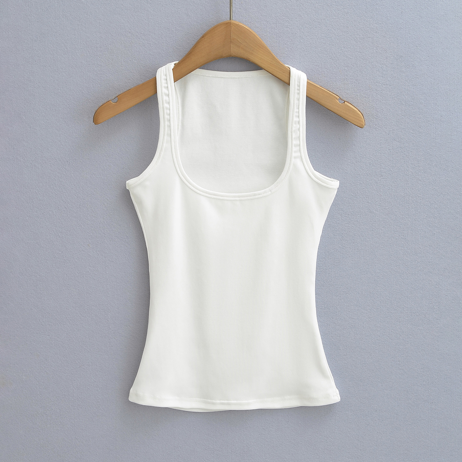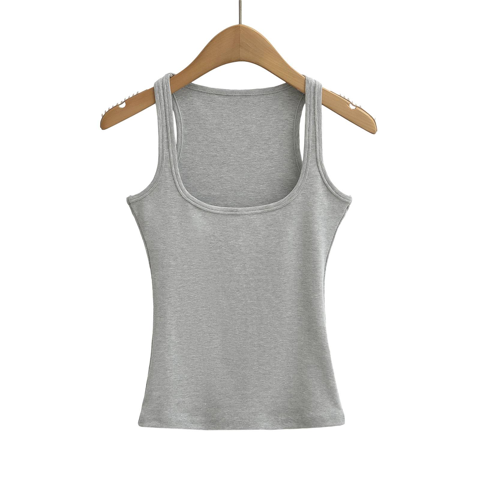7373-24 봄 새로운 미국 핫 걸 섹시 스트레치 슬림 스퀘어 칼라 오프 더 칼라 본 캐주얼 좁은 어깨 조끼스토어 가기