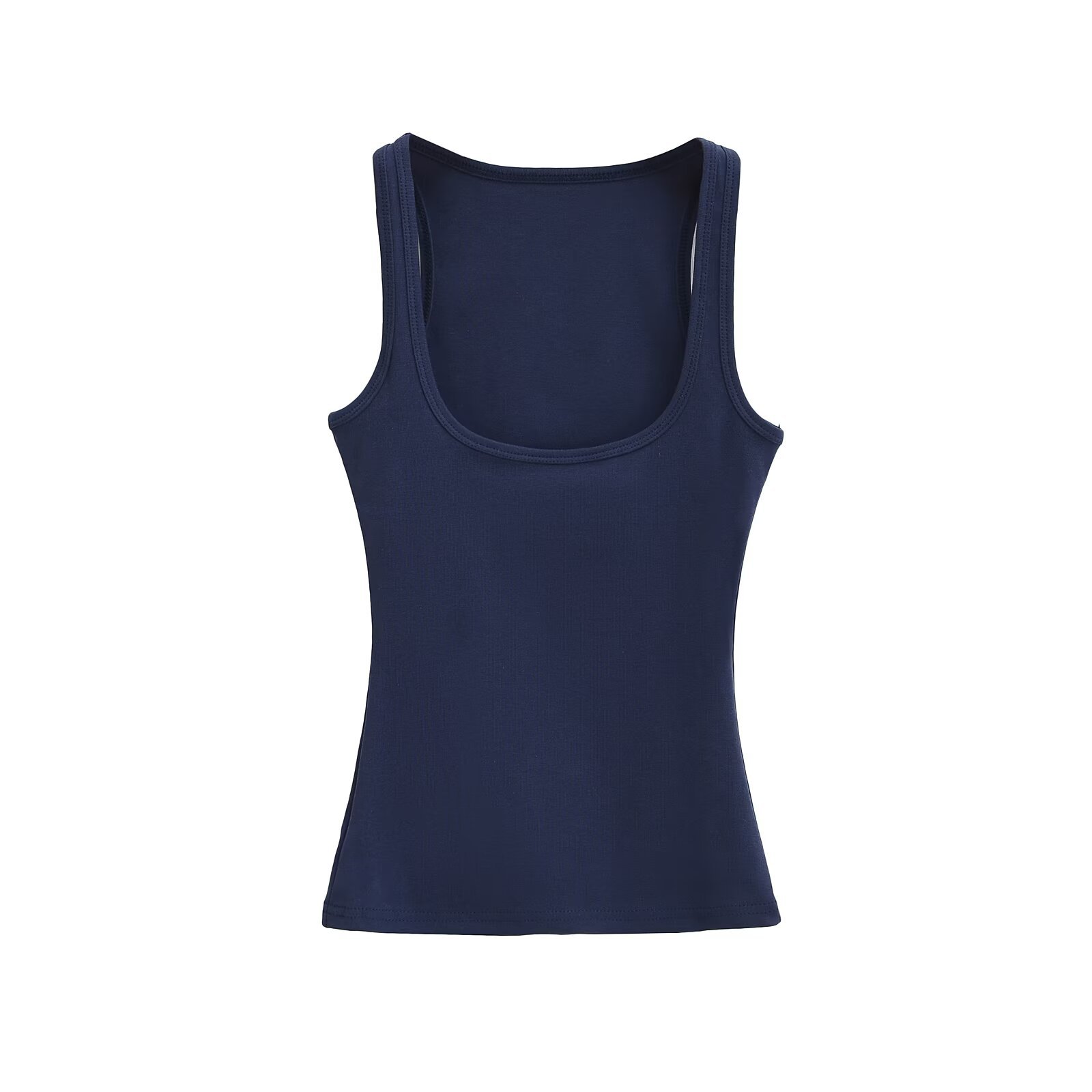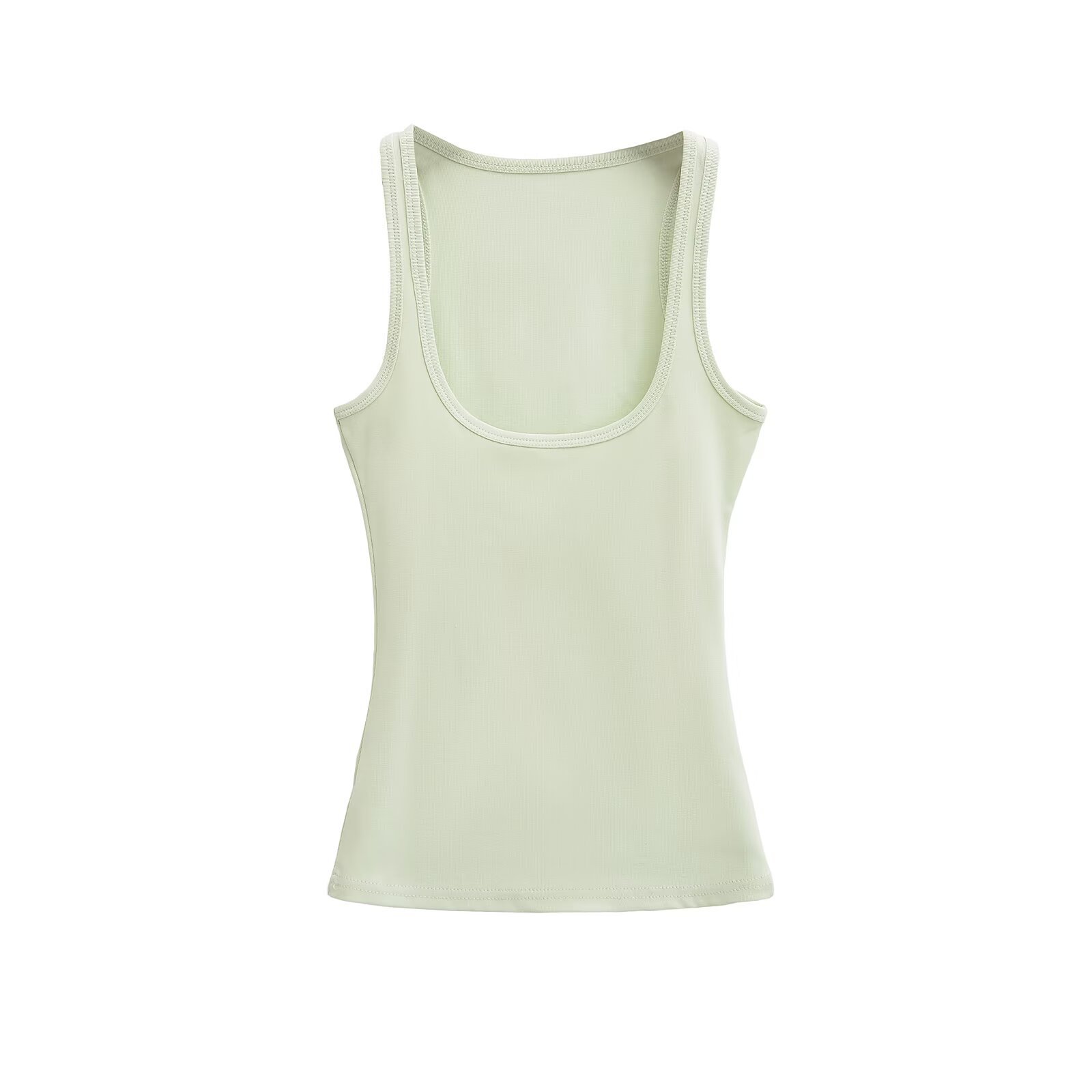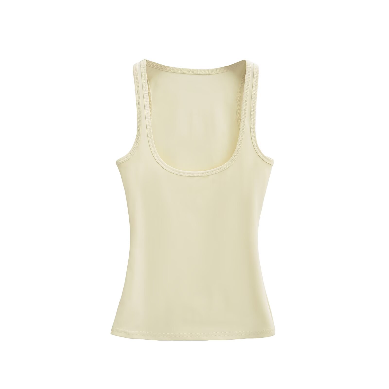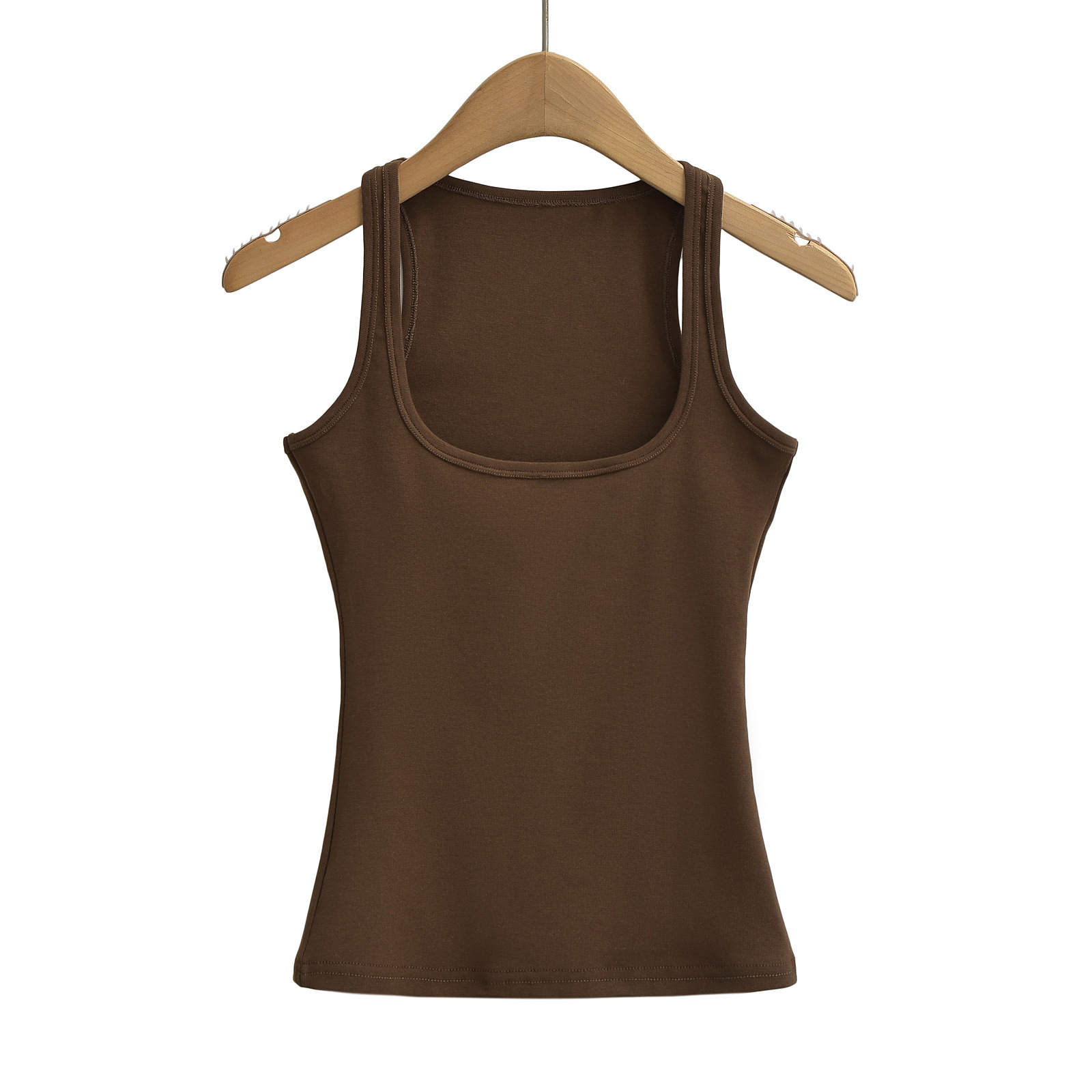 7373-24 봄 새로운 미국 핫 걸 섹시 스트레치 슬림 스퀘어 칼라 오프 더 칼라 본 캐주얼 좁은 어깨 조끼스토어 가기