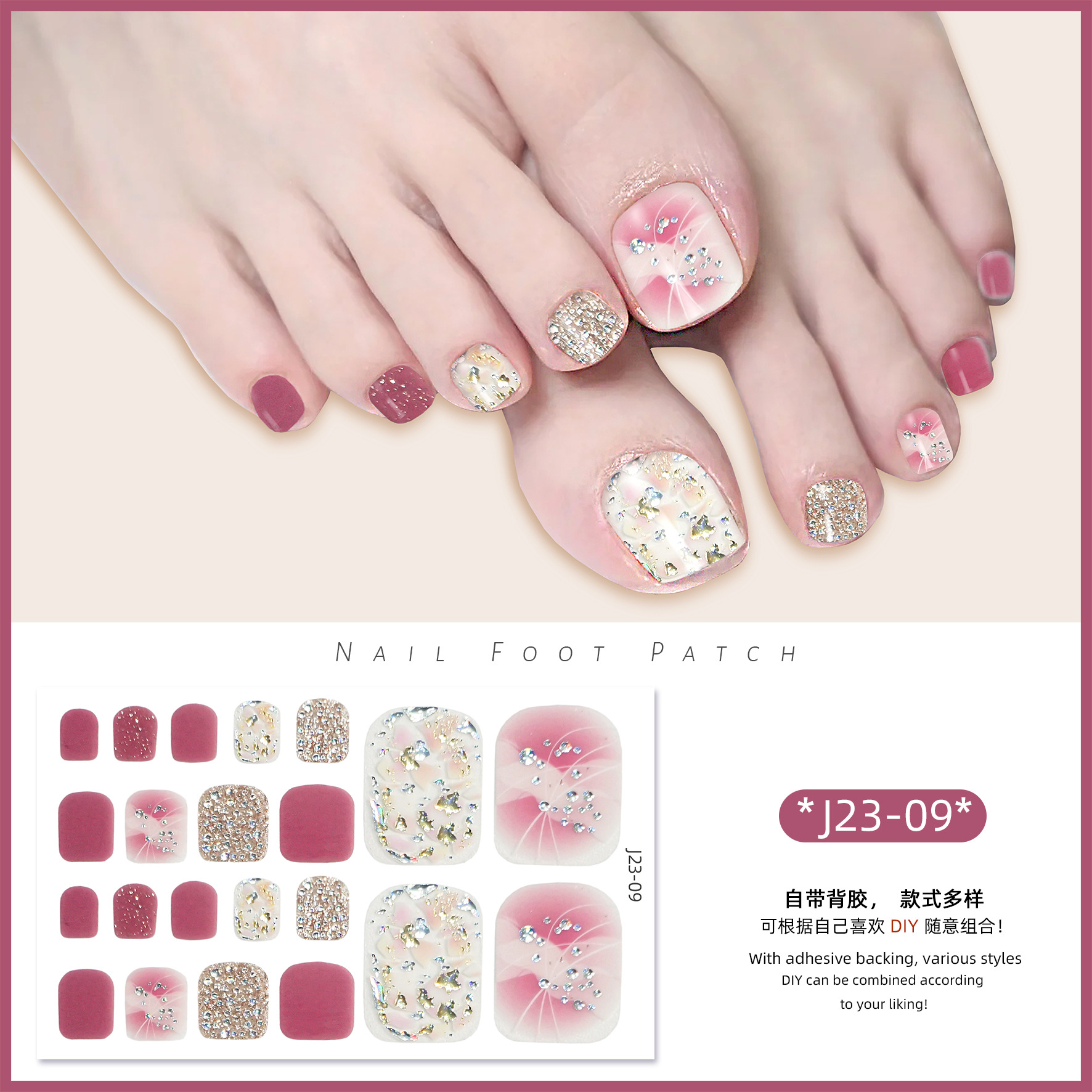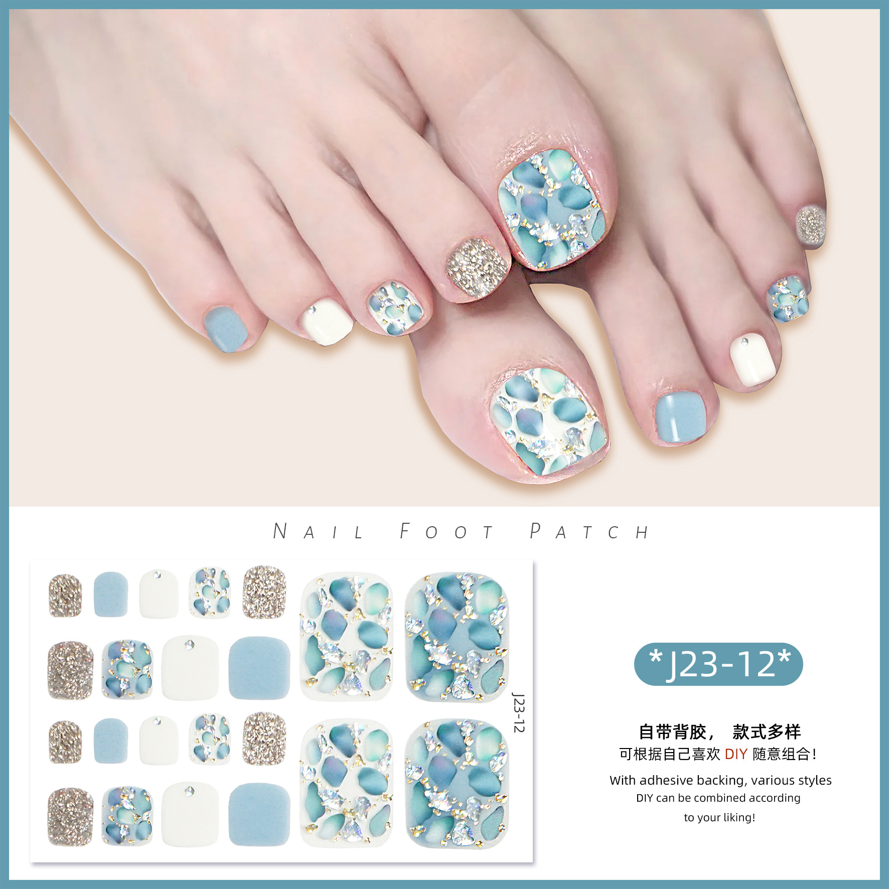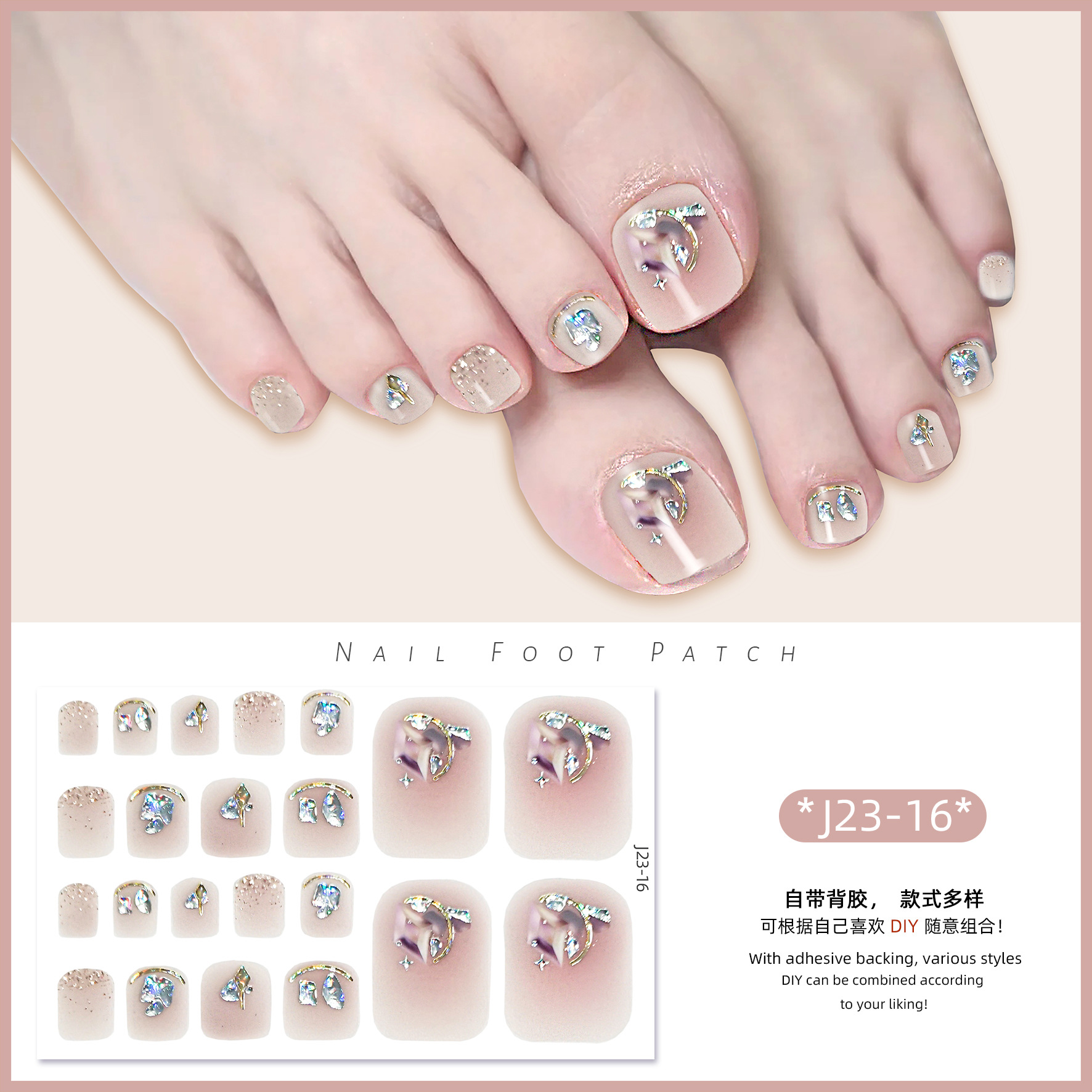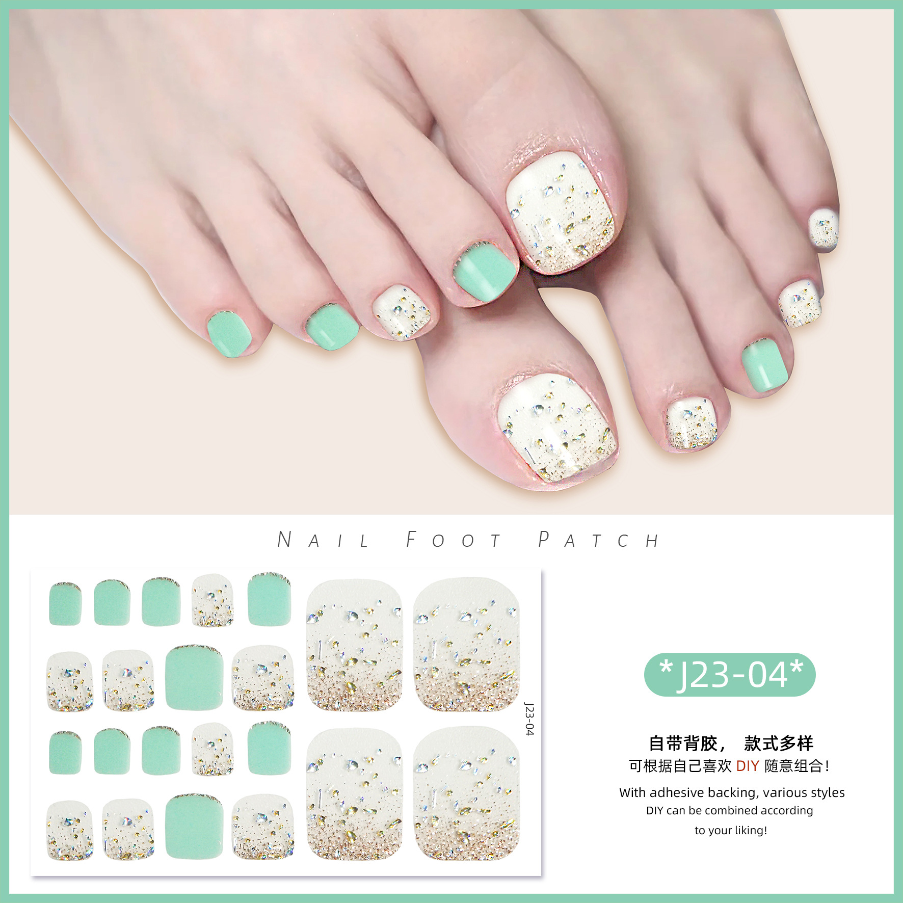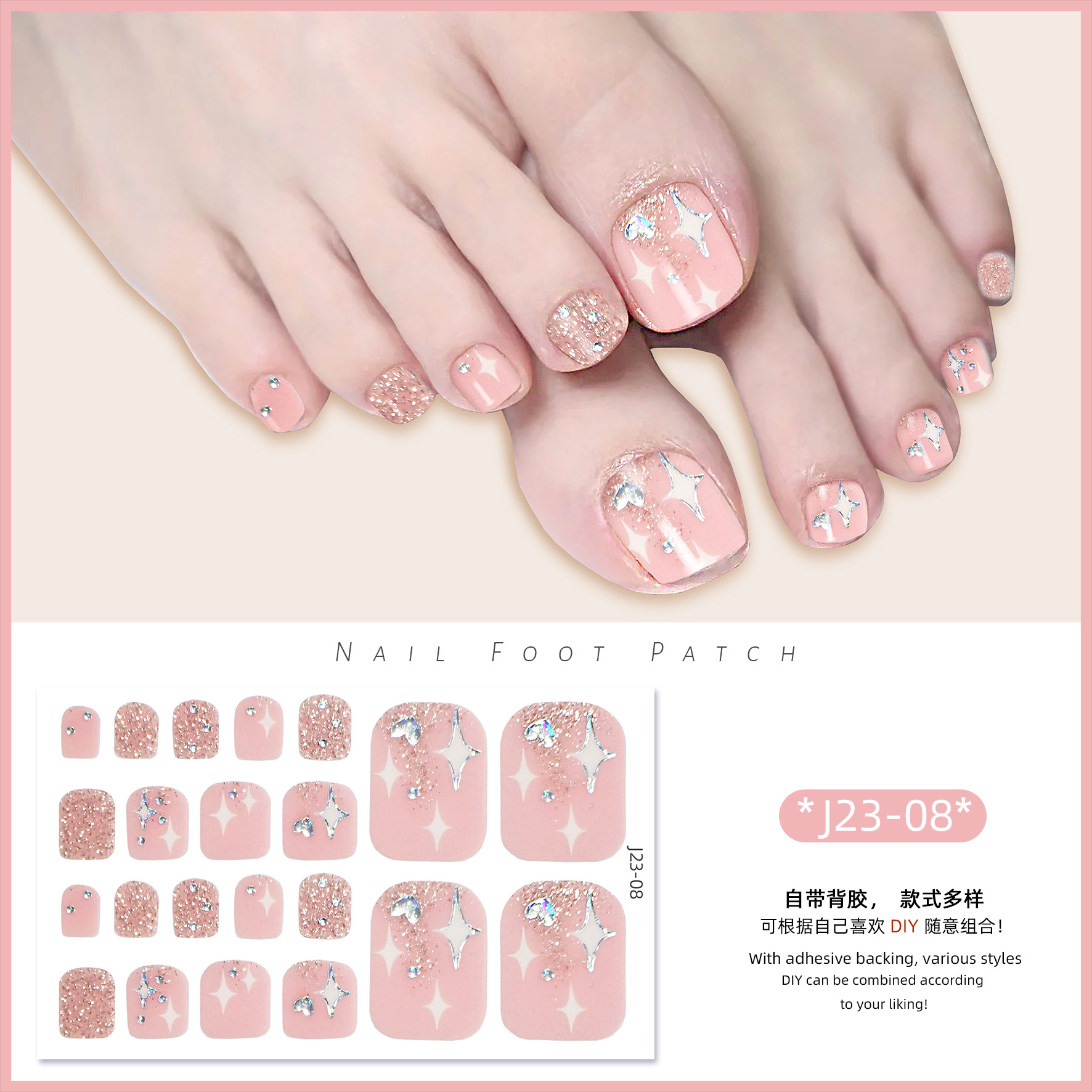 2025 신제품 인터넷 인기 발톱 네일아트 스티커 방수 INS 스타일 크리스탈 반짝이 발톱 네일아트 스티커 풀커버스토어 가기
