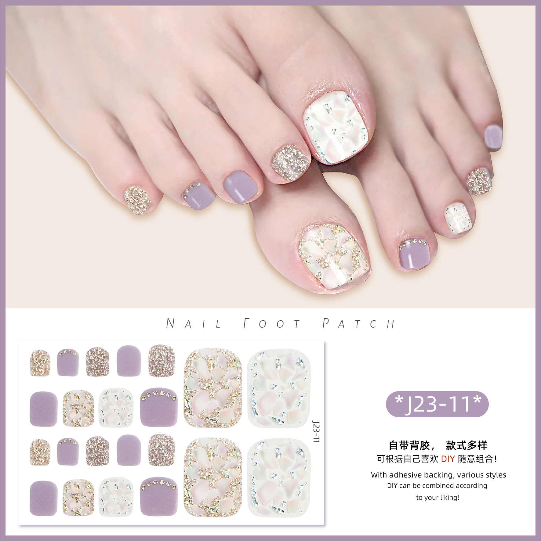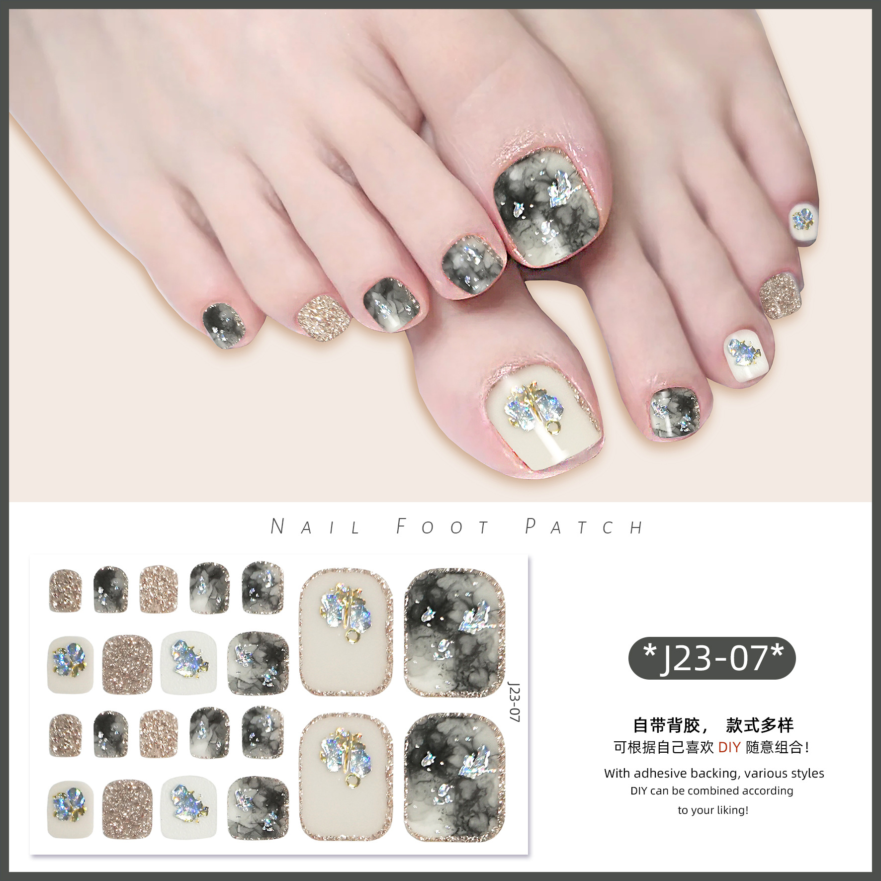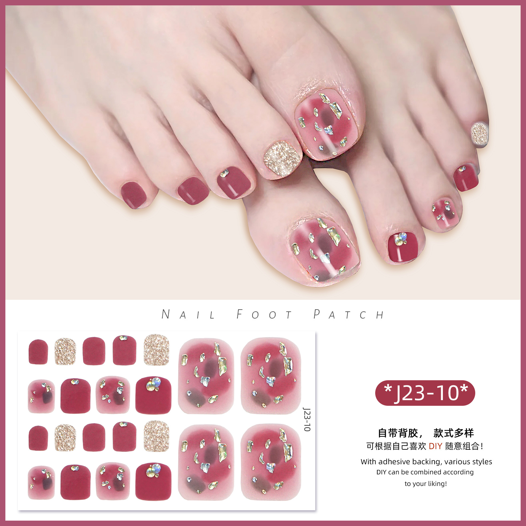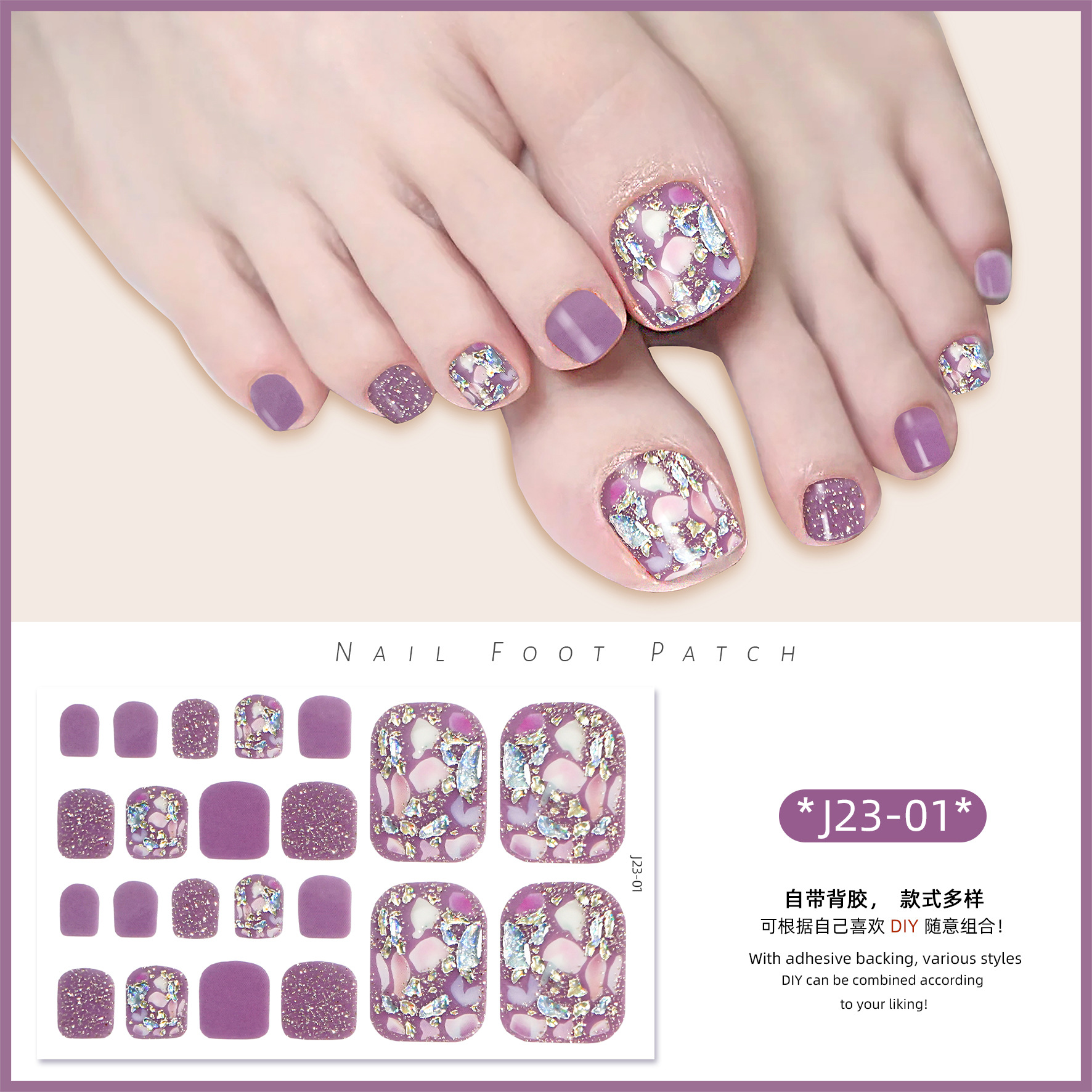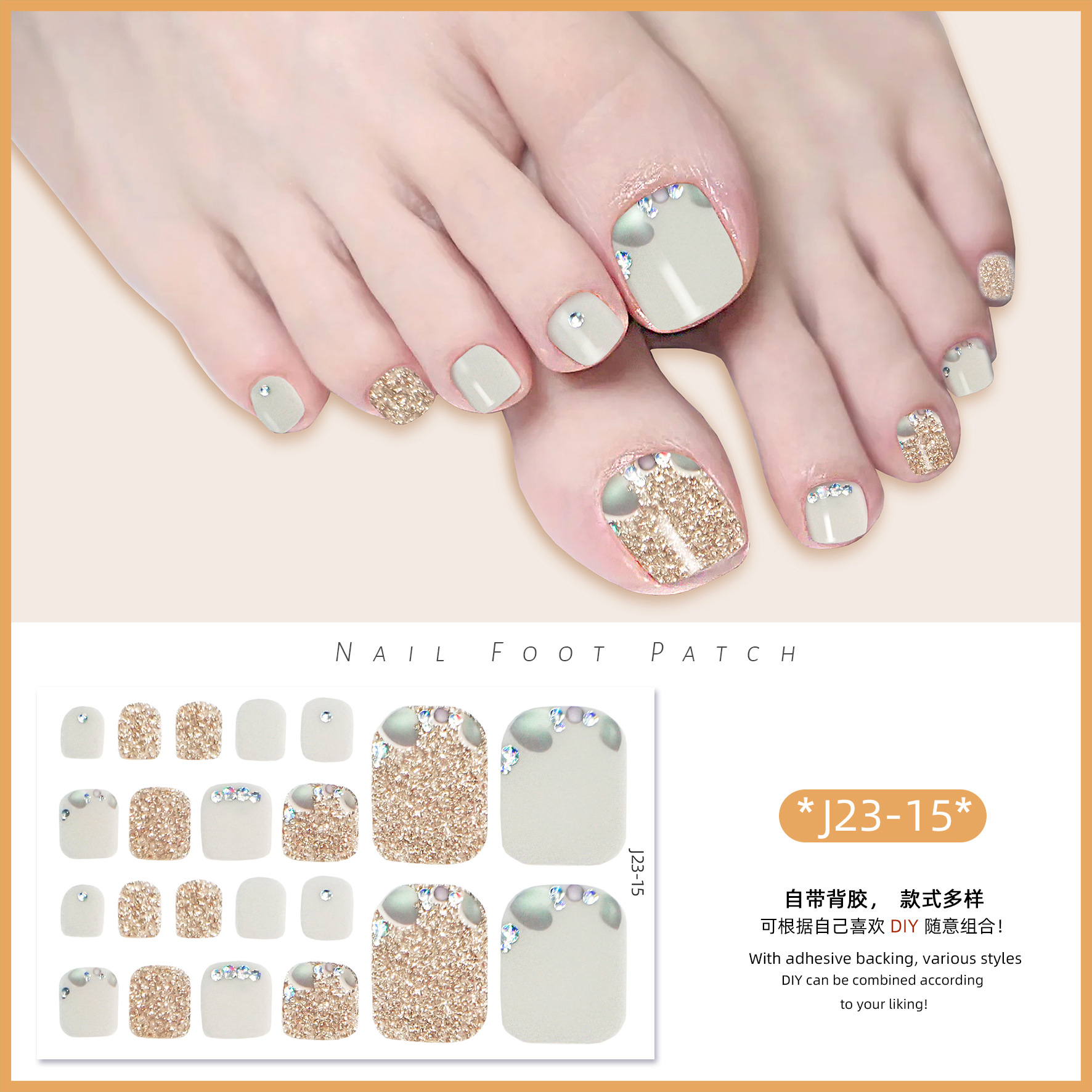 2025 신제품 인터넷 인기 발톱 네일아트 스티커 방수 INS 스타일 크리스탈 반짝이 발톱 네일아트 스티커 풀커버스토어 가기
